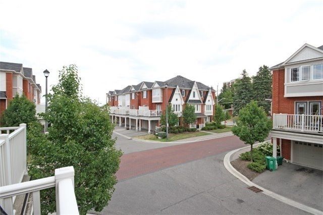 End unit - executive leisure living lifestyle mattamy built town-residence! Functional floor plan layout ideal for entertaining! Located in high desirable demand area, walk to downtown, minutes from shopping, go station, hwy's & new hospital. A gourmet open- concept eat- in kitchen featuring granite counter tops, stainless steel appliances, breakfast bar and walk- out to balcony. Large family room with corner fireplace, gleaming hardwood floors, pot lights, oak staircase, granite vanities in the bathrooms, spacious master bedroom. Extras - with a luxury 3- pc en suite bath and walk- in closet. Garage entrance to house, main floor laundry, central air and low maintenance fees! Walking distance to schools, parks, shopping and transit. Existing stainless steel appliances.