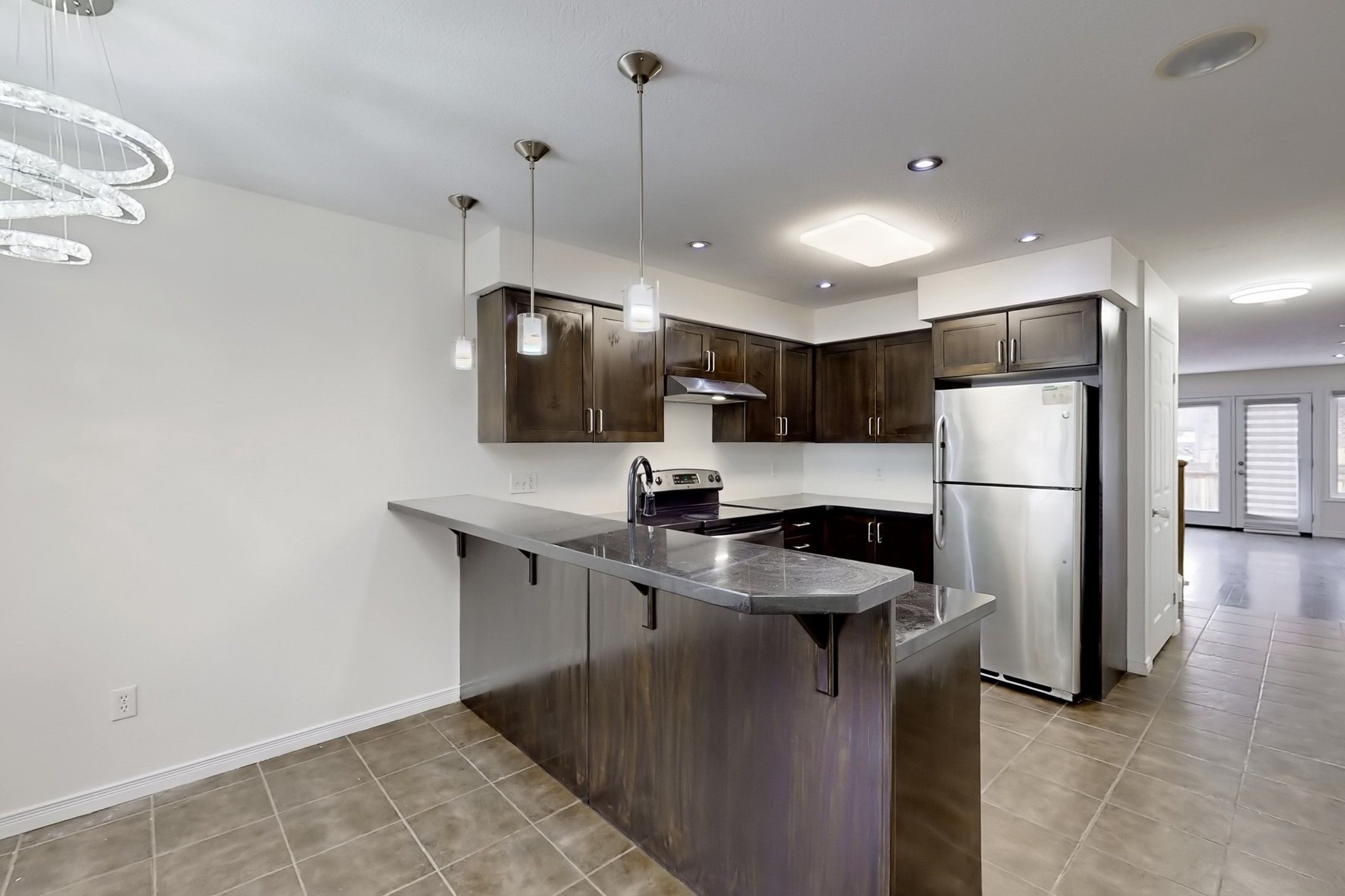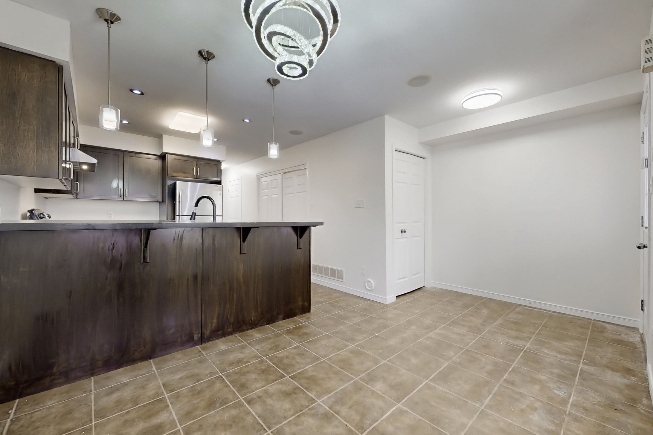 Attention first-time buyers-your path to homeownership starts here. Why rent when you can own? Welcome to this beautifully updated 3-bedroom condo townhouse that blends style, comfort, and everyday convenience. Ideally located near sunrise plaza, schools, public transit, and major highways, this move-in-ready home suits first-time buyers, growing families, and investors alike. This bright corner unit offers abundant natural light and the added bonus of a parking space right at your doorstep. Inside, you'll find ceramic and hardwood flooring throughout, upgraded lighting, and built-in surround sound that enhances the living experience. The modern kitchen is both functional and eye-catching, featuring granite countertops, a breakfast bar, and stainless steel appliances-perfect for cooking, hosting, or casual dining. The open-concept layout creates a welcoming, airy feel, while a front-load washer and dryer provide added convenience. Thoughtfully updated, this home delivers strong value with a practical layout and stylish finishes throughout. Opportunities like this in such a convenient location don't come often-book your showing today.