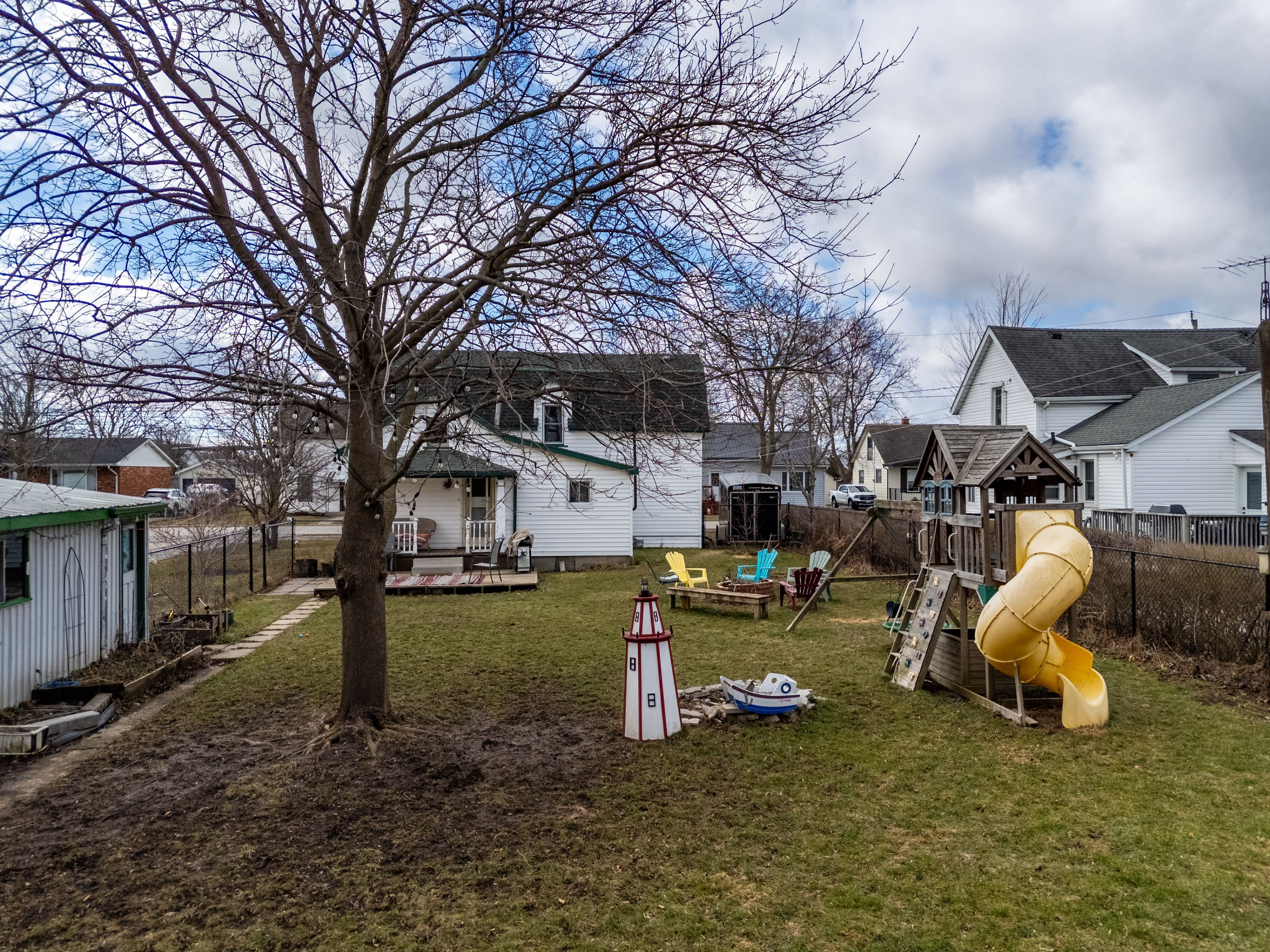 Spacious, well-maintained home situated on an extra wide 82' x 132' lot in a highly convenient location close to all amenities. The second level offers three generous bedrooms, while the main floor features a large kitchen, separate dining room, and the added convenience of main floor laundry. Enjoy the fully fenced backyard complete with incredible gardens showcasing peach and pear trees, plus blueberry and blackberry bushes -perfect for outdoor enthusiasts and gardeners alike. A double detached garage with hydro and an additional storage loft provides excellent workspace/storage options, and there's ample parking for multiple vehicles. A wonderful property offering space, functionality, and exceptional outdoor living in one desirable package.