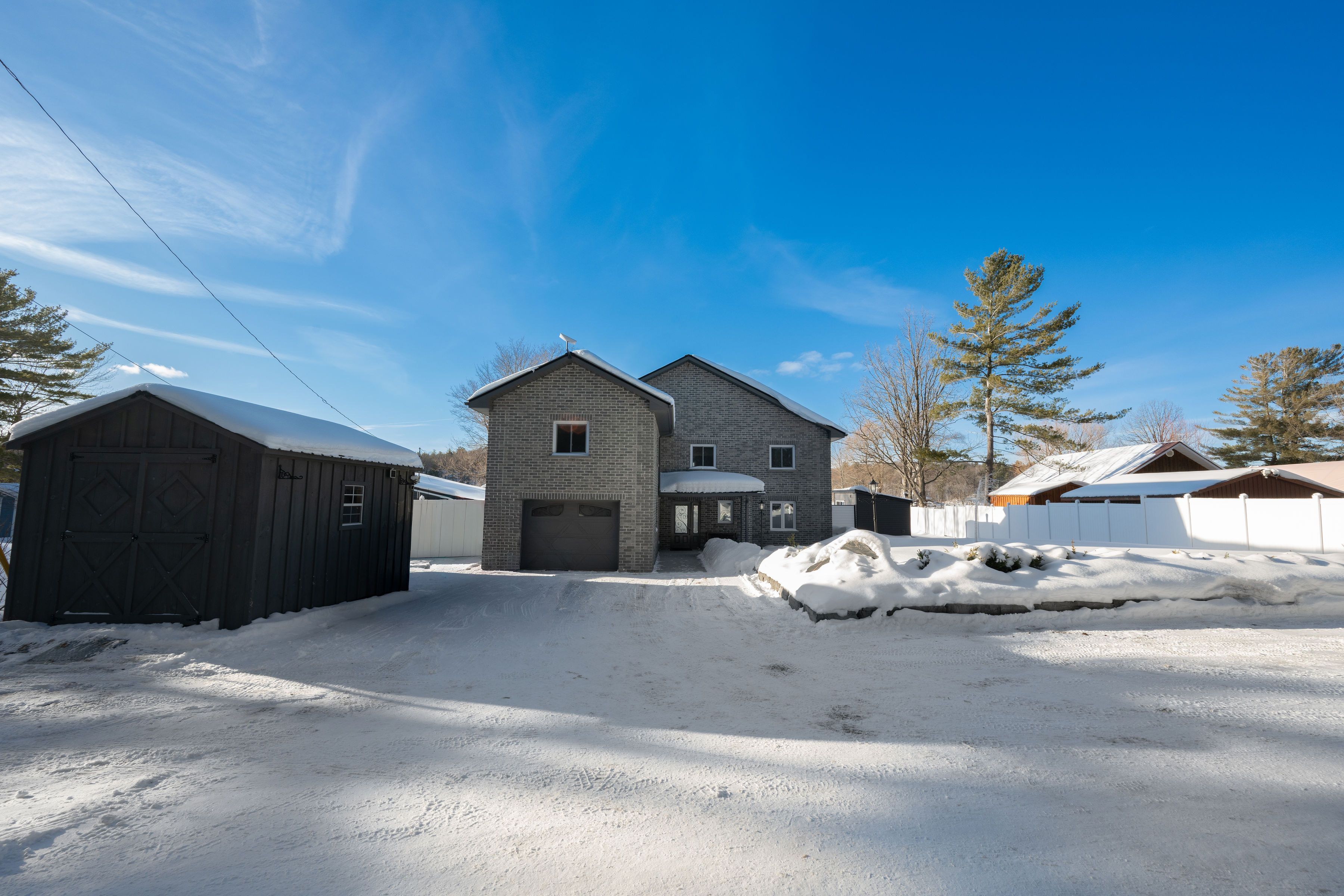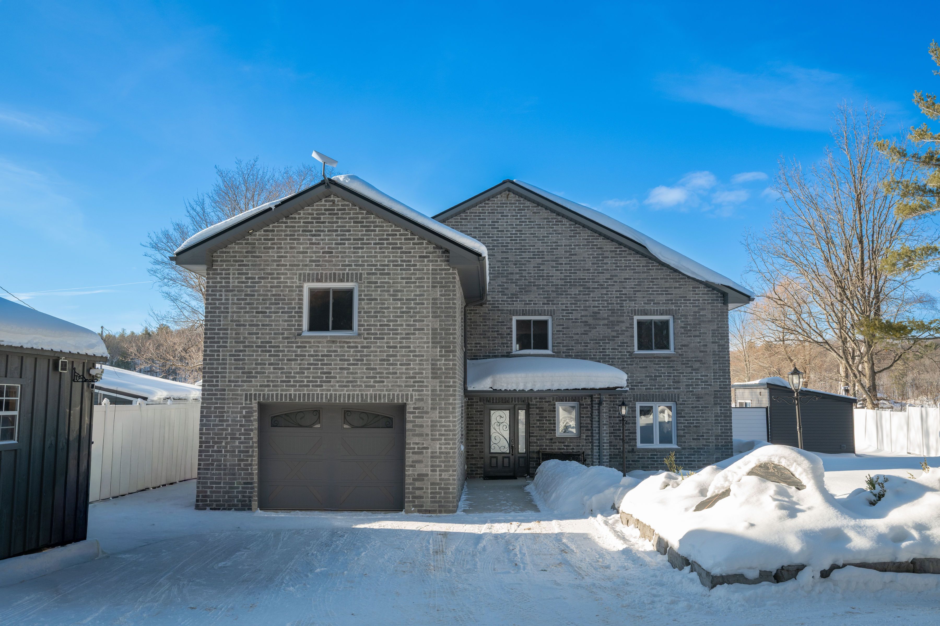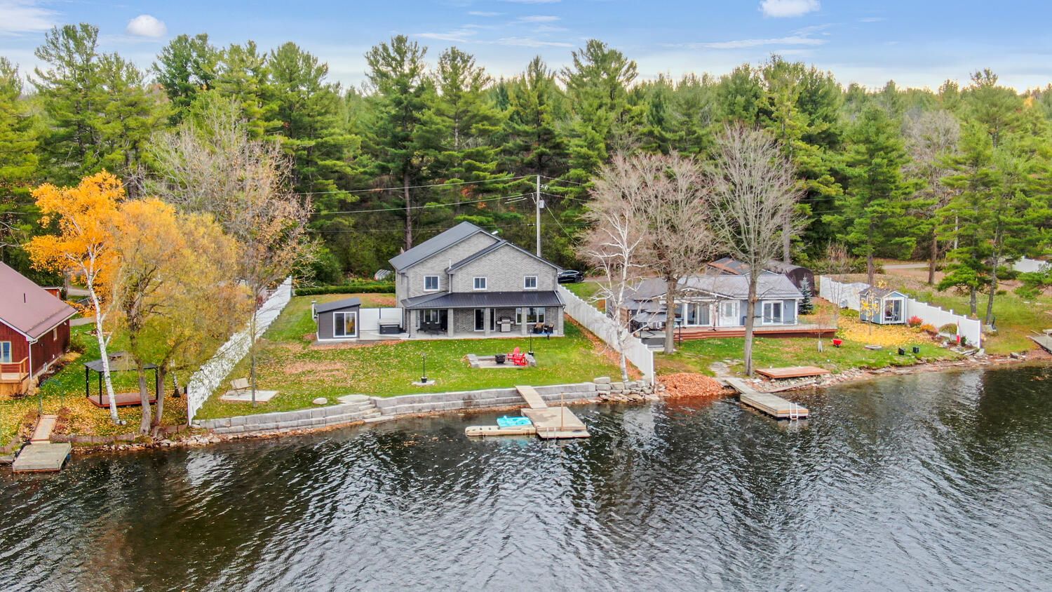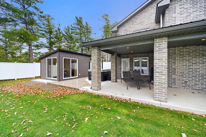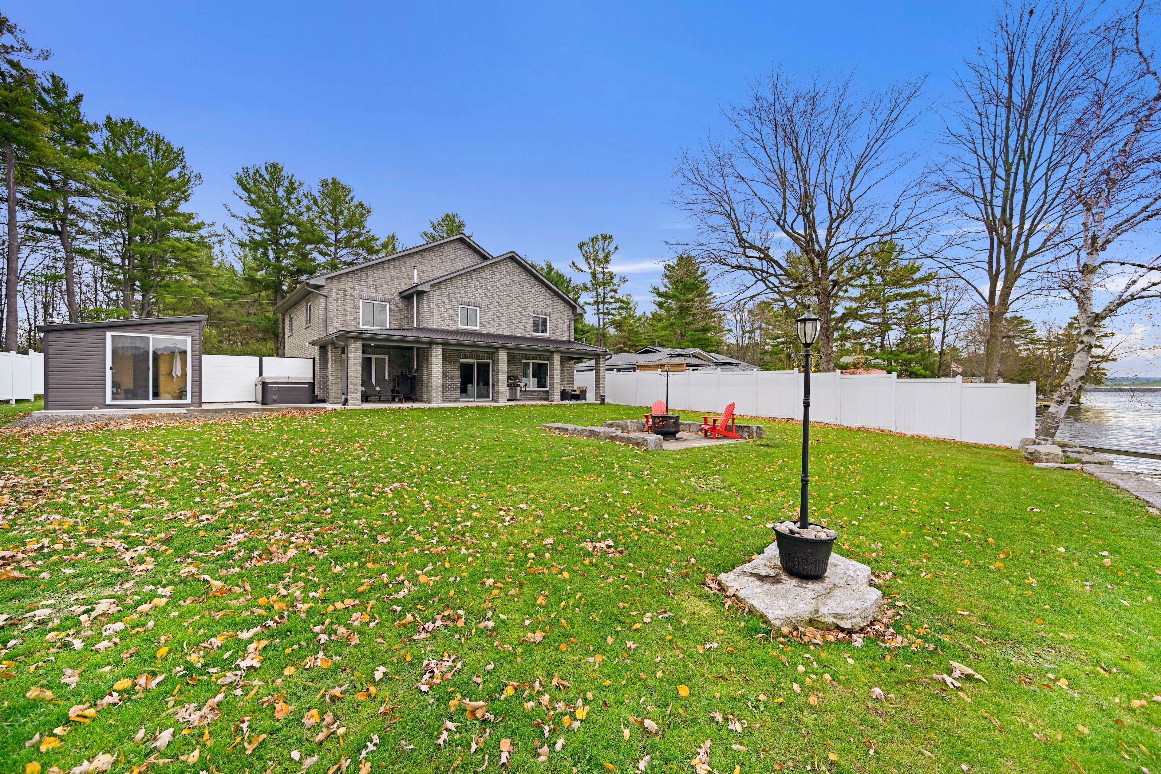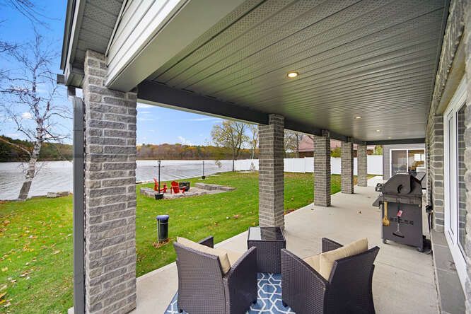 Welcome to this waterfront retreat on sought-after graham lake, where custom craftsmanship and luxury come together in perfect harmony. Built in 2018, this stunning full-brick residence with a steel roof has every detail carefully considered, with every finish selected for quality, comfort, and longevity. Step inside to an open-concept main floor highlighted by soaring two-story ceilings, engineered glass railings, and statement lighting that immediately sets the tone. The custom hunt's kitchen is a showpiece, featuring hickory cabinetry, live-edge granite countertops with a life-proof seal, and premium finishes. The main-floor primary suite is a true sanctuary, offering a spa-inspired ensuite with a custom glass shower and soaker tub. Step directly outside to your hot tub, seamlessly connecting the indoors to your private outdoor area complete with your own personal sauna and relaxation room overlooking the lake, creating the ultimate space to unwind, recharge, and enjoy year-round wellness at home. Upstairs, you'll find three generous bedrooms, a three-piece bath, a bright den overlooking the main living space, and a versatile bonus room ideal for a home theatre, gym, or additional lounge. The home features radiant in-floor heating with individual room controls, an icf foundation, premium insulation, on-demand hot water/boiler, a high-end water treatment system, and a fully automatic generac generator. The heated garage offers hot & cold water, floor drains, and an automatic opener. Outdoors, enjoy pristine shoreline, a 24x10ft dock w/ swim platform & additional seadoo dock. Thoughtfully designed exterior features include armor stone retaining wall and landscaping, a fire-pit area, power outlets for seasonal lighting, and expansive grounds perfect for entertaining or peaceful evenings by the water. This is more than a home-it's a lifestyle. A rare opportunity to own a waterfront property built to last, offering comfort, privacy, and unforgettable lakefront living.