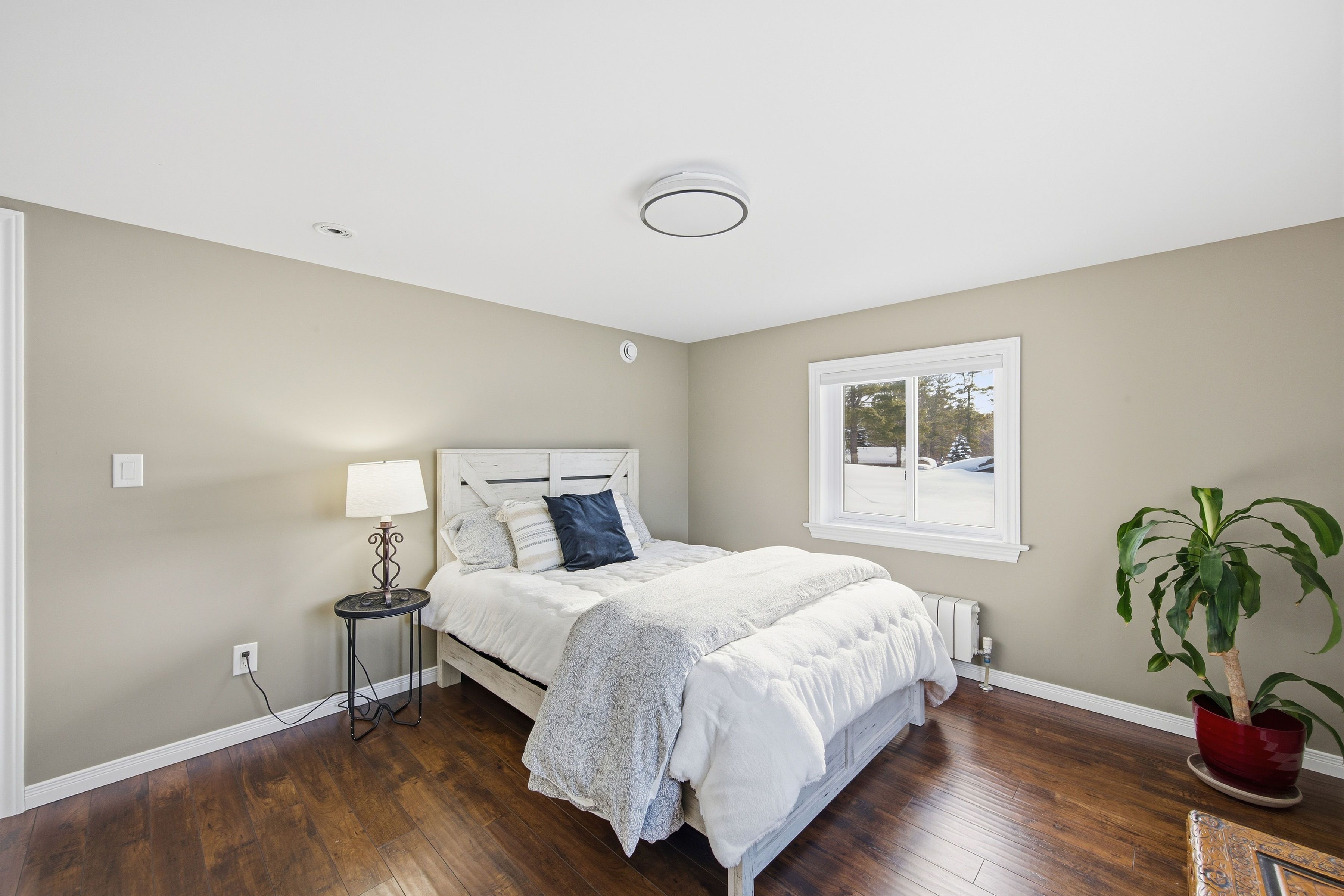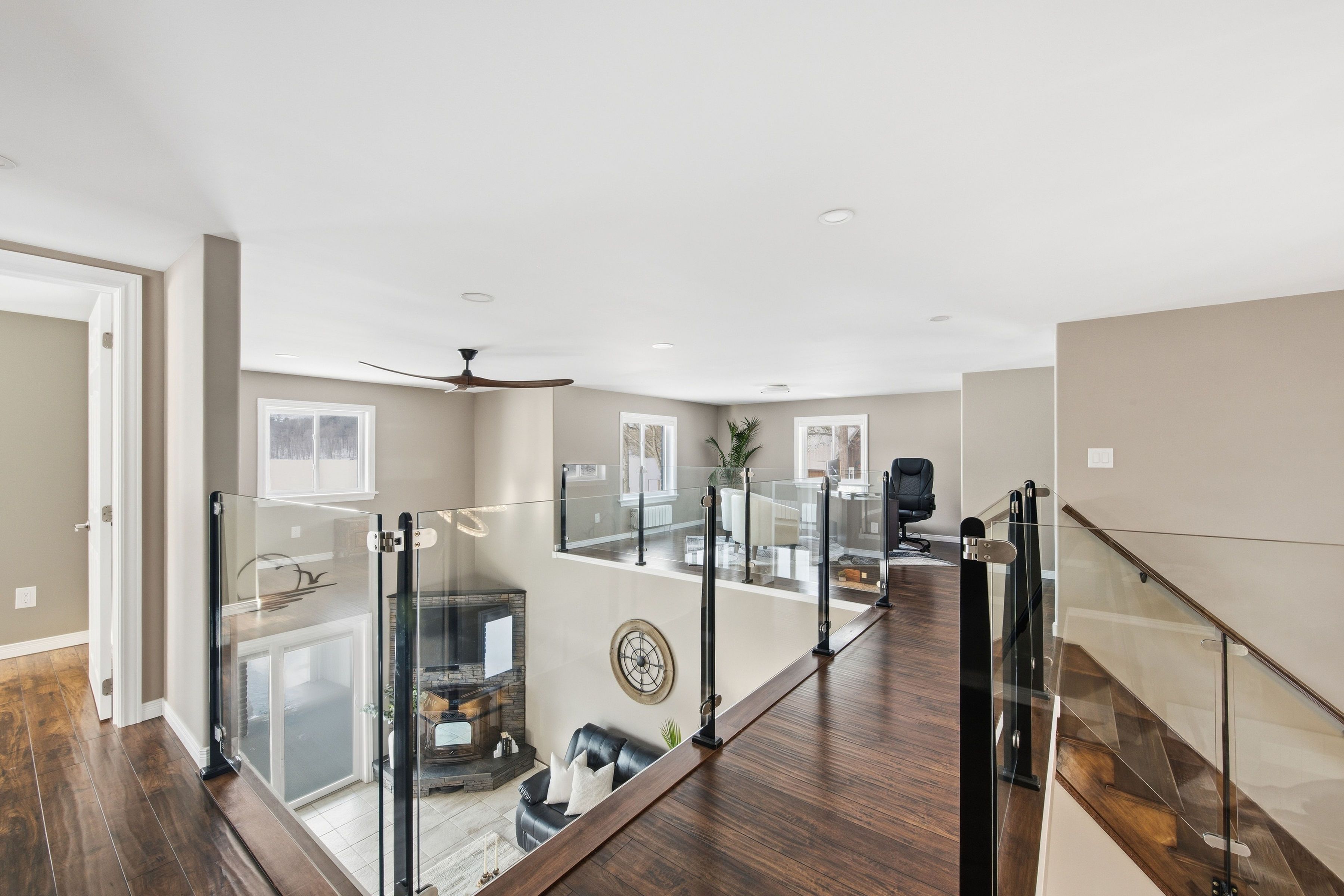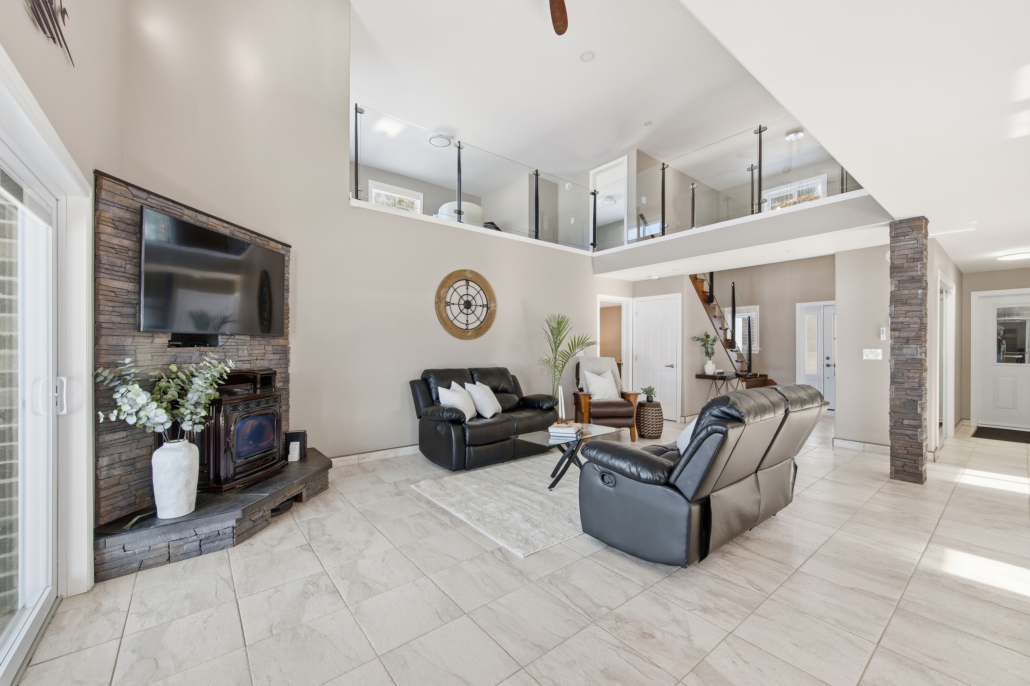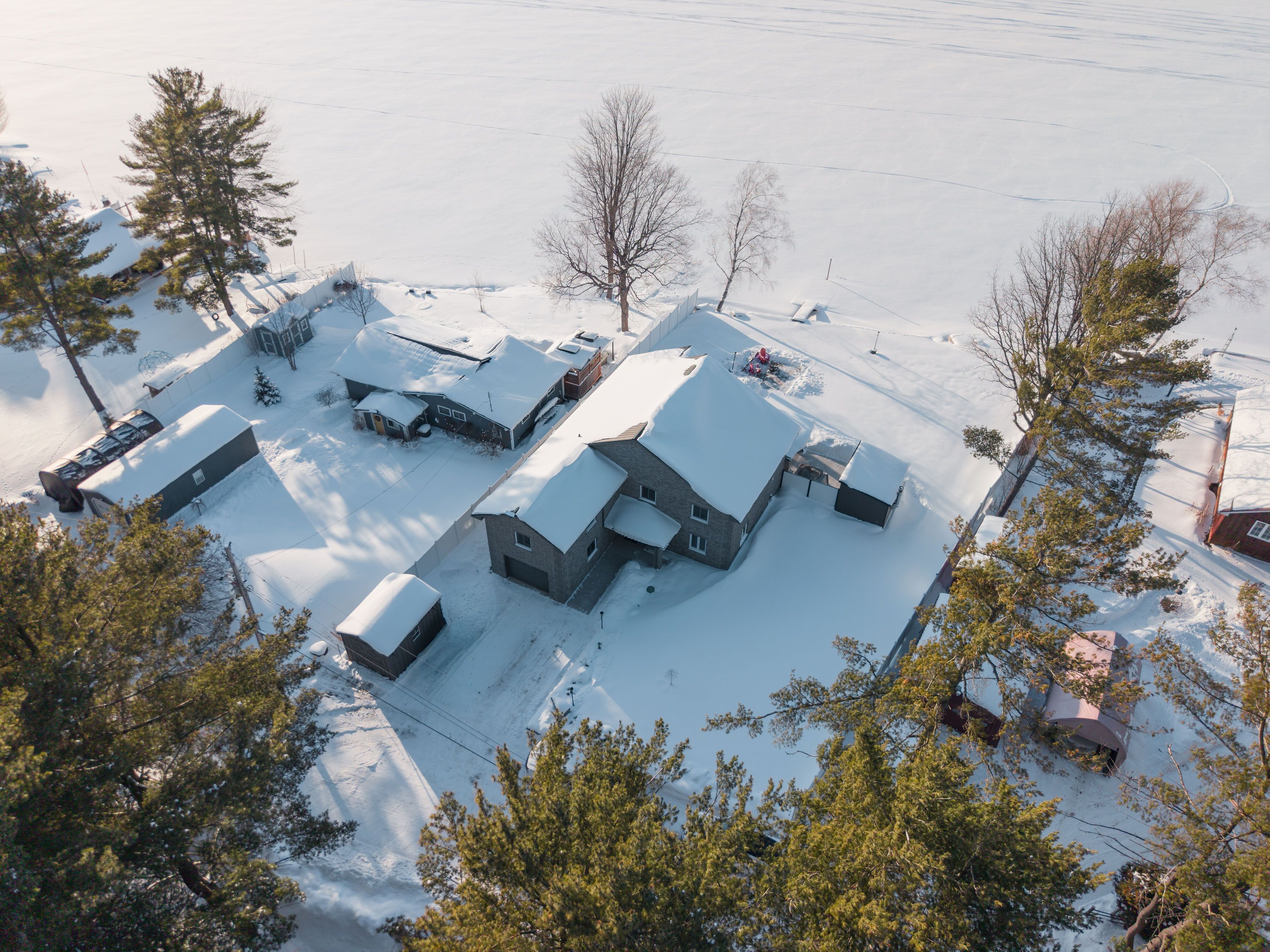 Welcome to this waterfront retreat on sought-after graham lake, where custom craftsmanship and luxury come together in perfect harmony. Built in 2018, this stunning full-brick residence with a steel roof has every detail carefully considered, with every finish selected for quality, comfort, and longevity. Step inside to an open-concept main floor highlighted by soaring two-story ceilings, engineered glass railings, and statement lighting that immediately sets the tone. The custom hunt's kitchen is a showpiece, featuring hickory cabinetry, live-edge granite countertops with a life-proof seal, and premium finishes. The main-floor primary suite is a true sanctuary, offering a spa-inspired ensuite with a custom glass shower and soaker tub. Step directly outside to your hot tub, seamlessly connecting the indoors to your private outdoor area complete with your own personal sauna and relaxation room overlooking the lake, creating the ultimate space to unwind, recharge, and enjoy year-round wellness at home. Upstairs, you'll find three generous bedrooms, a three-piece bath, a bright den overlooking the main living space, and a versatile bonus room ideal for a home theatre, gym, or additional lounge. The home features radiant in-floor heating with individual room controls, an icf foundation, premium insulation, on-demand hot water/boiler, a high-end water treatment system, and a fully automatic generac generator. The heated garage offers hot & cold water, floor drains, and an automatic opener. Outdoors, enjoy pristine shoreline, a 24x10ft dock w/ swim platform & additional seadoo dock. Thoughtfully designed exterior features include armor stone retaining wall and landscaping, a fire-pit area, power outlets for seasonal lighting, and expansive grounds perfect for entertaining or peaceful evenings by the water. This is more than a home-it's a lifestyle. A rare opportunity to own a waterfront property built to last, offering comfort, privacy, and unforgettable lakefront living.