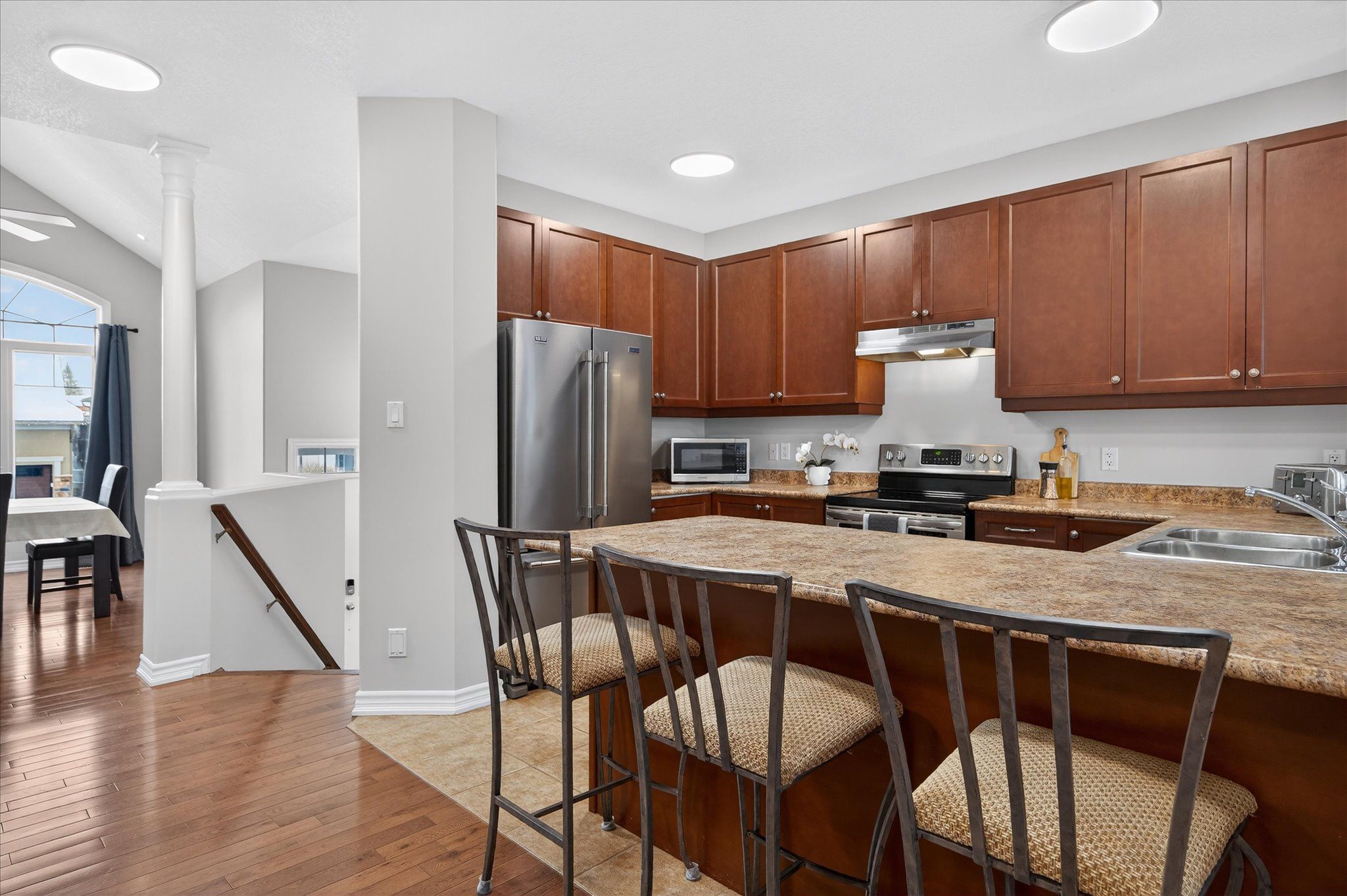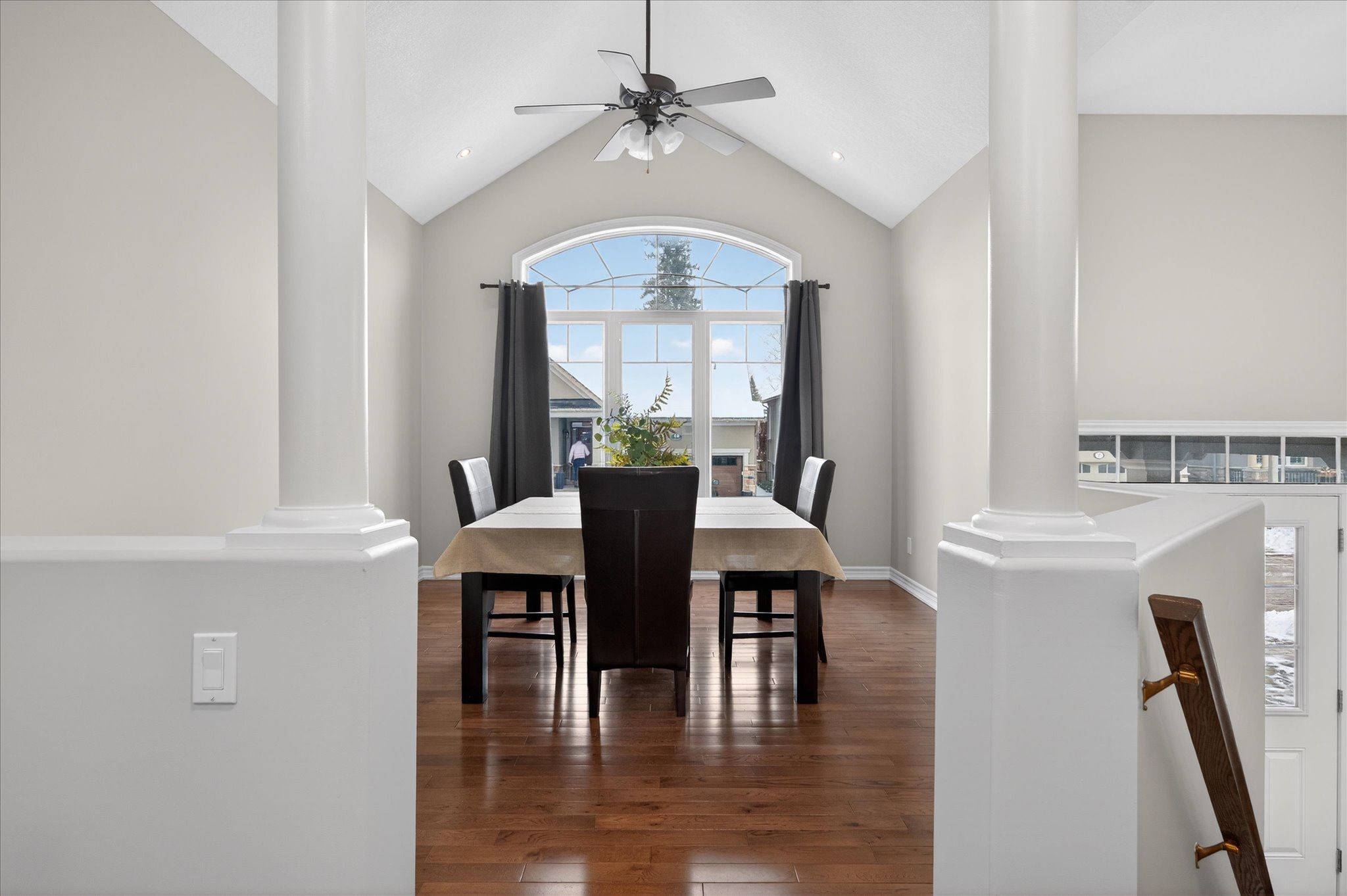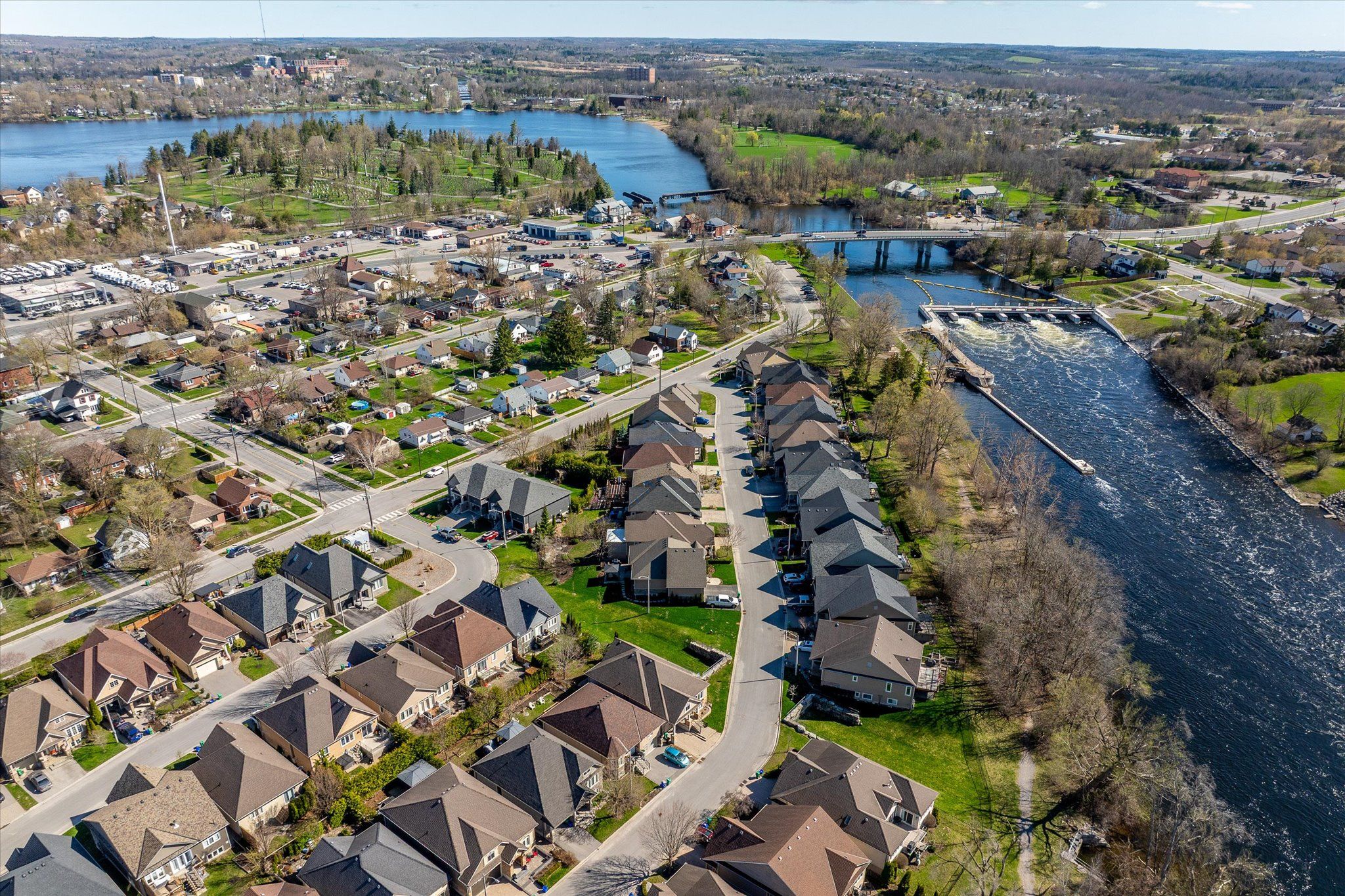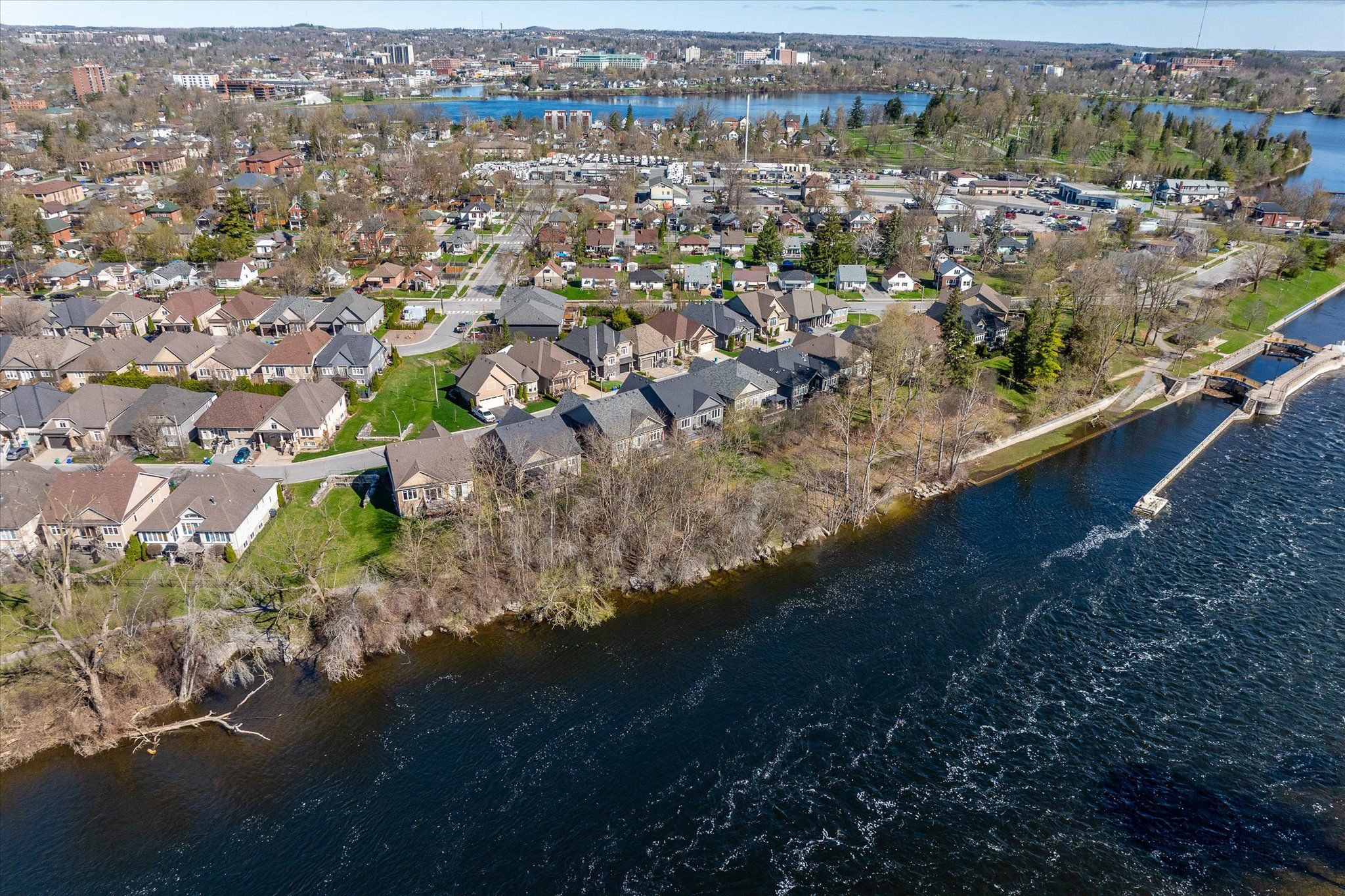 Welcome to this distinctive home in a desirable riverside setting, perfect for comfortable living and entertaining. This open-concept residence is thoughtfully designed for everyday enjoyment. The main floor features a bright, well-appointed kitchen, a dining area highlighted by a vaulted ceiling, and a spacious living room centered around a cozy gas fireplace. A convenient powder room is also on this level. The main-floor primary suite offers a private retreat with dual closets and a relaxing 4-piece ensuite, complete with a soaker tub. The fully finished lower level expands your living space with high ceilings, three additional spacious bedrooms, a full bathroom, and a dedicated storage room. Perfectly situated in a quiet riverside community near the otonabee river, this location is a nature lover's dream. Step outside to access scenic walking trails and green space, or simply cross the walkway to enjoy the sounds of the river, all from your doorstep. Experience the magic of lock 19 every spring, where thousands of walleye converge - a remarkable natural spectacle right outside. This wonderful setting is just minutes from local amenities and essential commuter routes. The garage is equipped with a car lift and is available separately. Freshly painted and turnkey home. Pre-inspected for your convenience. Don't miss your chance to make this gem your own!