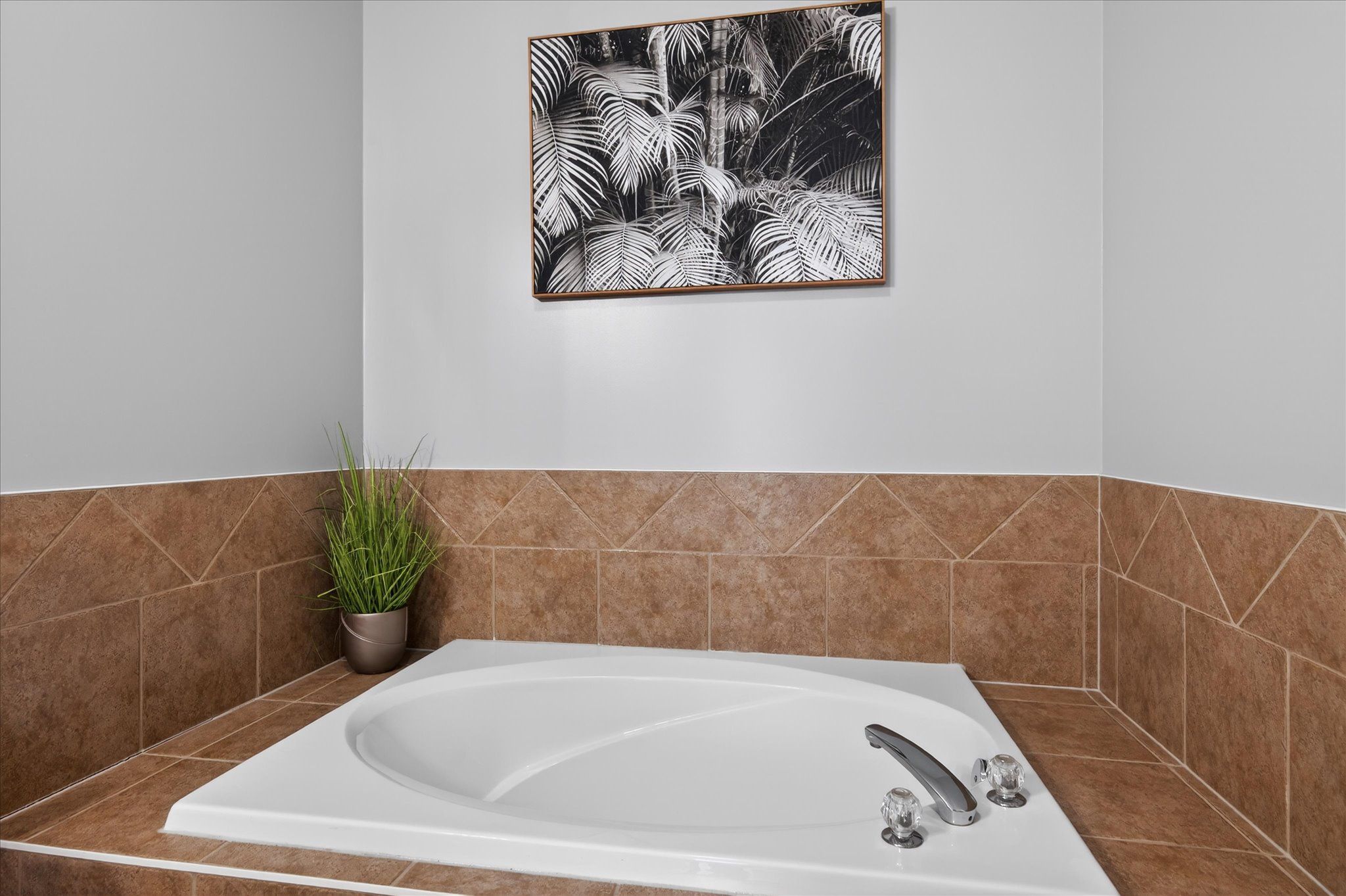 • Main-floor primary suite offers dual closets and relaxing ensuite with soaker tub.
