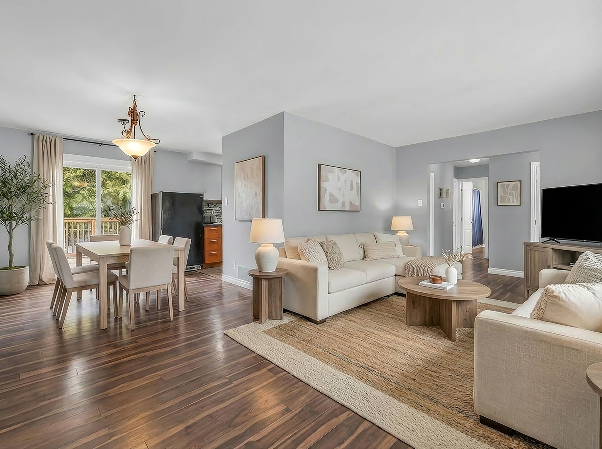 • Bright and inviting carpet-free layout with an updated oversized kitchen.