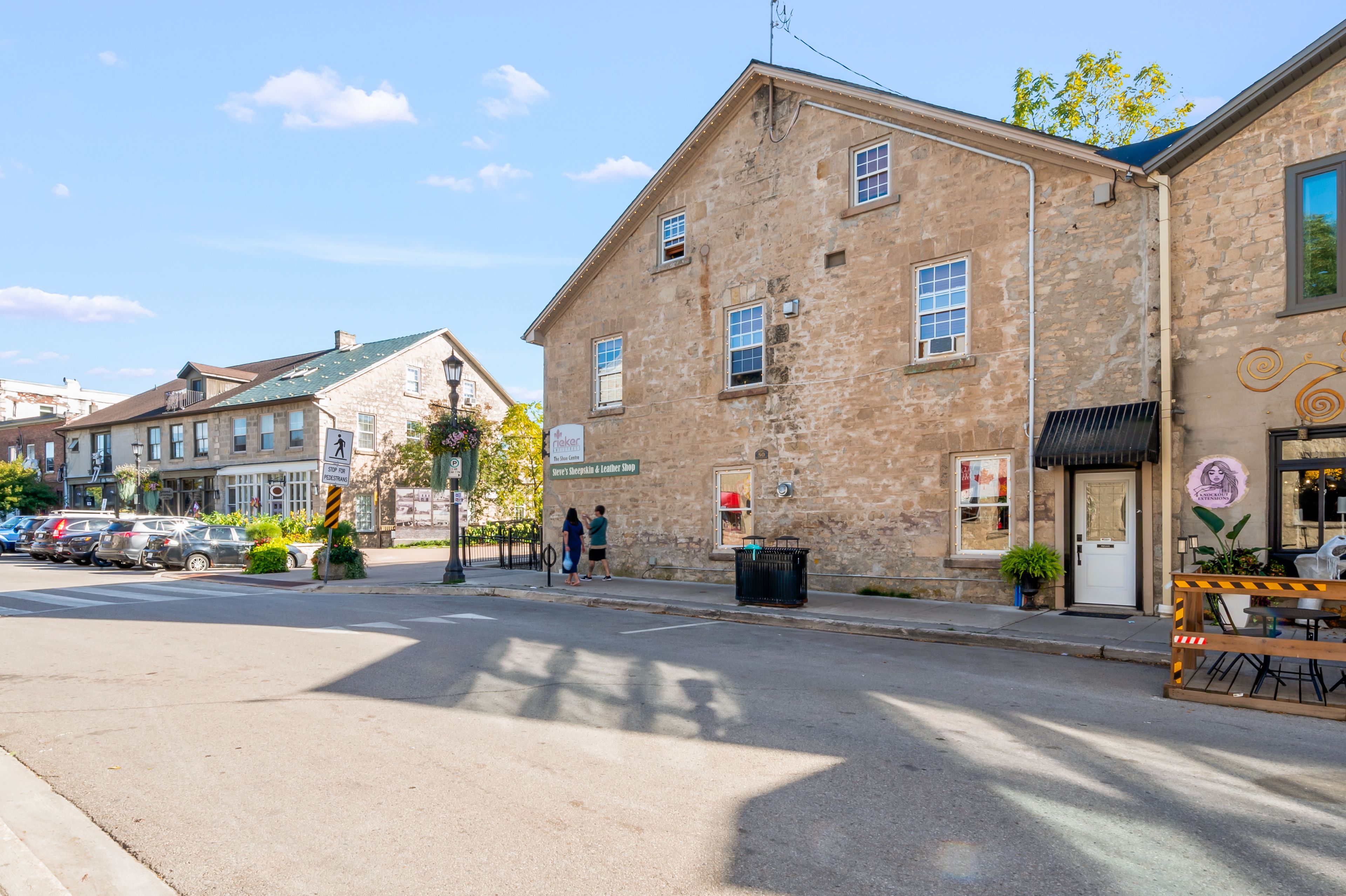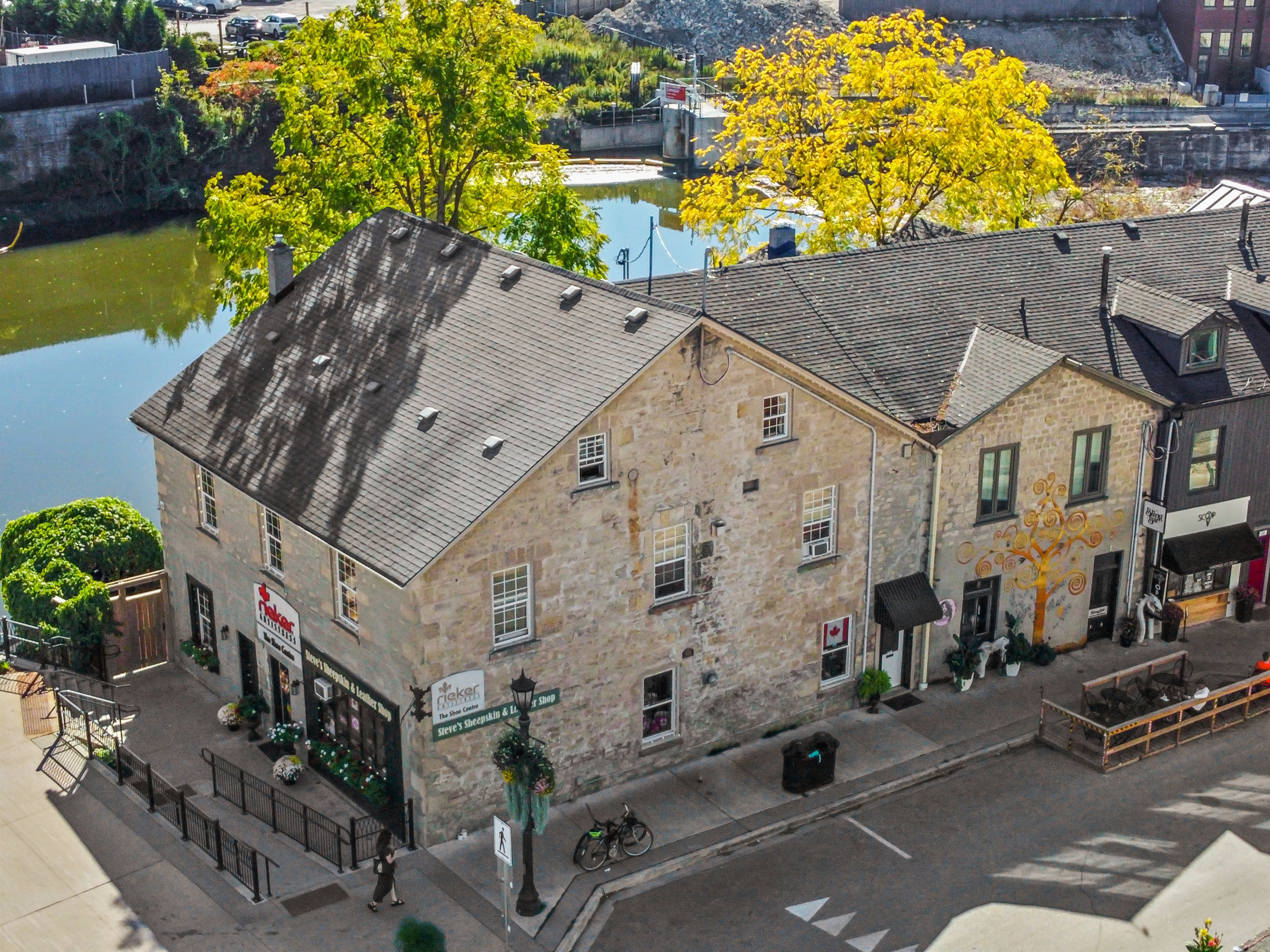 In the heart of historic elora, where cobblestone charm meets the gentle flow of the grand river, stands a property that captures the very essence of this beloved village. Surrounded by artisan shops, cafés, and galleries, this stunning building is more than a place of business; it is a cornerstone of opportunity in one of ontario's most picturesque and thriving communities. Set along the river's edge, the rear of the property opens to a raised deck and stone patio offering an extraordinary vantage point. Here, the sound of rushing water and views of the grand create a setting that draws people in and keeps them lingering, an atmosphere ideal for a destination business or a peaceful retreat for those who call it home. The main level features a beautifully maintained commercial unit perfectly suited for a boutique, gallery, or café. With high visibility and steady foot traffic, it offers the ideal stage for an entrepreneur or investor looking to establish a lasting presence in downtown elora. Above, two separately metered two-bedroom apartments provide additional versatility and income potential. These bright, inviting spaces are rich with character and offer views that celebrate the river and the surrounding heritage architecture. Owning a property that combines commercial and residential spaces opens a world of possibility. Operate your own business below while living steps away, or lease both levels for a steady multi-stream income. The configuration offers flexibility to evolve with your goals today, tomorrow, and years into the future. Few properties balance such beauty, functionality, and potential. With its riverfront setting, historic character, and prime location within elora's lively core, this is an opportunity to invest in a building that embodies the soul of the village itself - creative, enduring, and full of promise.