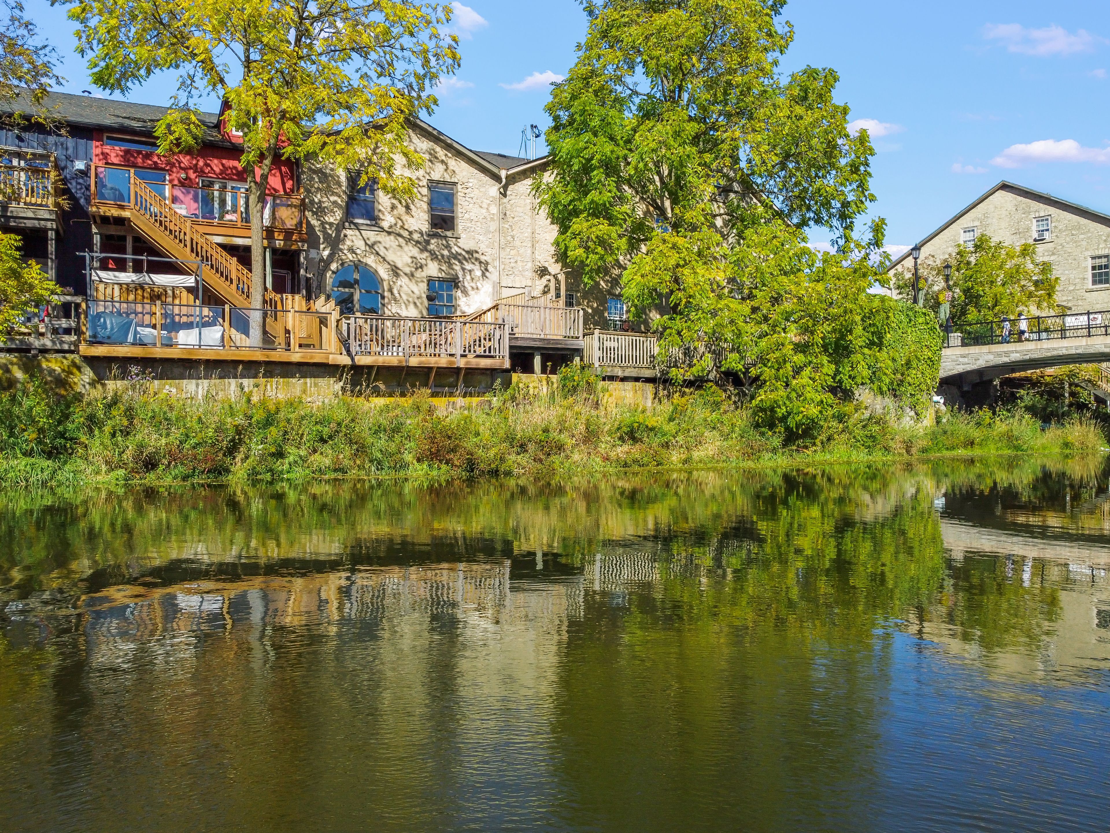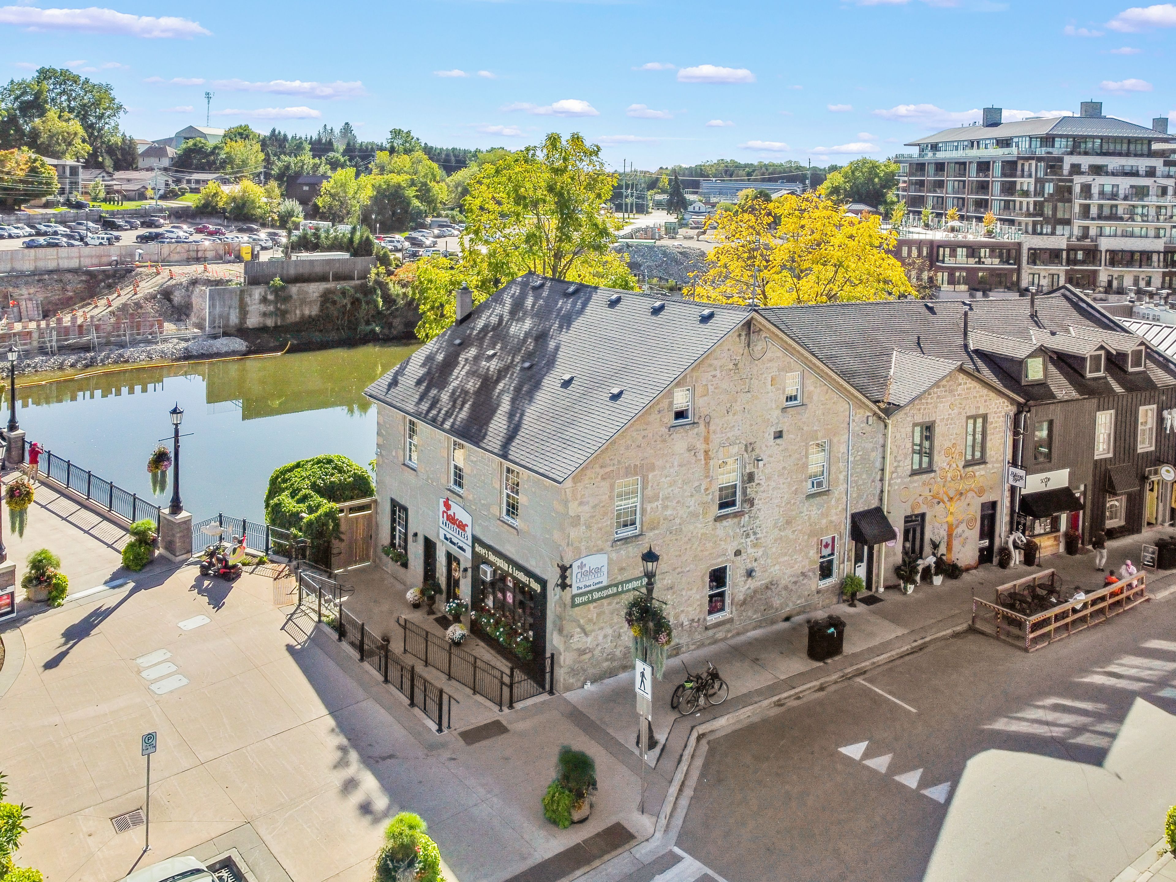 In the heart of historic elora, where cobblestone charm meets the gentle flow of the grand river, stands a property that captures the very essence of this beloved village. Surrounded by artisan shops, cafés, and galleries, this stunning building is more than a place of business; it is a cornerstone of opportunity in one of ontario's most picturesque and thriving communities. Set along the river's edge, the rear of the property opens to a raised deck and stone patio offering an extraordinary vantage point. Here, the sound of rushing water and views of the grand create a setting that draws people in and keeps them lingering, an atmosphere ideal for a destination business or a peaceful retreat for those who call it home. The main level features a beautifully maintained commercial unit perfectly suited for a boutique, gallery, or café. With high visibility and steady foot traffic, it offers the ideal stage for an entrepreneur or investor looking to establish a lasting presence in downtown elora. Above, two separately metered two-bedroom apartments provide additional versatility and income potential. These bright, inviting spaces are rich with character and offer views that celebrate the river and the surrounding heritage architecture. Owning a property that combines commercial and residential spaces opens a world of possibility. Operate your own business below while living steps away, or lease both levels for a steady multi-stream income. The configuration offers flexibility to evolve with your goals today, tomorrow, and years into the future. Few properties balance such beauty, functionality, and potential. With its riverfront setting, historic character, and prime location within elora's lively core, this is an opportunity to invest in a building that embodies the soul of the village itself - creative, enduring, and full of promise.