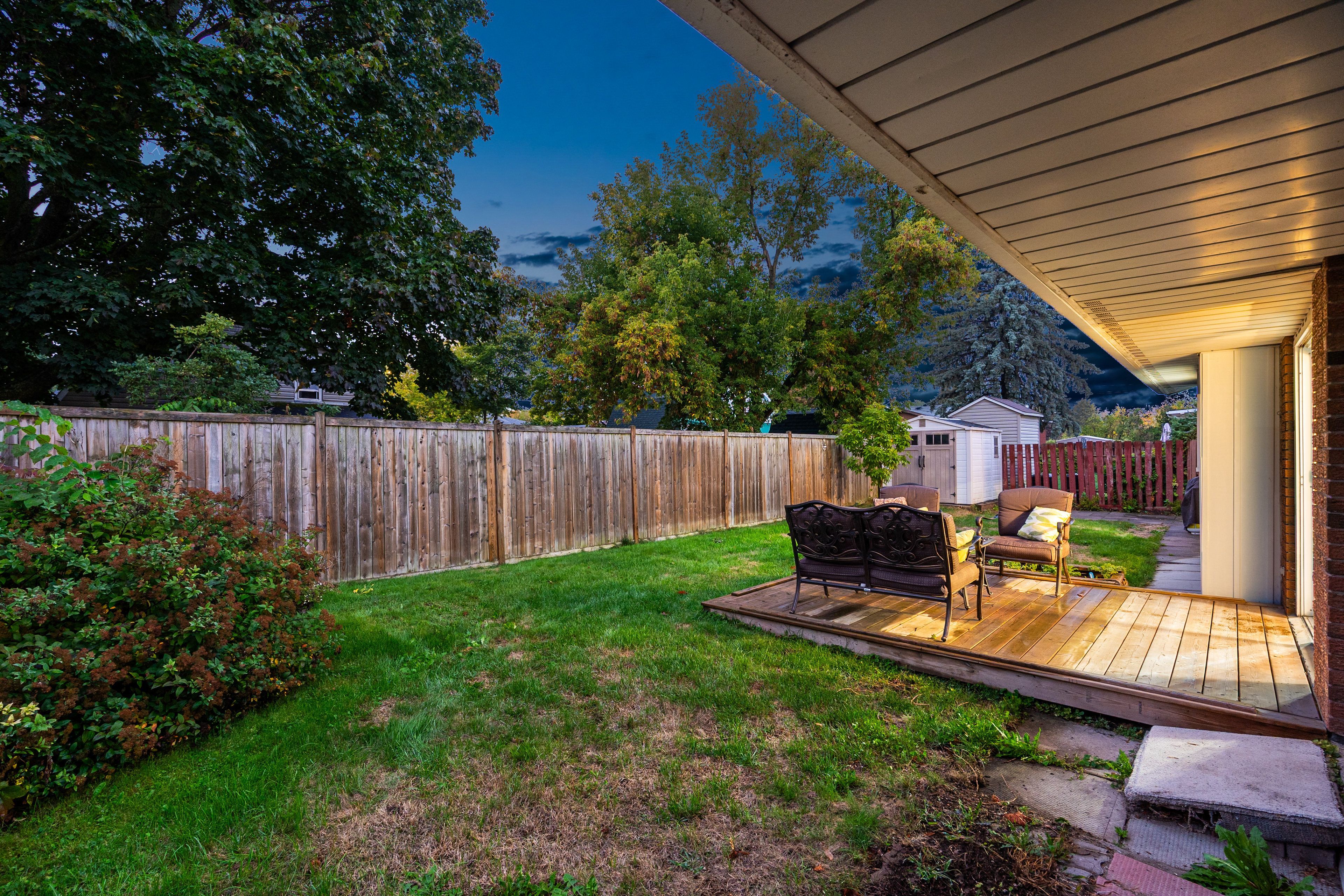 • Low maintenance backyard with a sunny deck for outdoor enjoyment.