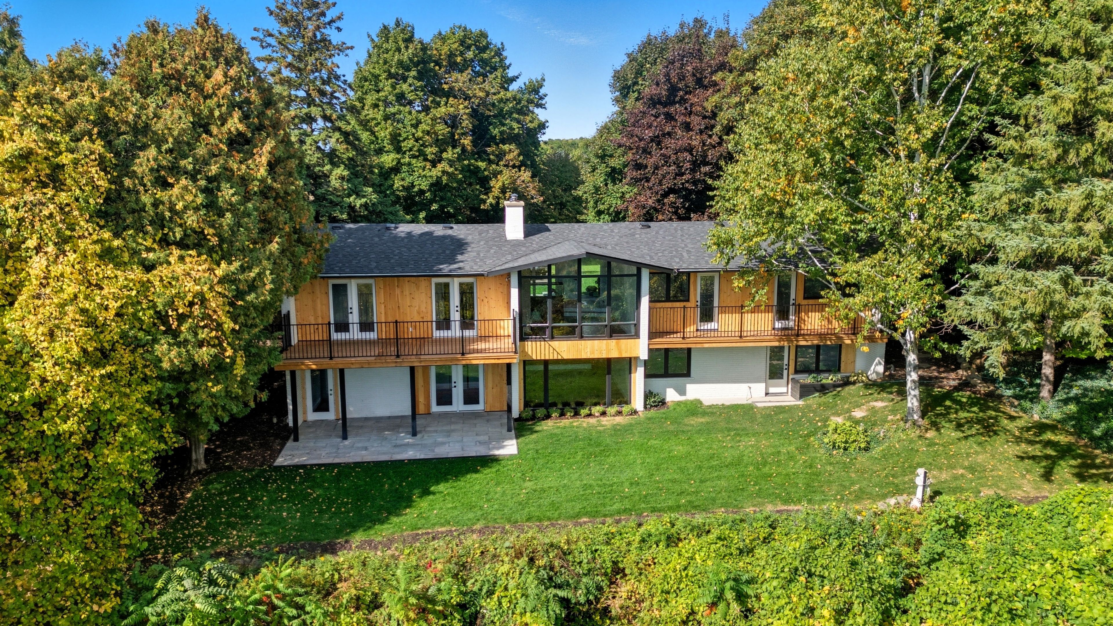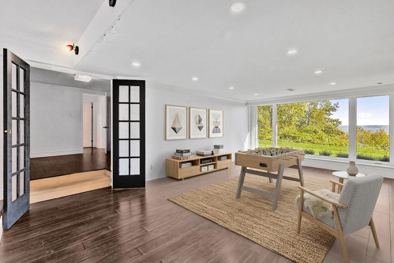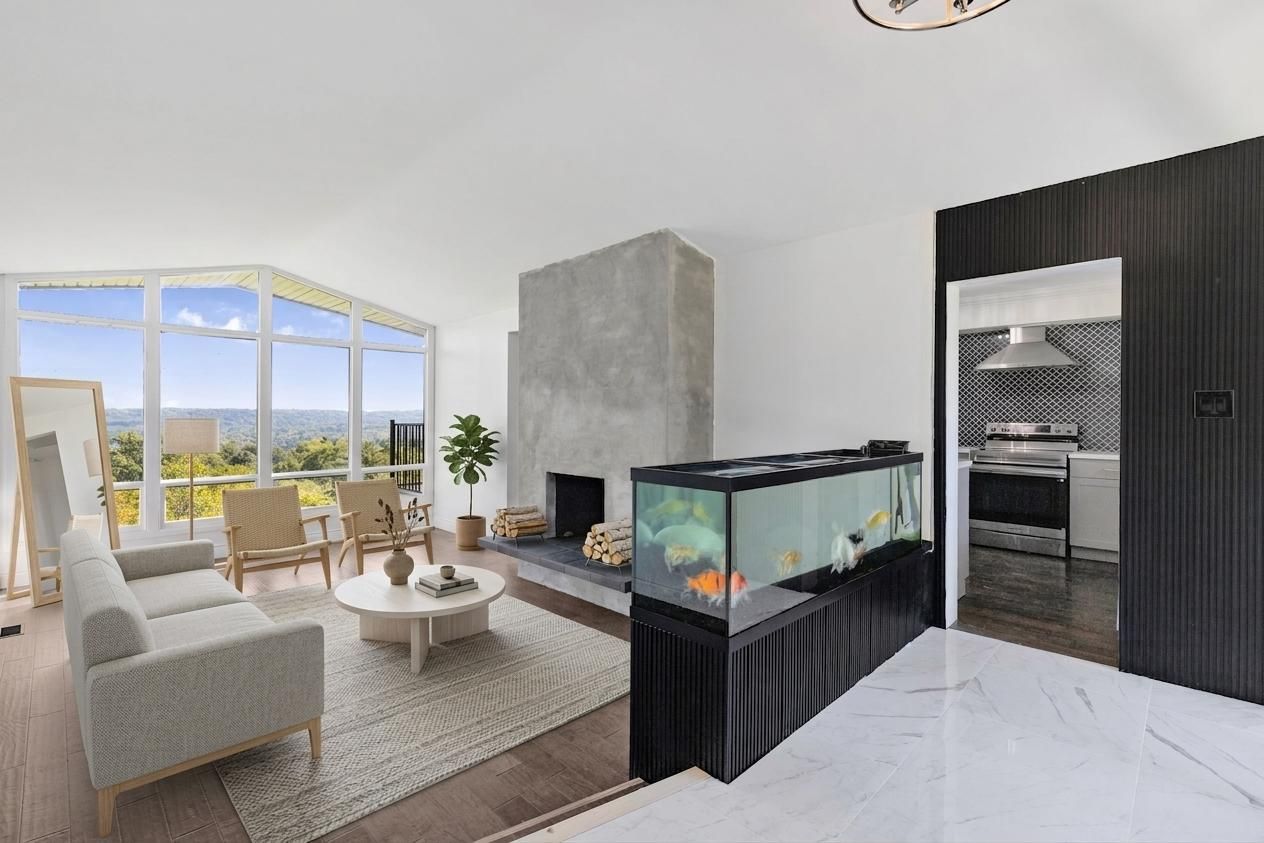 Rare one-acre escarpment estate on a dramatic cliff-ledge in the heart of dundas. This is a once-in-a-lifetime opportunity to own one of greensville's most prestigious and versatile properties, set on an extraordinary parcel perched along a breathtaking niagara escarpment cliff ledge. Surrounded by natural wildlife and panoramic valley scenery, this south-facing residence is perfectly positioned to capture spectacular sunlight and uninterrupted views from virtually every principal room. Boasting a wide 144-foot frontage, the home is thoughtfully situated to one side of the lot, offering flexibility for future expansion, architectural reconfiguration, or the creation of a landmark luxury custom estate (subject to approvals). Whether you are a discerning family seeking privacy within reach of newly built schools and modern amenities, or a visionary builder searching for a showcase development site, this property presents a rare combination of width, acreage, and topography that is virtually impossible to replicate. The fully renovated modern residence features boutique architectural detailing and premium finishes throughout. A striking new cedar façade and expansive multi-level decks create a dramatic arrival experience while seamlessly connecting indoor living with the surrounding landscape. Inside, the redesigned layout maximizes south-facing valley vistas, highlighted by a distinctive integrated koi aquarium feature, a private fitness studio, and a sleek open-concept kitchen and inspired bathrooms. An impressive dining room offers the perfect setting for grand entertaining, framed by panoramic views that evolve with the seasons. Zoning supports a luxury single-family residence with accessory structures (buyer to verify), delivering the ultimate balance of immediate lifestyle enjoyment and long-term investment upside against the awe-inspiring backdrop of the niagara escarpment. A rare offering for those seeking privacy, natural beauty, and architectural freedom.