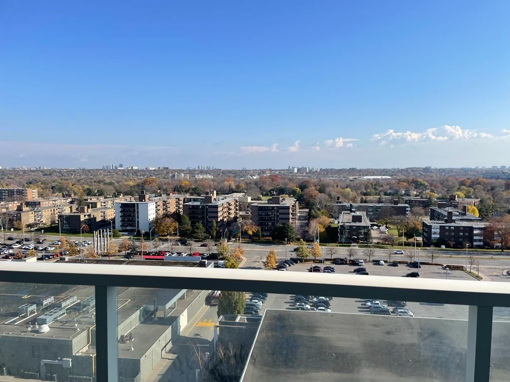 Vacant one bedroom & separate room den (that can be used as an additional sleep area) , sunrise east views, balcony. All wood/ ceramic floors, no carpet, one parking spot. Steps to all that shops on don mills has to offer. Bars, restaurants, vip cinemas, td bank, metro grocery, retail shops.