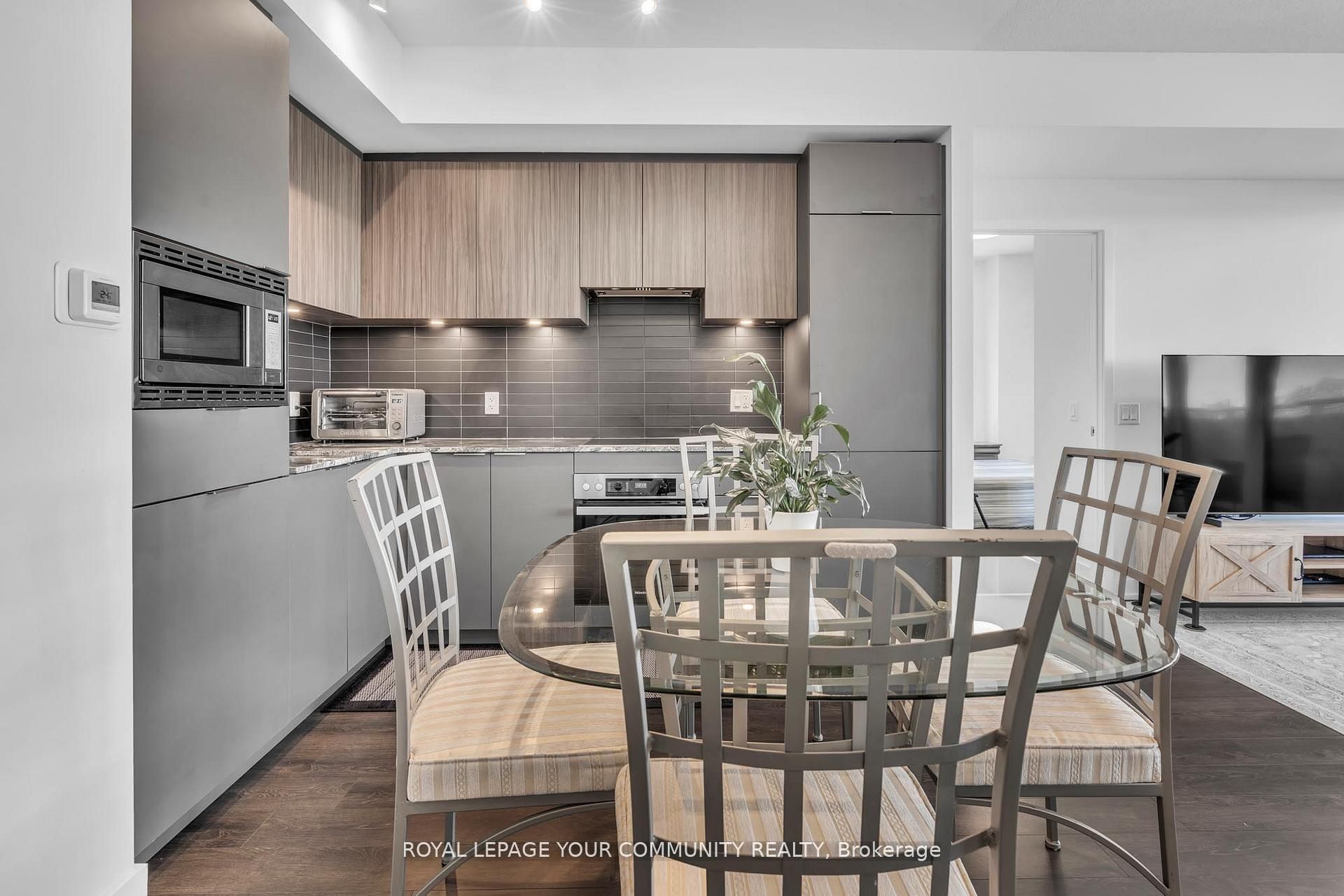 Welcome to unit 317 at rodeo drive condos, 50 o'neil rd, a bright northwest corner suite located in the heart of the vibrant shops at don mills, one of toronto's premier lifestyle destinations. Built by lanterra, this sought-after residence places boutique shopping, top restaurants, cafés, and entertainment right at your doorstep. This beautifully upgraded suite features a modern kitchen equipped with premium miele appliances (oven, cooktop, fridge & dishwasher), ge microwave, kohler faucets, and under-cabinet pot lights, along with upgraded led lighting throughout, top-quality zebra blinds on all windows, and his & hers rechargeable led sensor lighting in the closets. Large northwest-facing windows fill the open-concept living space with natural light while offering pleasant city views, and the thoughtfully designed layout seamlessly connects the kitchen, dining, and living areas, creating an inviting space ideal for both everyday living and entertaining. Residents enjoy exceptional amenities including a fitness studio, indoor & outdoor swimming pools with cabanas, party lounge, and landscaped terraces. Conveniently located two bus stops from the eglinton lrt, this home offers excellent connectivity while enjoying the walkable lifestyle of shops at don mills. Includes two premium parking spaces and one locker a rare and valuable offering in the building. 881 sqft of interior living and 189 balcony but in a wording you find suitsble.