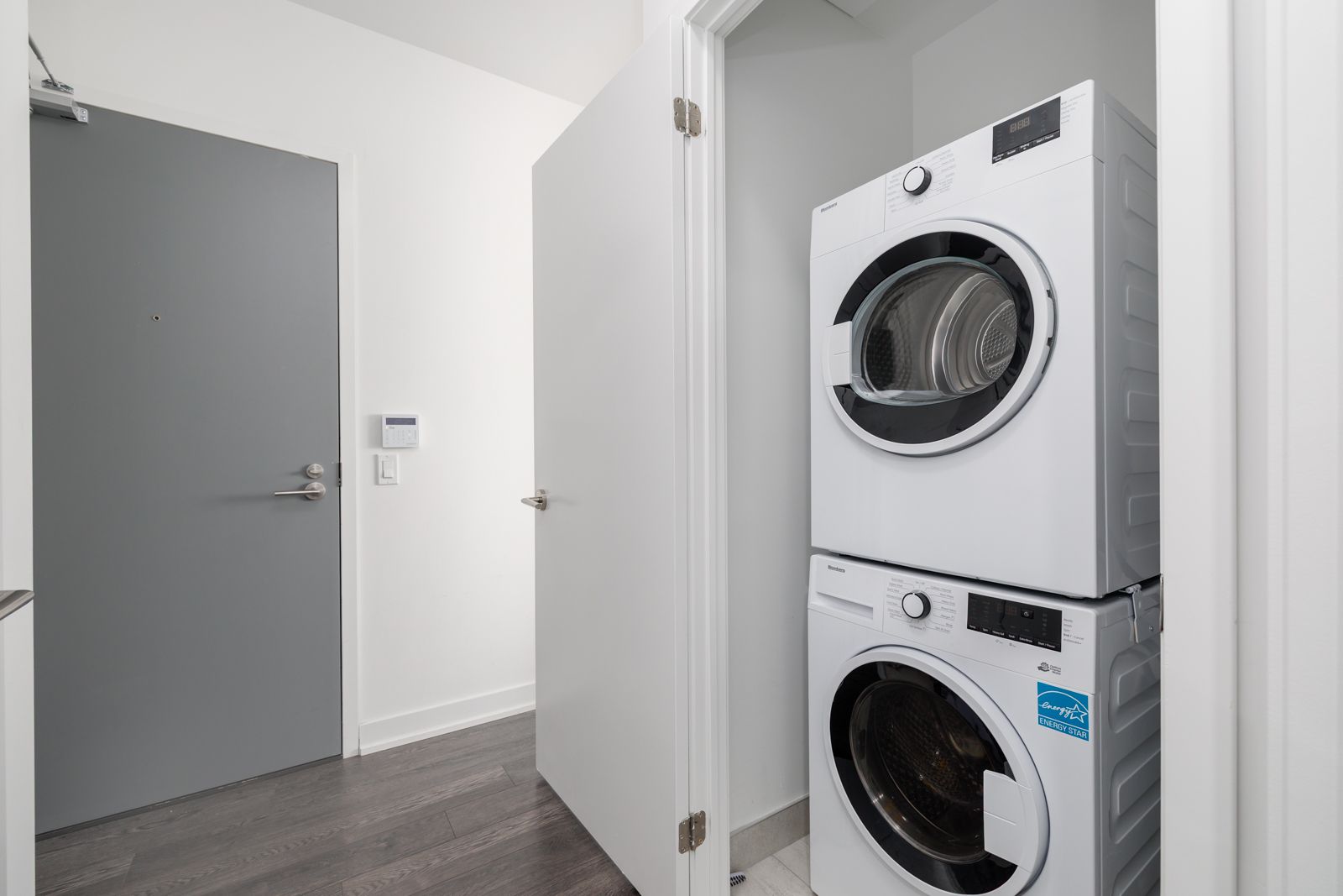 Welcome to the epitome of modern city living! This stylish one-bedroom condo offers the perfect blend of luxury and convenience. With sleek, contemporary finishes throughout and expansive windows that bathe the space in natural light, this home exudes both elegance and comfort. Enjoy breathtaking, unobstructed views of the city skyline from the private double balcony. Ideally located just steps from a wealth of amenities and the vibrant don mills shops, this condo offers unmatched access to everything you need. The unit also includes an underground parking space, in-suite washer and dryer, and access to premium building amenities like a fitness center, a spacious terrace, and a relaxing pool deck. This is urban living at its finestdon't miss your chance to call this exceptional condo your new home! Extras: underground parking, in-unit washer and dryer, fitness center, terrace, and pool deck. Extras: underground parking, and pool deck.