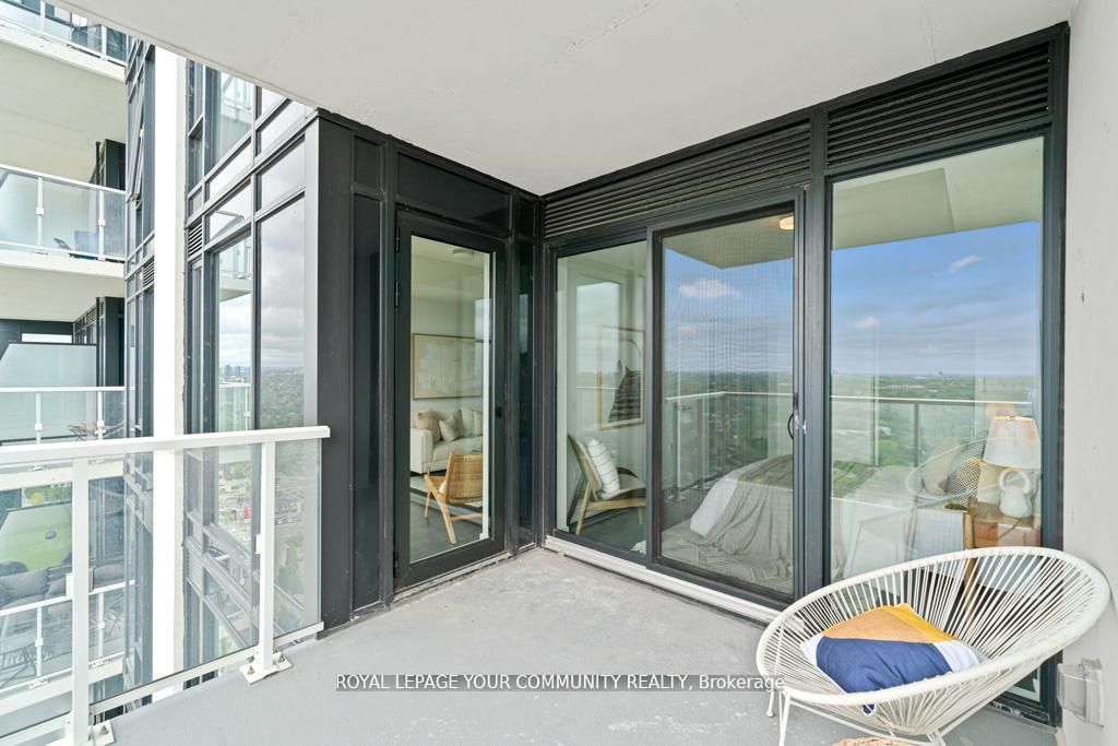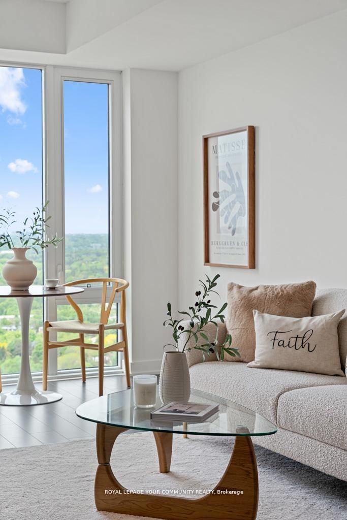 Living at rodeo drive, shops at don mills best kept secret! Don mills is in the heart of midtown, connected to great shopping, fine dining, schools, parks, libraries and community centres! Stunning 1 bedroom + den boasting unobstructed south & south west views of the city core & beyond from your huge full-size balcony terrace! One of the most functional floor plans with no wasted space featuring enclosed den that makes for the perfect 2nd bedroom or home office. Enjoy open-concept living area with 9ft ceiling & wide vinyl floors t/o. Chef's kitchen boasting integrated miele appliances, quartz counters with under-mount lighting. Spacious primary bedroom with walking closet featuring huge floor to ceiling windows with incredible views! Comes with 1 underground parking spot, just steps to shops at don mills & minutes to dvp, hwy 401, ttc public transit, just five minutes to the south, you have the upcoming crosstown lrt on eglinton, a speedy gateway to east and west toronto. It offers an array of amenities including a24-hour concierge, security cameras, a pet spa, fitness room, dry sauna, indoor lounge/party area, outdoor pool, hot tub, and expansive deck with scenic views, outdoor lounge and bbq areas, a dining room with kitchen, bar lounge, boardroom, and game room!