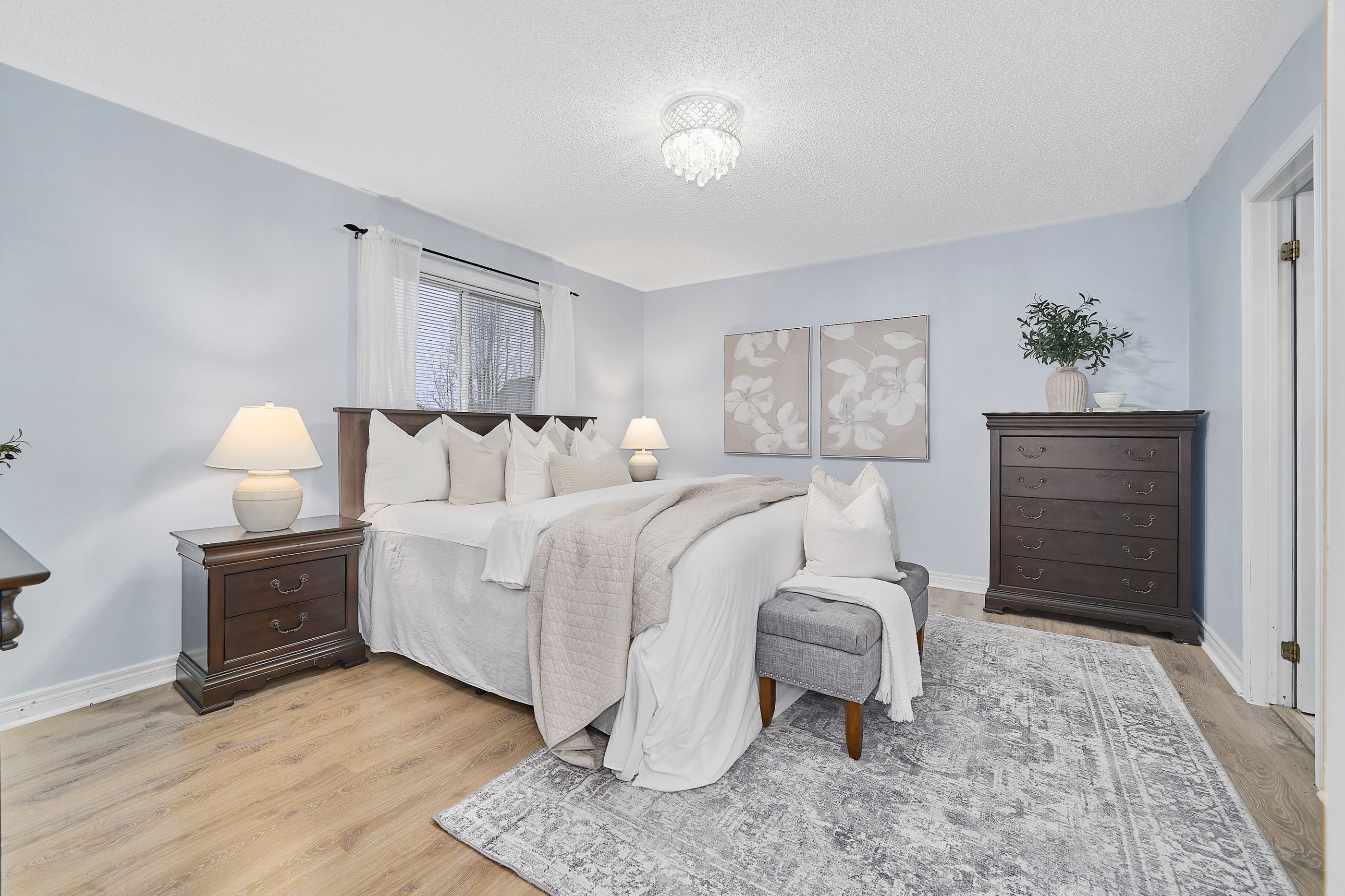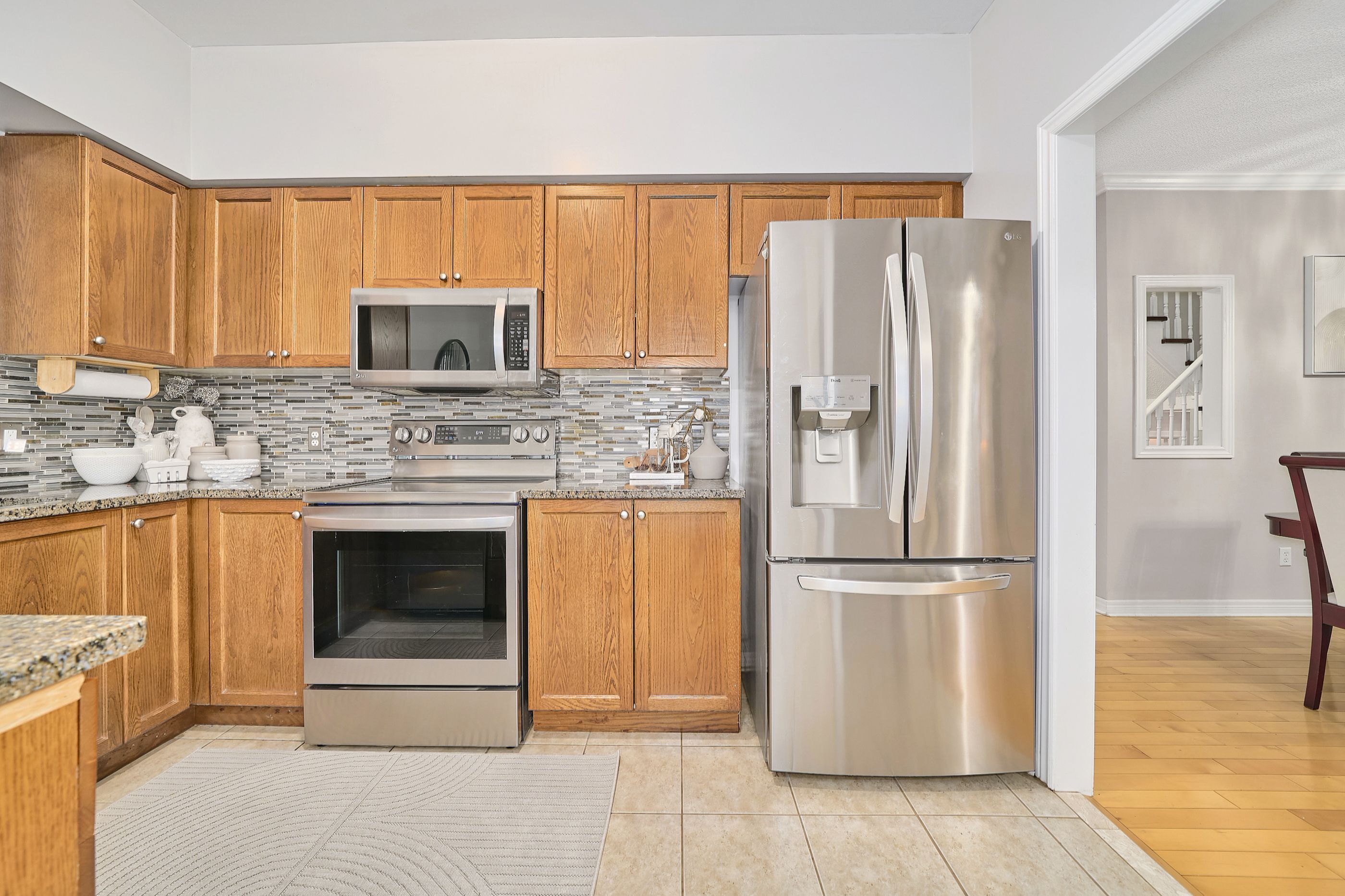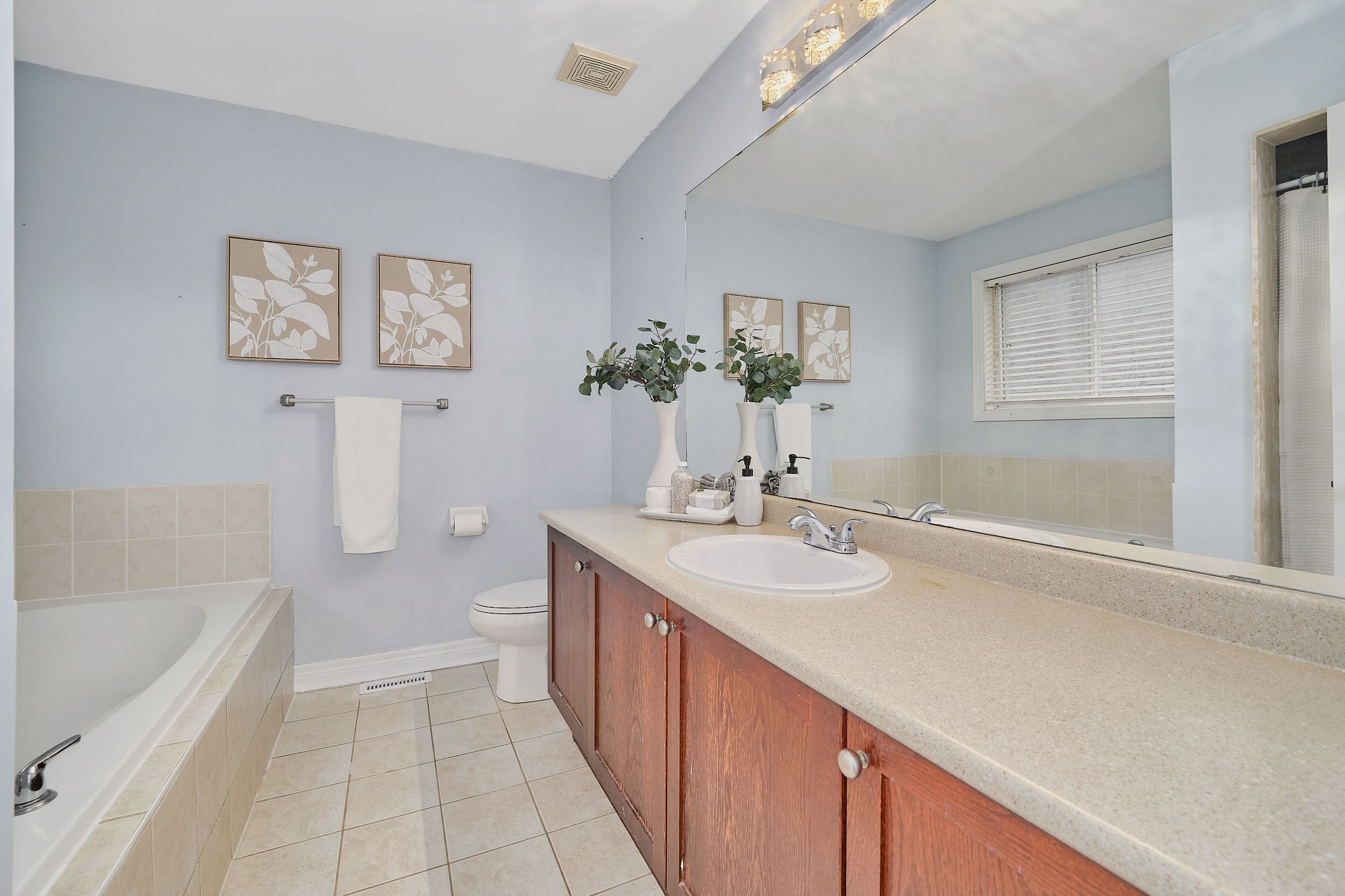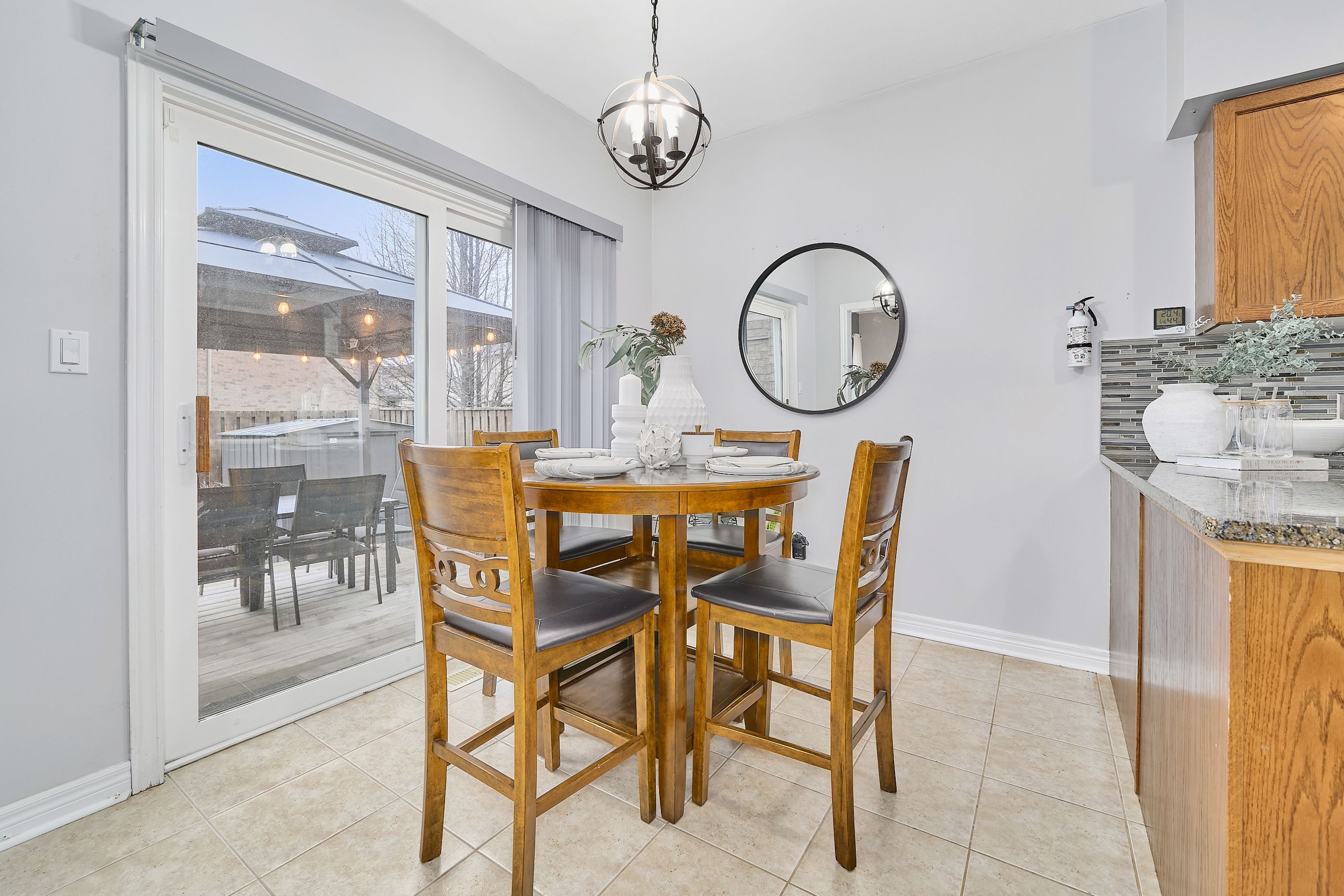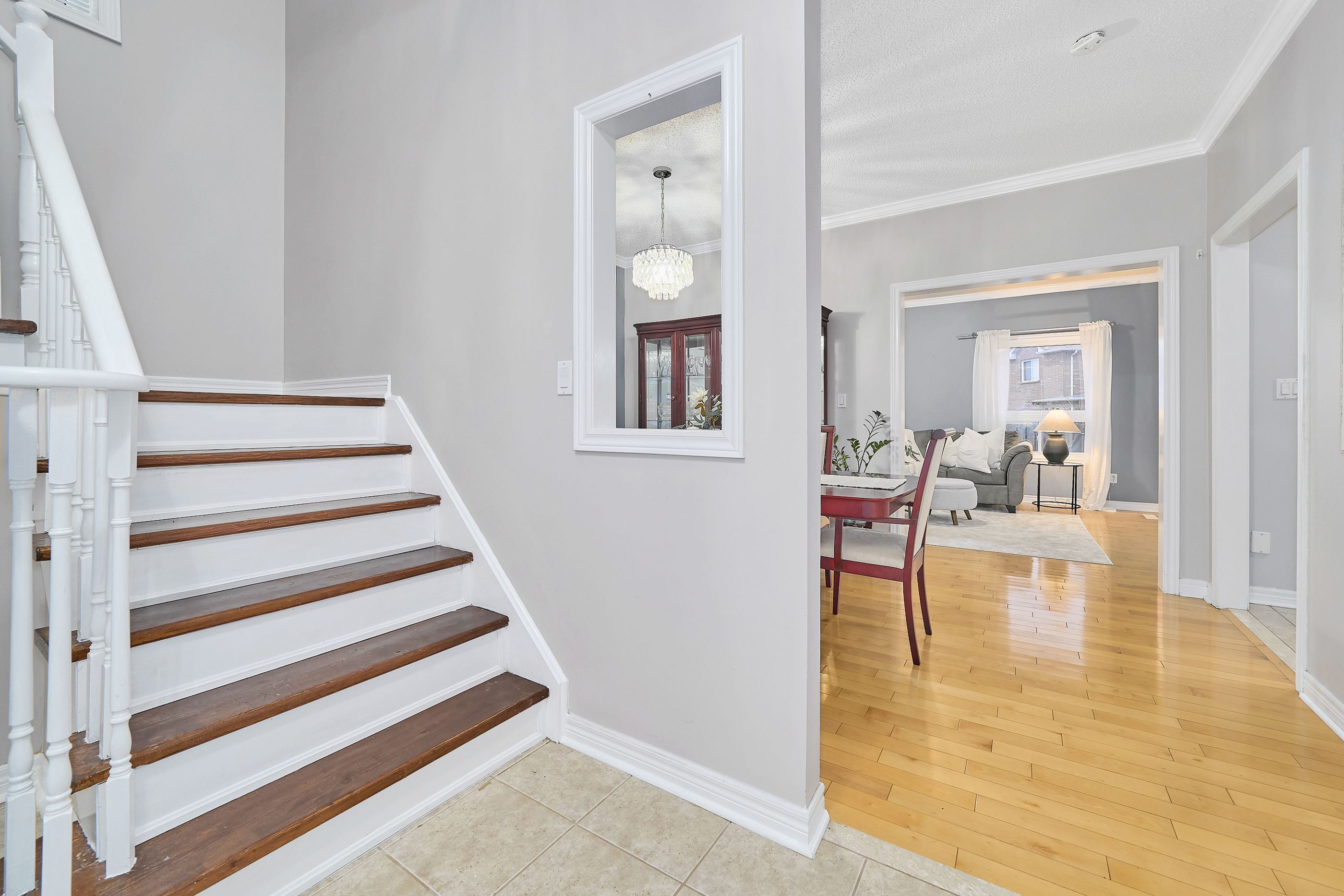 Gorgeous 4-bedroom detached family home in prime courtice location!" spacious foyer greets you upon entering with walk-in coat closet. Convenient main floor laundry room with garage access to the home. 9' ceilings on the main floor, large windows, an eat-in kitchen with quartz counter top, newer stainless steel appliances, walking out to the deck, & sunny southern exposure. Formal living & dining rooms with hardwood flooring. 4 generously sized bedrooms on the second floor, including large primary with walk-in closet & ensuite. Newly finished basement holds lots of space for entertaining, with a bar, rec room, office area & plenty of storage!! Carpet free home. Walking distance to school, transit &parks. Close to 401, shopping & all amenities!! Updates - garage door 2020, appliances 2020 - waterline for fridge, upstairs flooring 2023, stairs 2025, light fixtures updated 2020, crown moulding 2020, walkway 2021, furnace 2020, roof 2022, gazebo - 2023, shed 2023, cameras, lorex doorbell camera, garage door door opener 2020