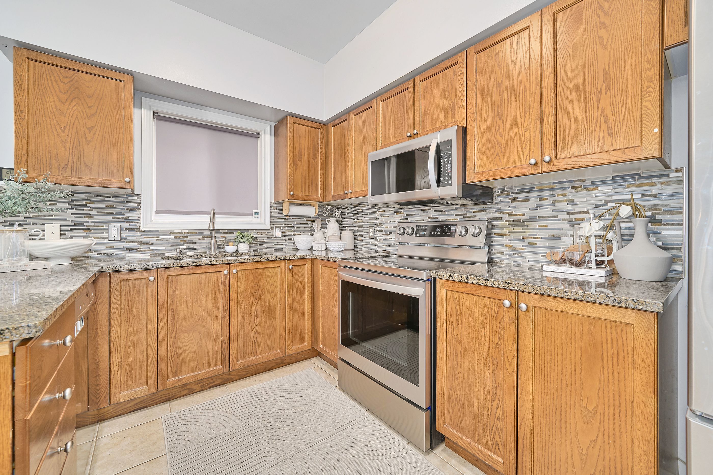 • Eat-in kitchen features quartz countertops and newer appliances.