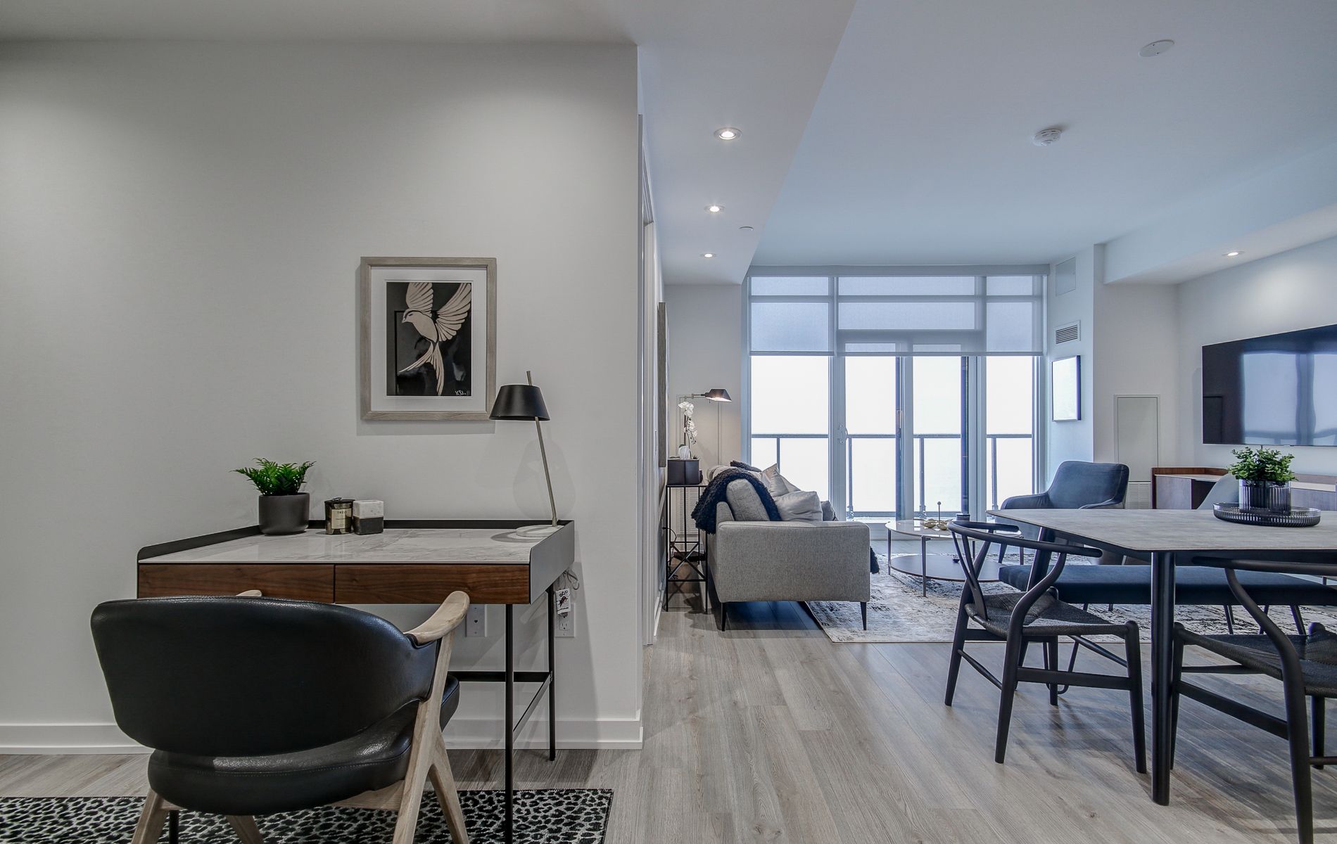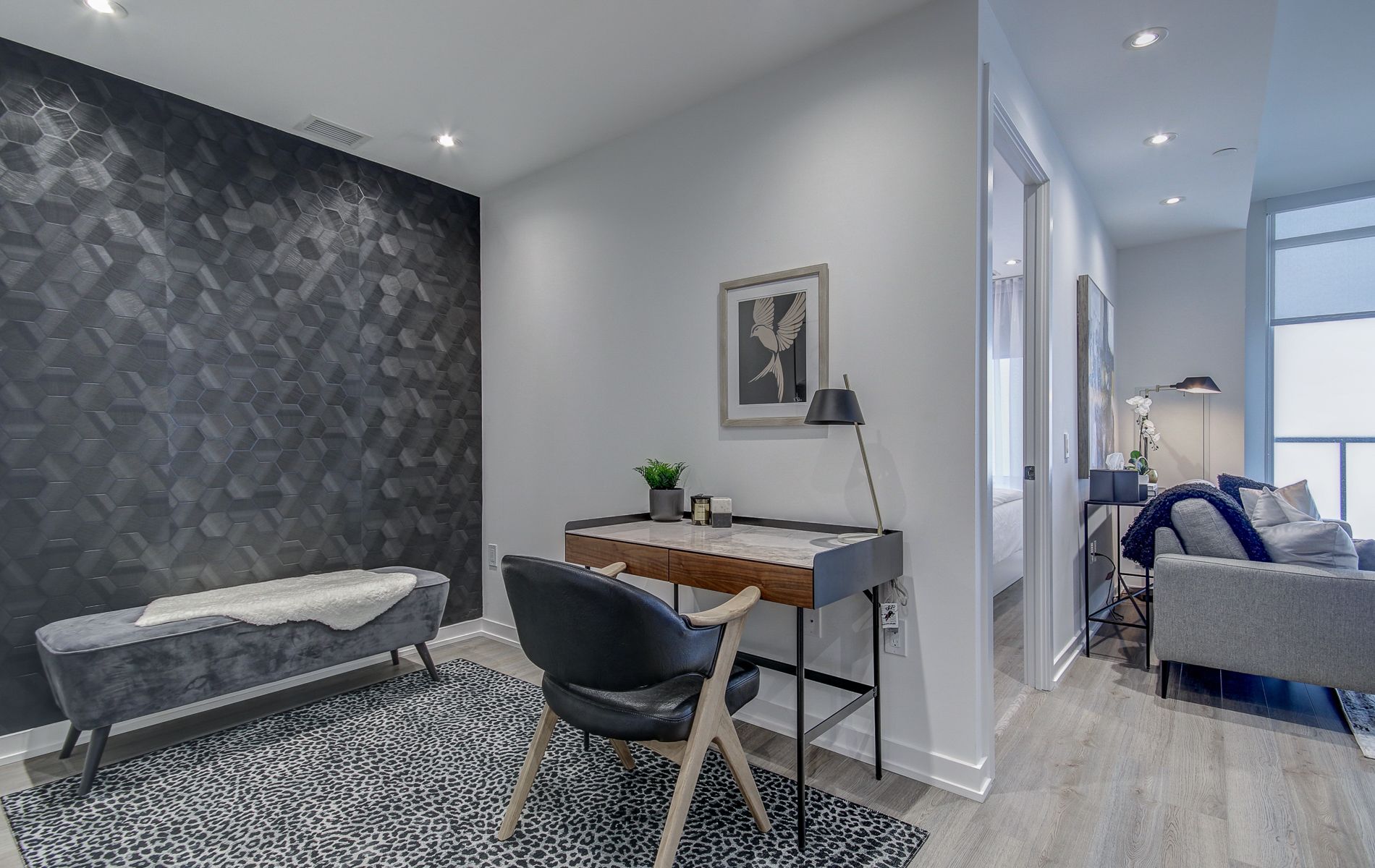 Welcome to this elegant fully furnished luxurious suite in north east facing direction | 2 br +den,2 full bath + parking + locker| find yourself at home in this chic suite, located in thecentre of one of toronto's most vibrant neighbourhoods. Step into a dynamic community ofauthentic charm with ttc at your doorstep | 9' smooth ceiling | brand new stainless steelappliances | double height lobby w/ 24 hr concierge | artists workspace, gym + fitness + yogastudio, event room with caterer's kitchen, meeting room + lounge, games room, outdoor pool +steam rooms, community garden, bbq area +fireplace in this building. **extras** all existingfurniture,s/s fridge, stove b/i dishwasher and exhaust hood, full size stacked front loadingwasher and dryer. 1 car parking,1 locker.