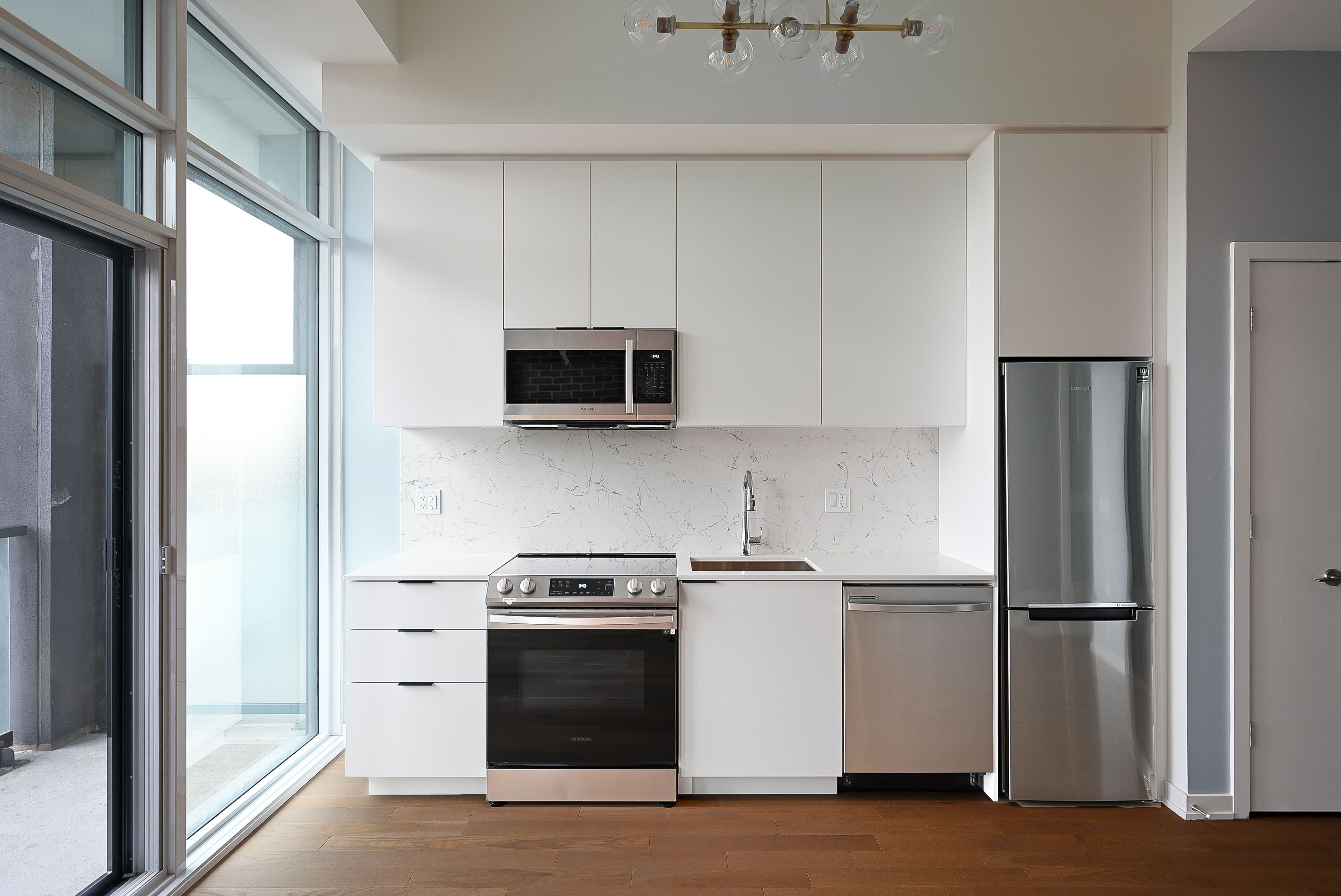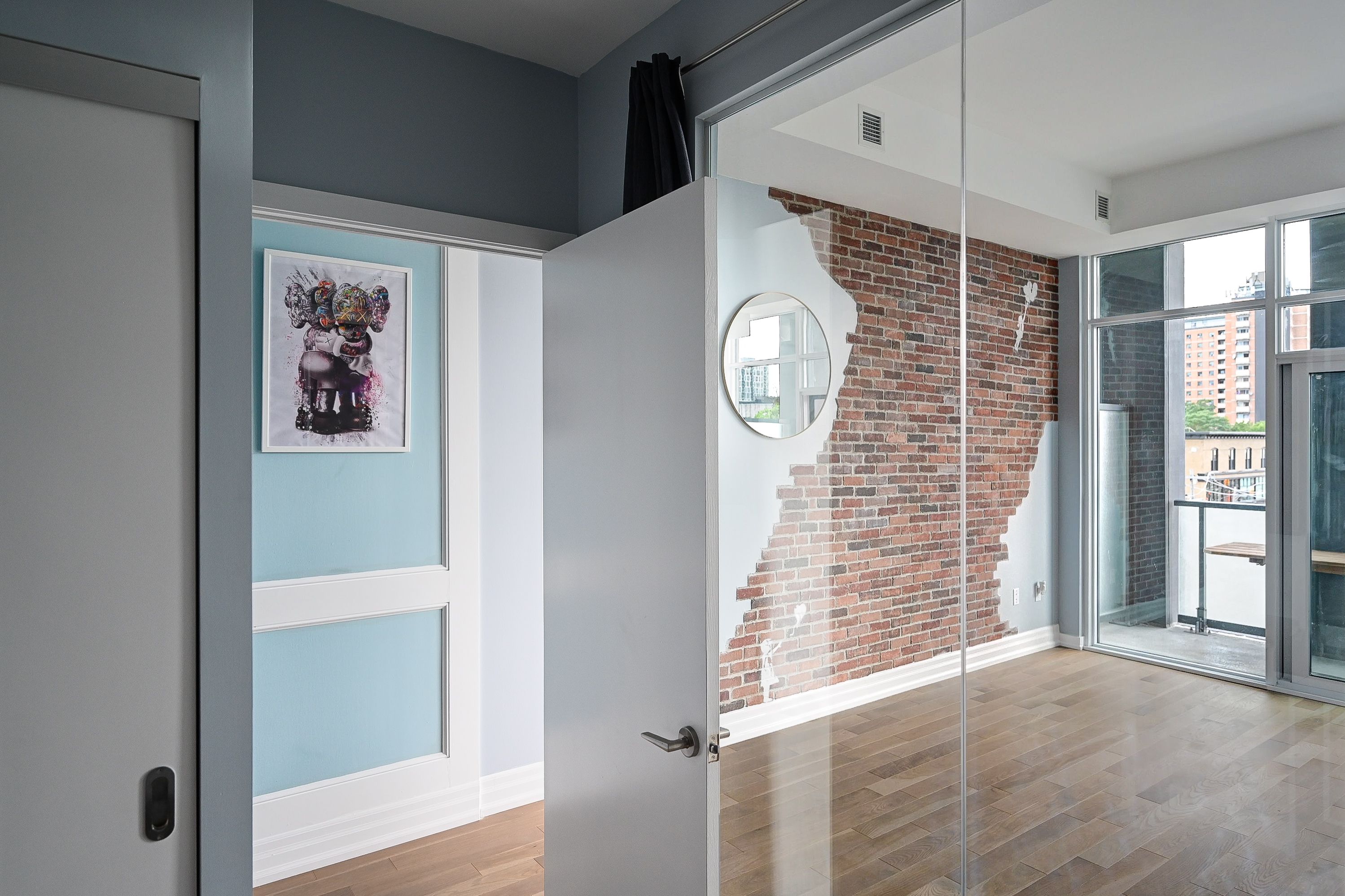 Stylish 1-bedroom loft style condo for lease in toronto's vibrant east end minutes from the historical distillery district! Looking for a unique and modern space to call home? This beautifully updated1-bedroom suite is packed with character and charm perfect for urban professionals, creatives, or anyone craving a cool city vibe. Soaring 10'+ ceilings, an exposed brick feature wall, an open-concept layout gives this suite serious loft-style appeal. The sleek kitchen includes tall custom cabinets,quartz countertops, and a matching backsplash ideal for cooking or entertaining. The primary bedroom features a custom-built murphy bed with a fold-down work desk, offering smart use of space and flexibility. Step outside to your own private balcony for morning coffee or a quiet evening to unwind. Just steps to the distillery district, ttc transit, dog park, cafes, and shops. Quick access to the gardiner expressway and dvp, and only minutes to leslieville and the iconic st. Lawrence market. Don't miss this rare opportunity to lease a one-of-a-kind suite in one of toronto's most dynamic neighborhoods!