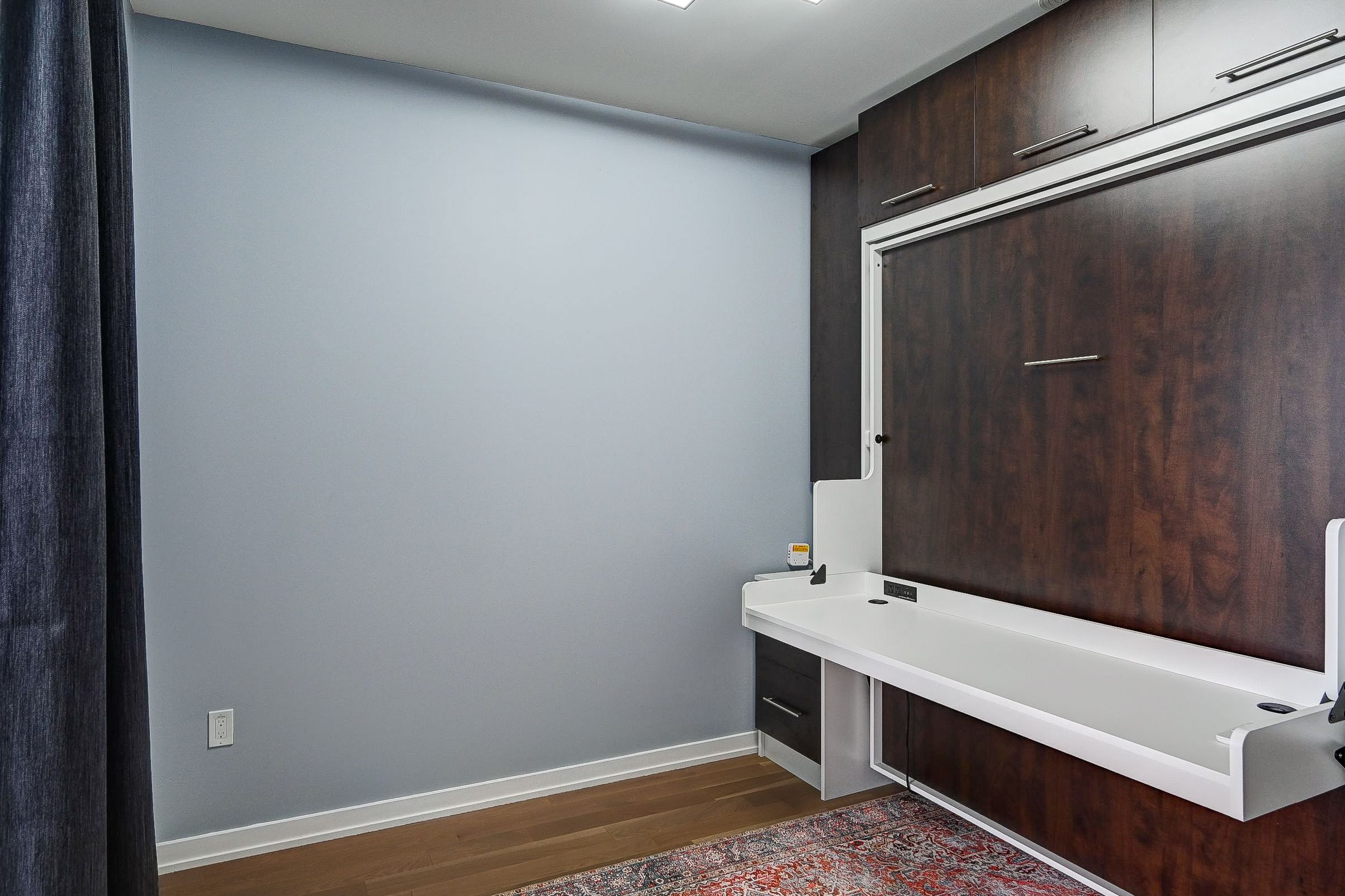 • Sleek kitchen with custom cabinets and quartz countertops.