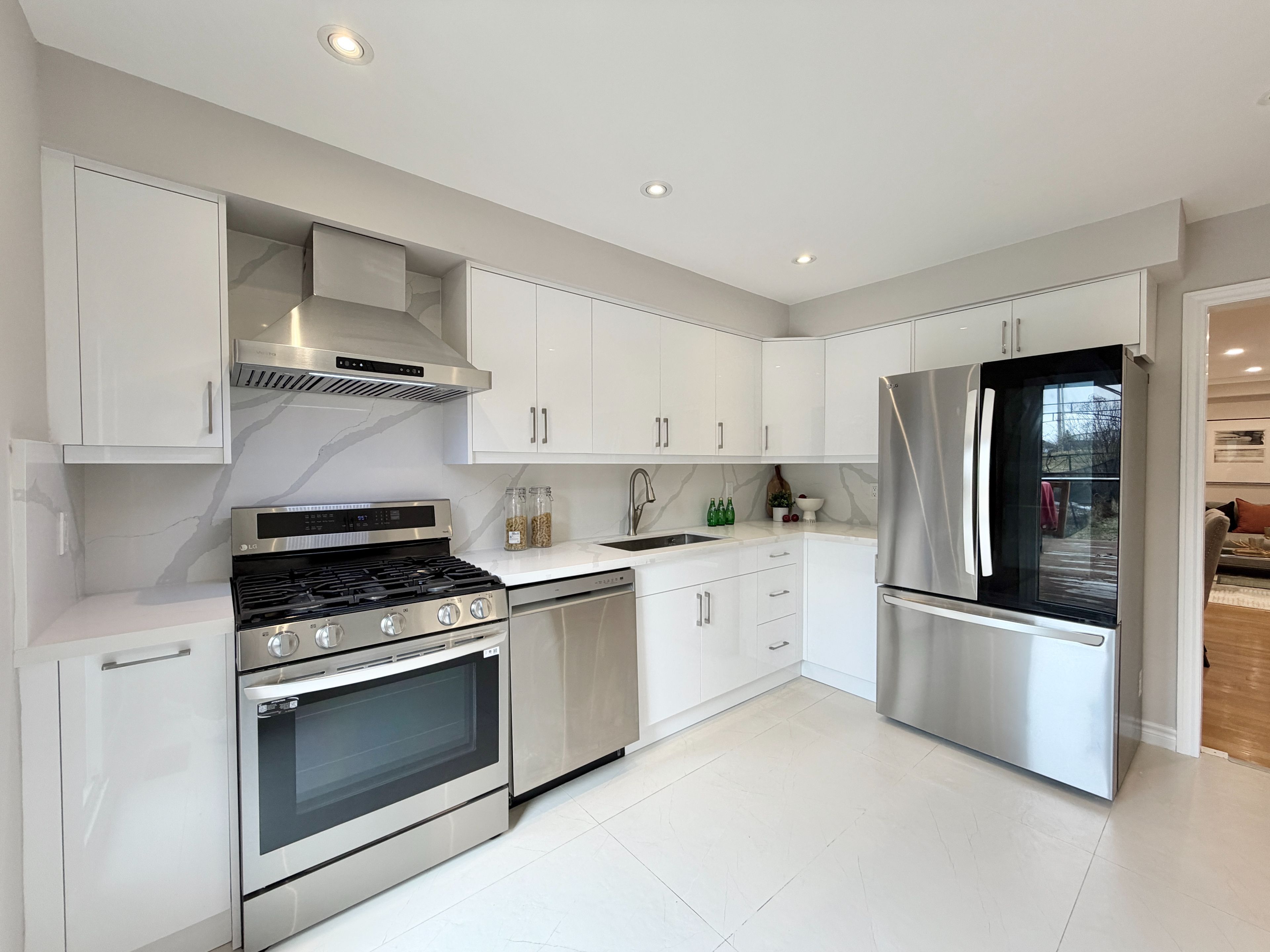 • Renovated kitchen featuring quartz countertops and stainless steel appliances.