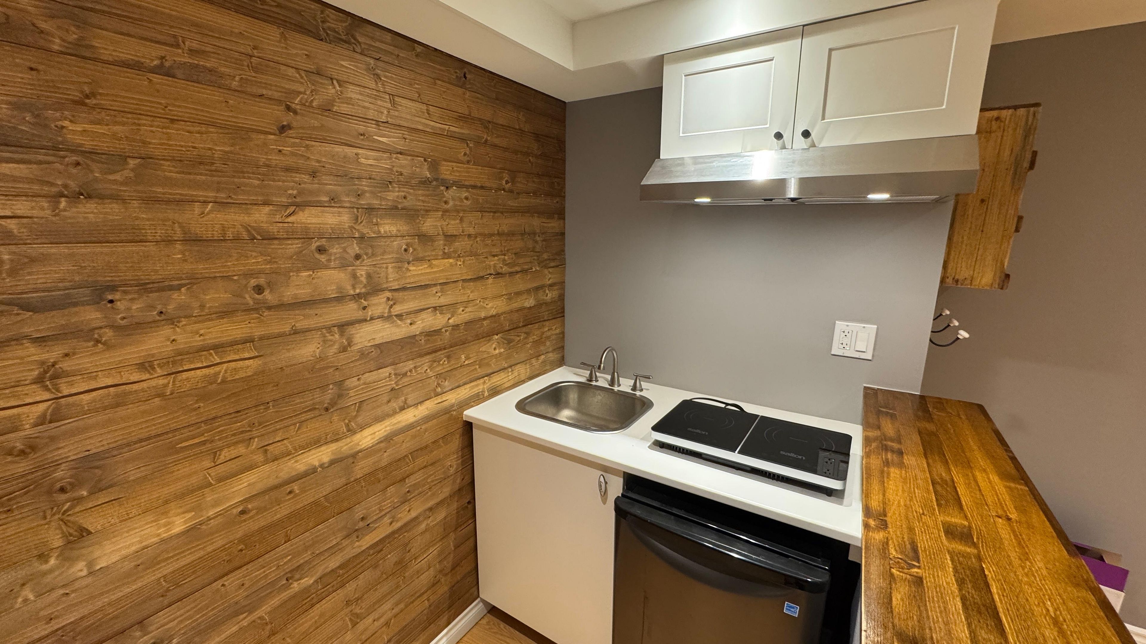Private furnished studio-style suite with separate entrance-ideal for single working professional, co-op students with 1 bedroom 1 ensuite bath with bathtub, fridge, freezer, portable cook-top, range hood and kitchen sink! Home in sought after markham village. Beautifully renovated basement, partially furnished unit, high speed internet and all utilities included! Great location close to markham stouville hospital, transportation, shops.