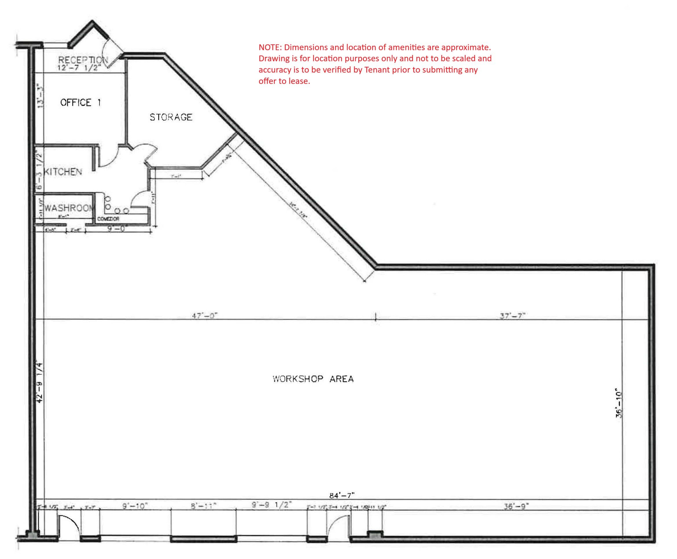 Radiant heating in warehouse/shop area. Lots of power for machinery & equipment. Ideal layout shape to accommodate many different uses. Close to 407 and public transit. No automotive uses will be considered.