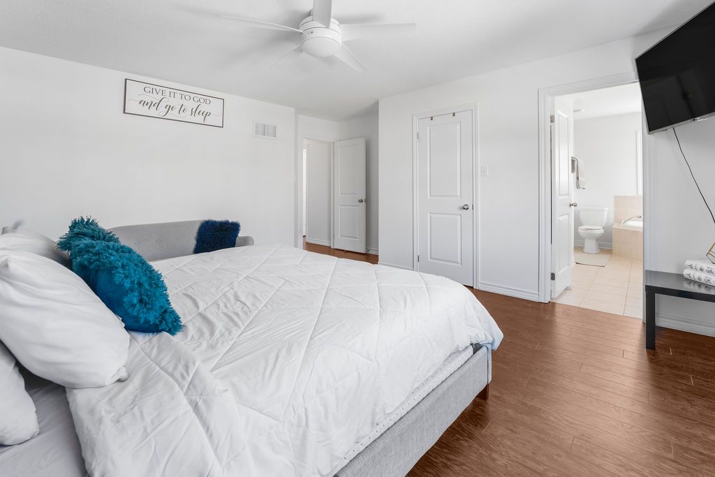 Finished from top to bottom this gorgeous 4+1 bedroom, 3. 5 bathroom detached home has everything you need and more great for professionals, and multi-generational living. Just steps away from northglen park and the new northglen orchard p. S. Opening september 2026. This property is over 2000 sqft plus a finished bsmt this property combines everyday convenience with exceptional functionality. This property is featuring an appealing open concept floorplan w/ spacious dining room, cozy family room w/ gas fp, large upgraded kitchen w/ granite counters, centre island w/ breakfast bar, s/s appliances & w/o to a beautifully landscaped backyard. The upper floor features a spacious primary bedroom serves as a true retreat, complete with a large 4 piece ensuite bathroom with a spacious walk-in closet. 3 additional bedrooms offer generous closet space and natural light. A dedicated office/den/workspace on the second making working from home effortlessly. Main floor laundry with direct garage access. The fully finished, basement feature a spacious 1bd, 3 piece bathroom laminate throughout, cold cellar, living room, laundry making it perfect for extended family or potential rental income. Additional highlights include a 1 car wide garage, extended and wide driveway to fit approximately up to 4 vehicles, this is a great opportunity to own a move-in-ready property close to park, brand new school, local stores, markets, highways and so much more.