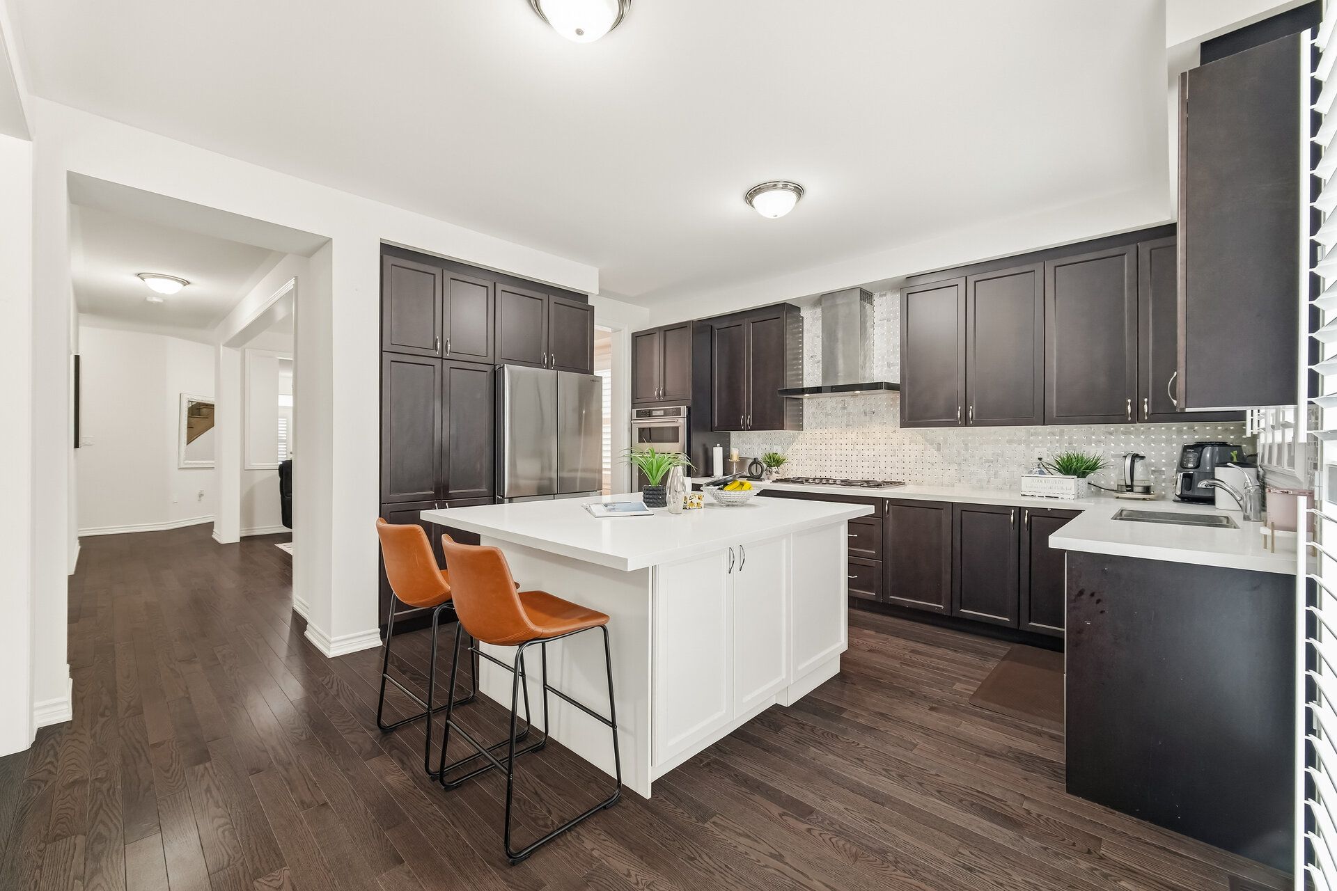 • Upgraded kitchen with quartz countertops and stainless steel appliances.
