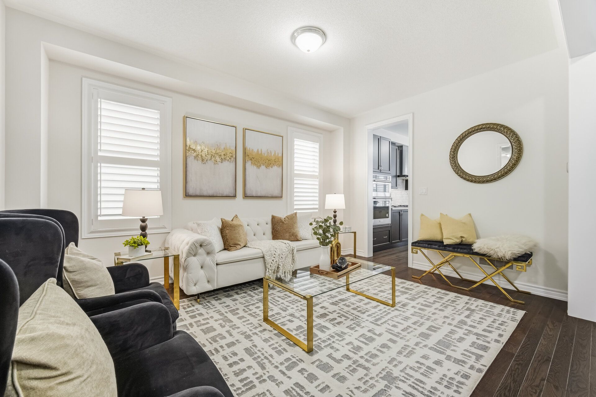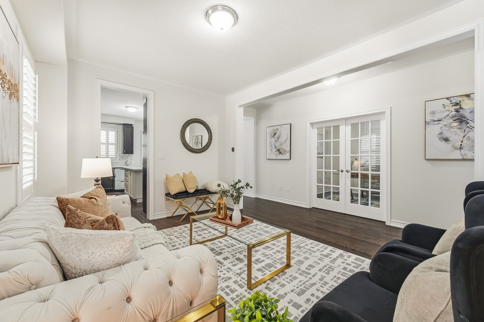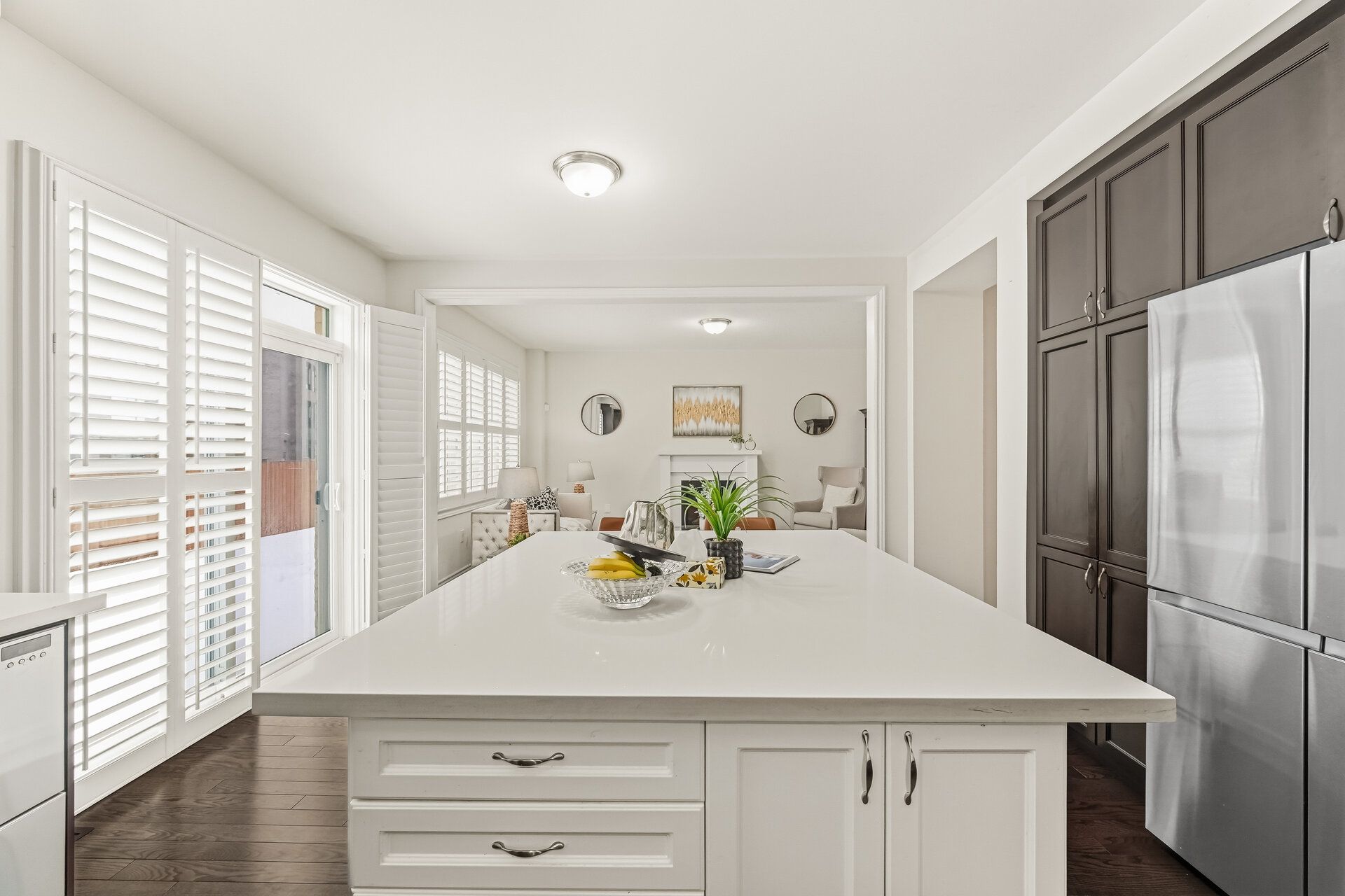 • Separate living, dining, and family rooms with hardwood flooring.