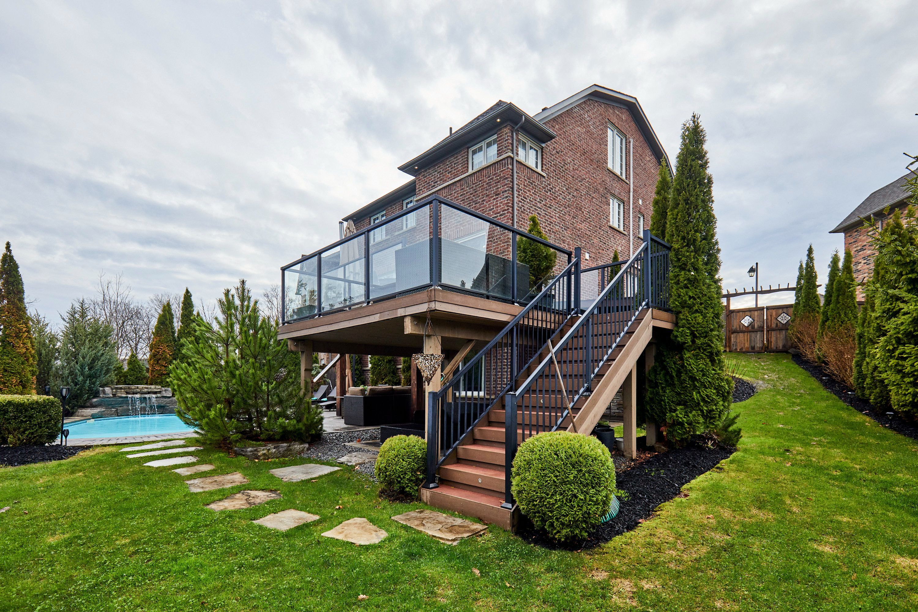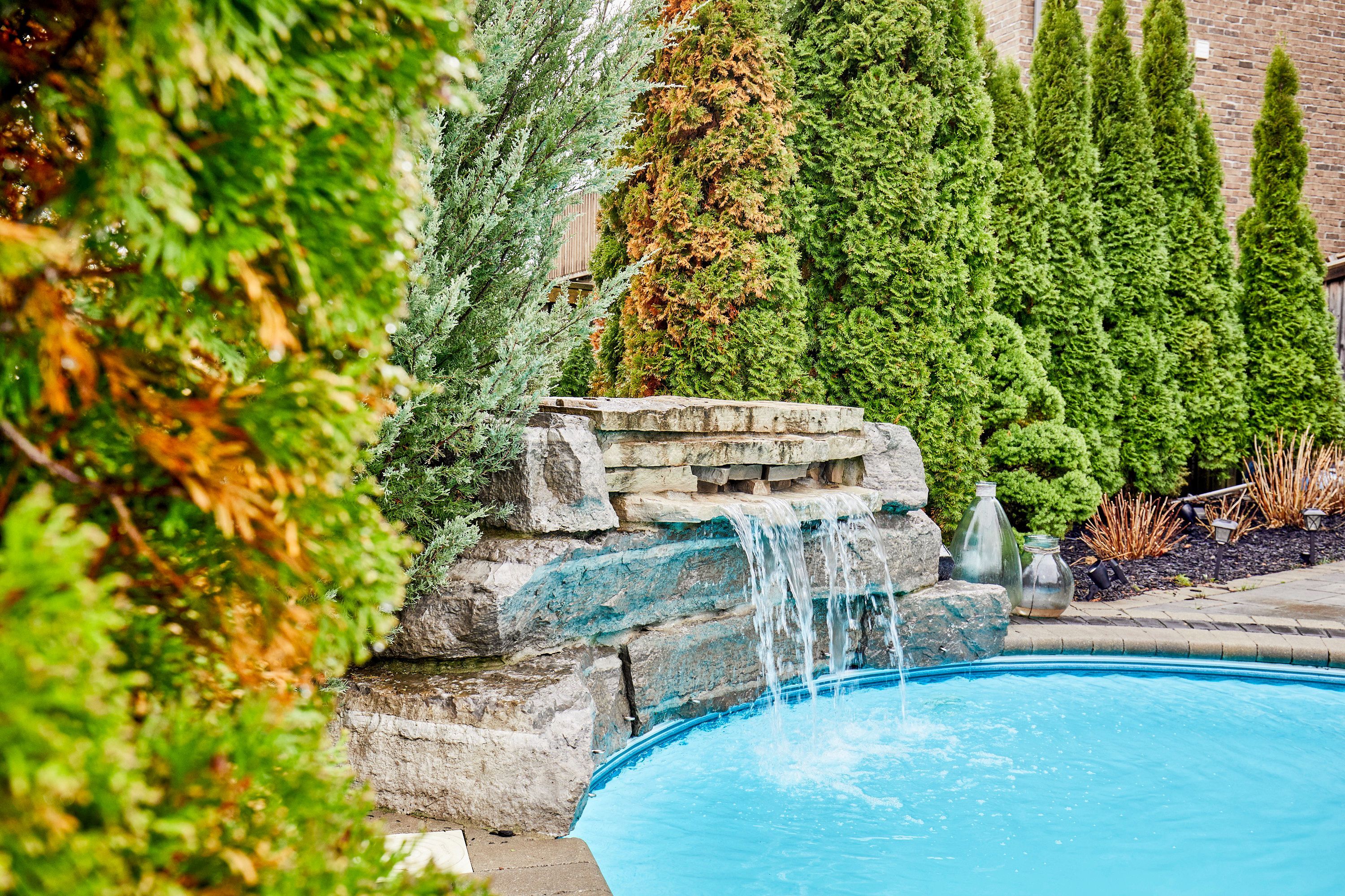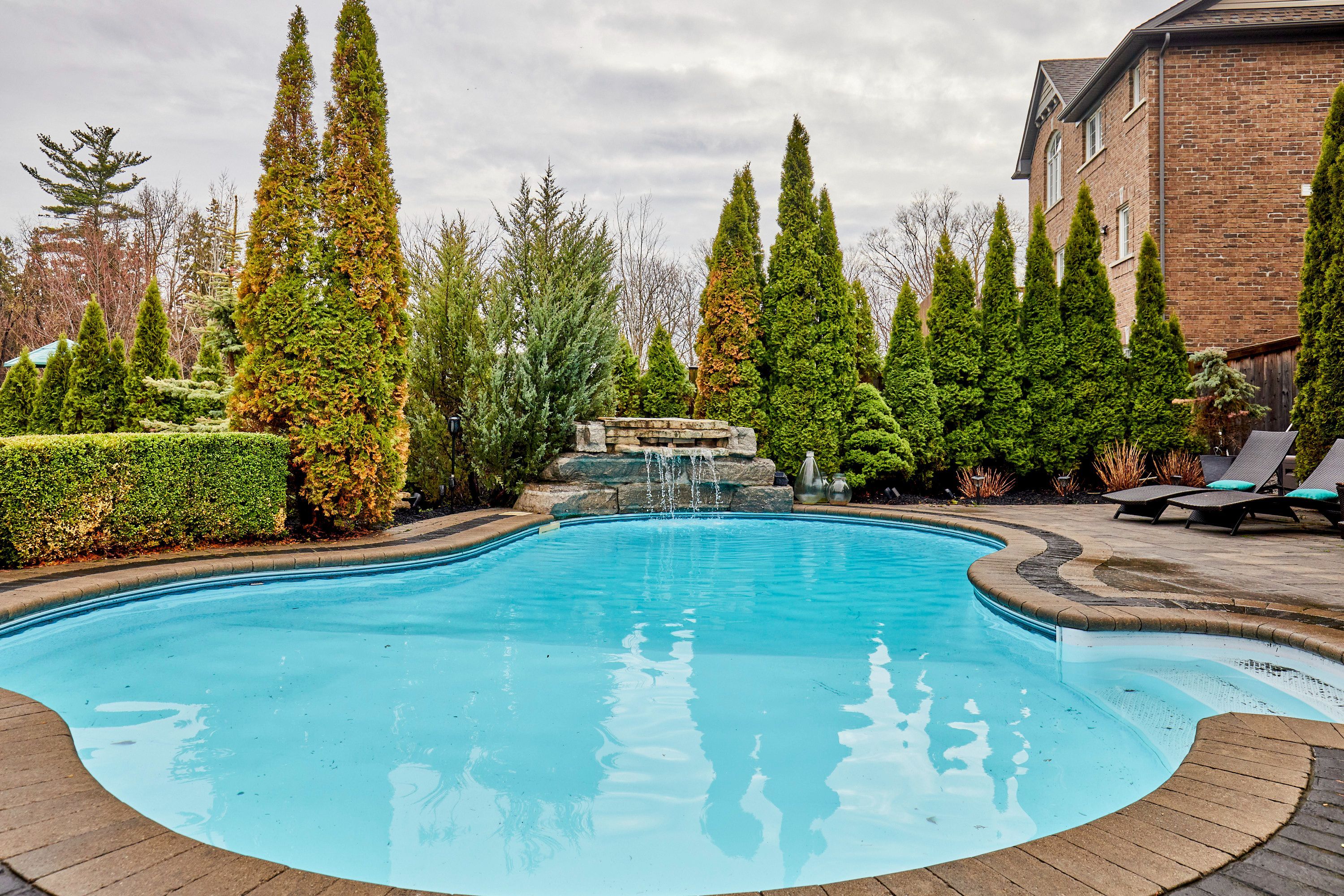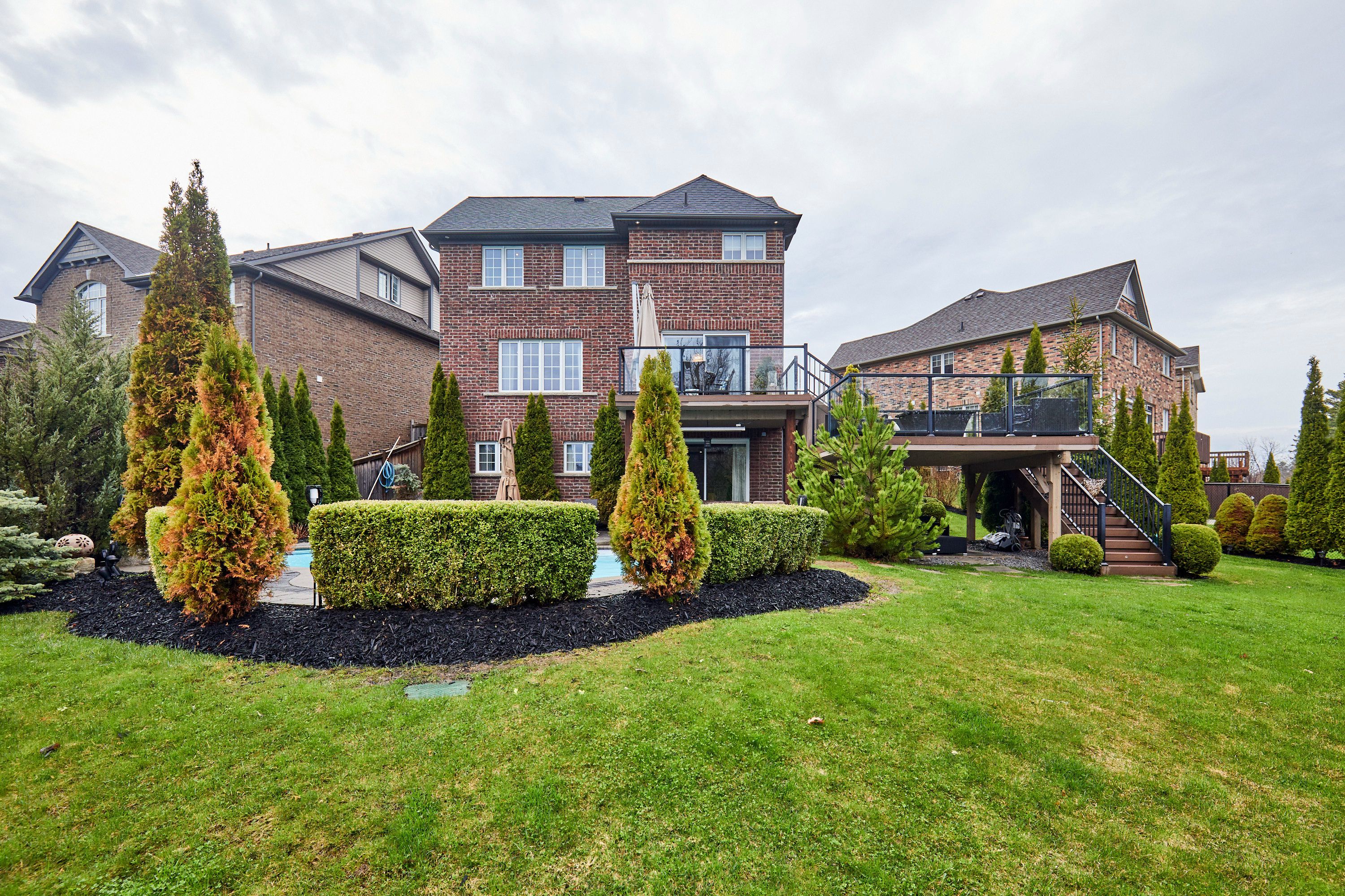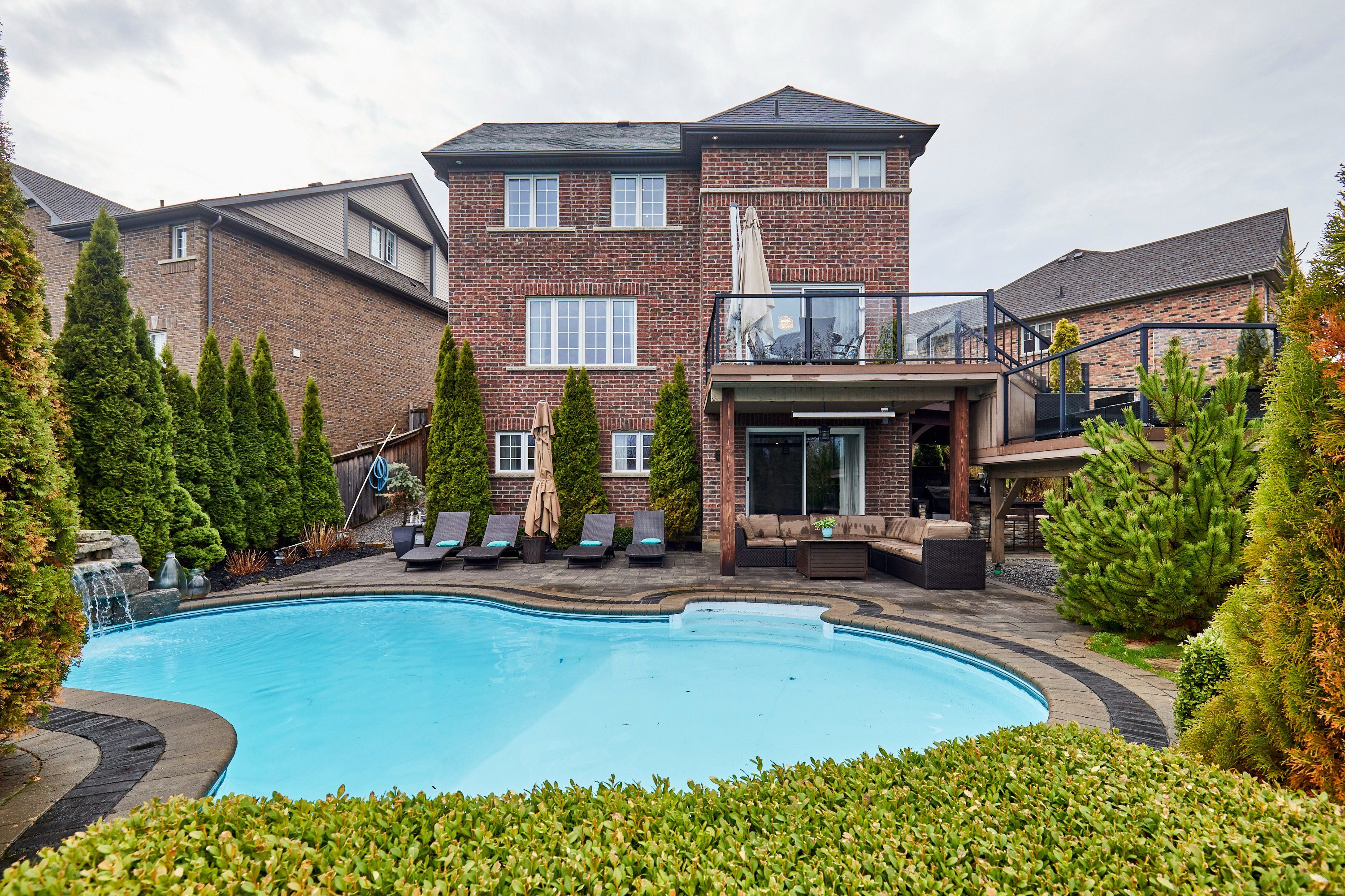 Welcome to this exceptional executive residence, perfectly nestled on a coveted pie-shaped lot backing onto a private ravine-offering a rare blend of luxury living and natural serenity. This stunning home boasts a bright, open concept main floor with five spacious bedrooms and five beautifully appointed bathrooms, all complemented by gleaming hardwood floors throughout. Designed for both everyday living and elegant entertaining, the chef-inspired eat-in kitchen features an oversized island with breakfast bar, granite countertops and high-end appliances with a seamless walk-out to your own private backyard oasis. The inviting family room showcases a sophisticated stone fireplace, while separate living and dining rooms provide refined spaces for hosting family gatherings. The second level offers your primary retreat complete with a spa-like 5-piece ensuite and a large walk-in closet. Three additional spacious bedrooms include a convenient shared 4-piece bath between bedrooms two and three. A versatile second-floor office/media space is ideal for working from home. The upper level also features a fifth bedroom with a dream walk-in closet and dressing room, complimented by an additional family room-perfect for extended family or private guest quarters. The finished walk-out basement is an entertainer's dream, featuring a large wet bar, expansive games area and a cozy gas fireplace all opening to the spectacular backyard. Over $300,000 in professional landscaping has transformed the outdoor space into a true resort-style retreat. Enjoy a heated saltwater in-ground pool with a breathtaking waterfall cascading over natural stone, an expansive patio designed for seamless indoor-outdoor living, and a fully equipped outdoor kitchen-perfect for hosting unforgettable summer events. This is more than just a home-it's a private escape designed for those who value space, elegance, and endless entertaining.