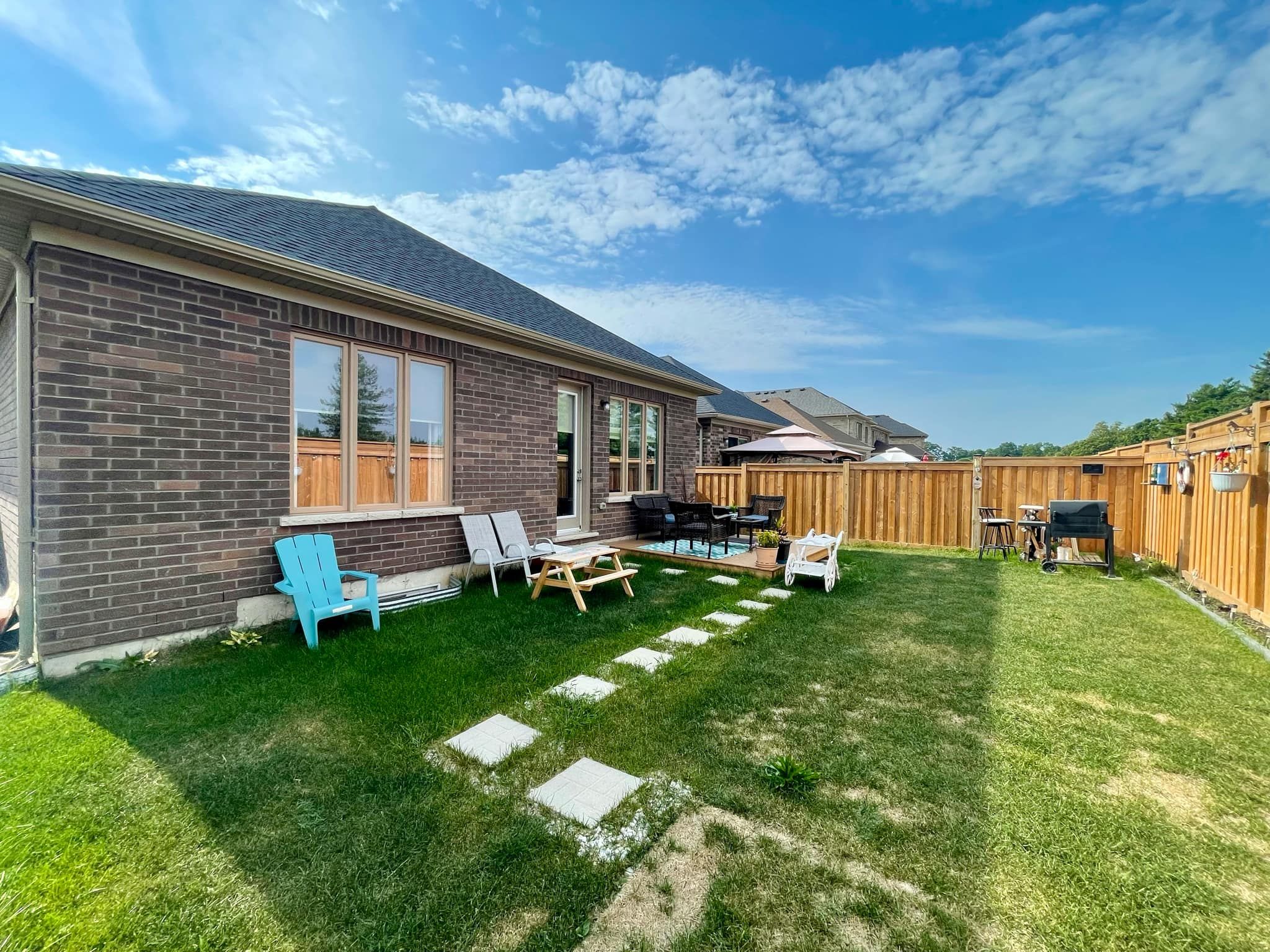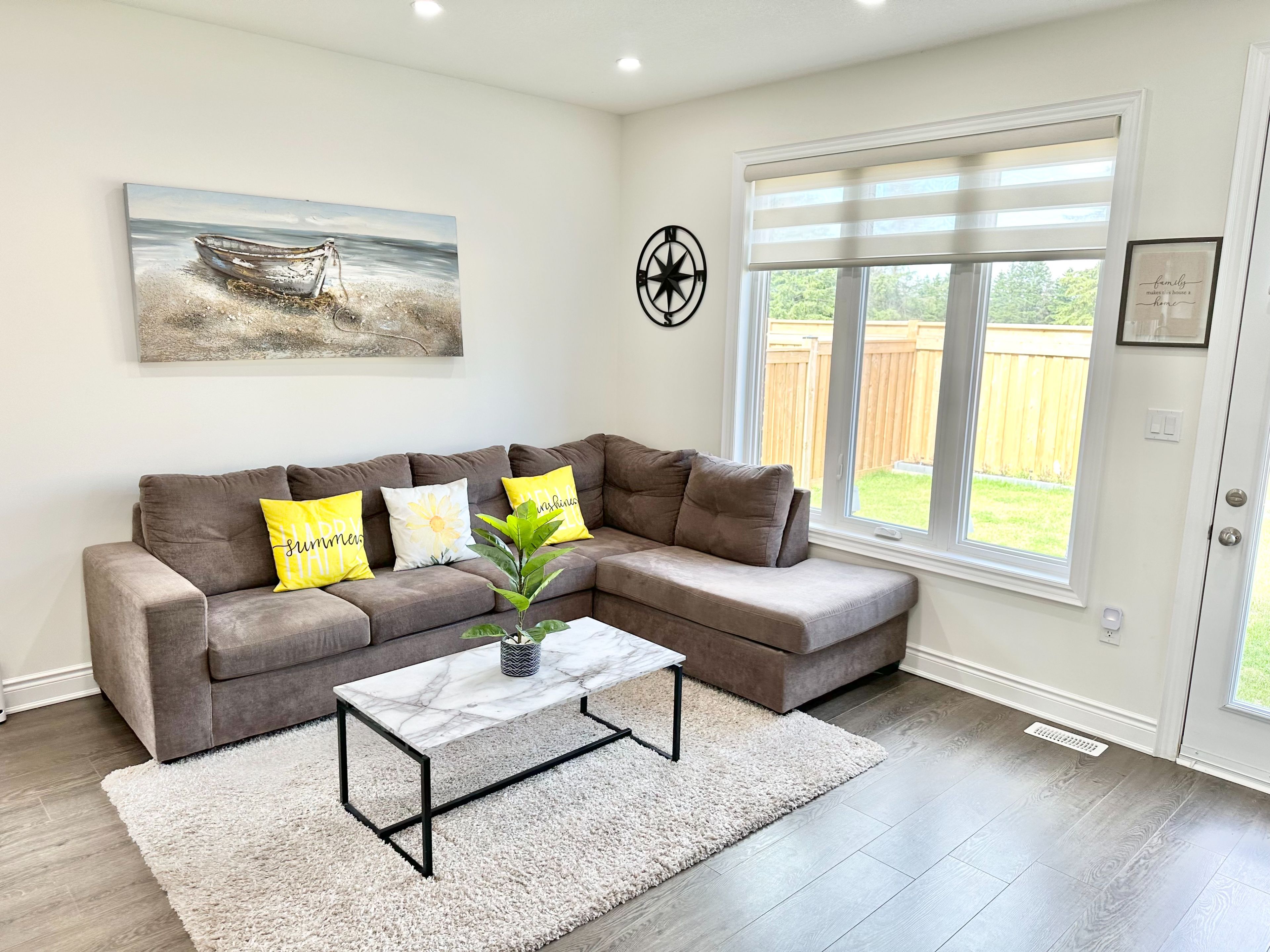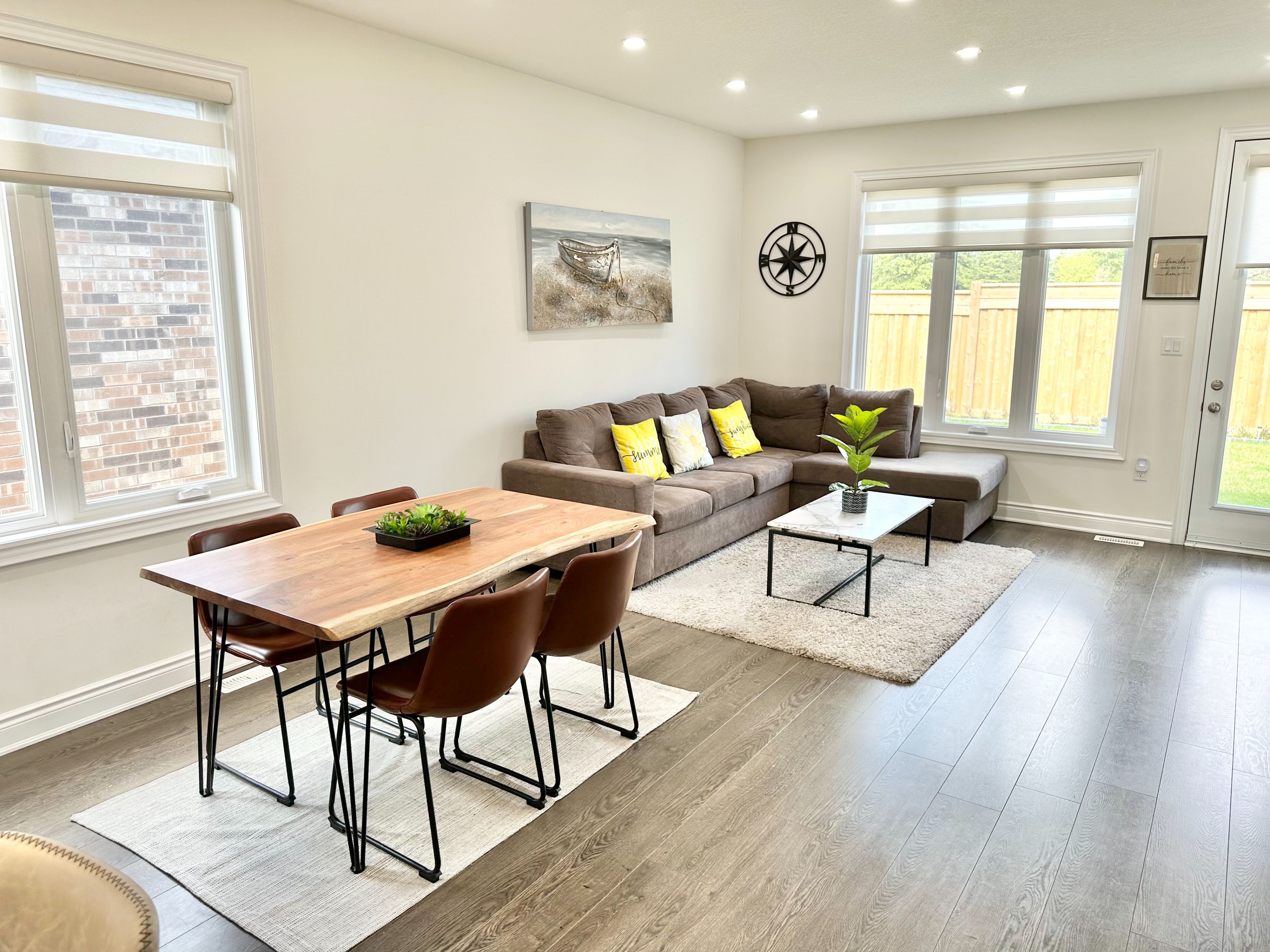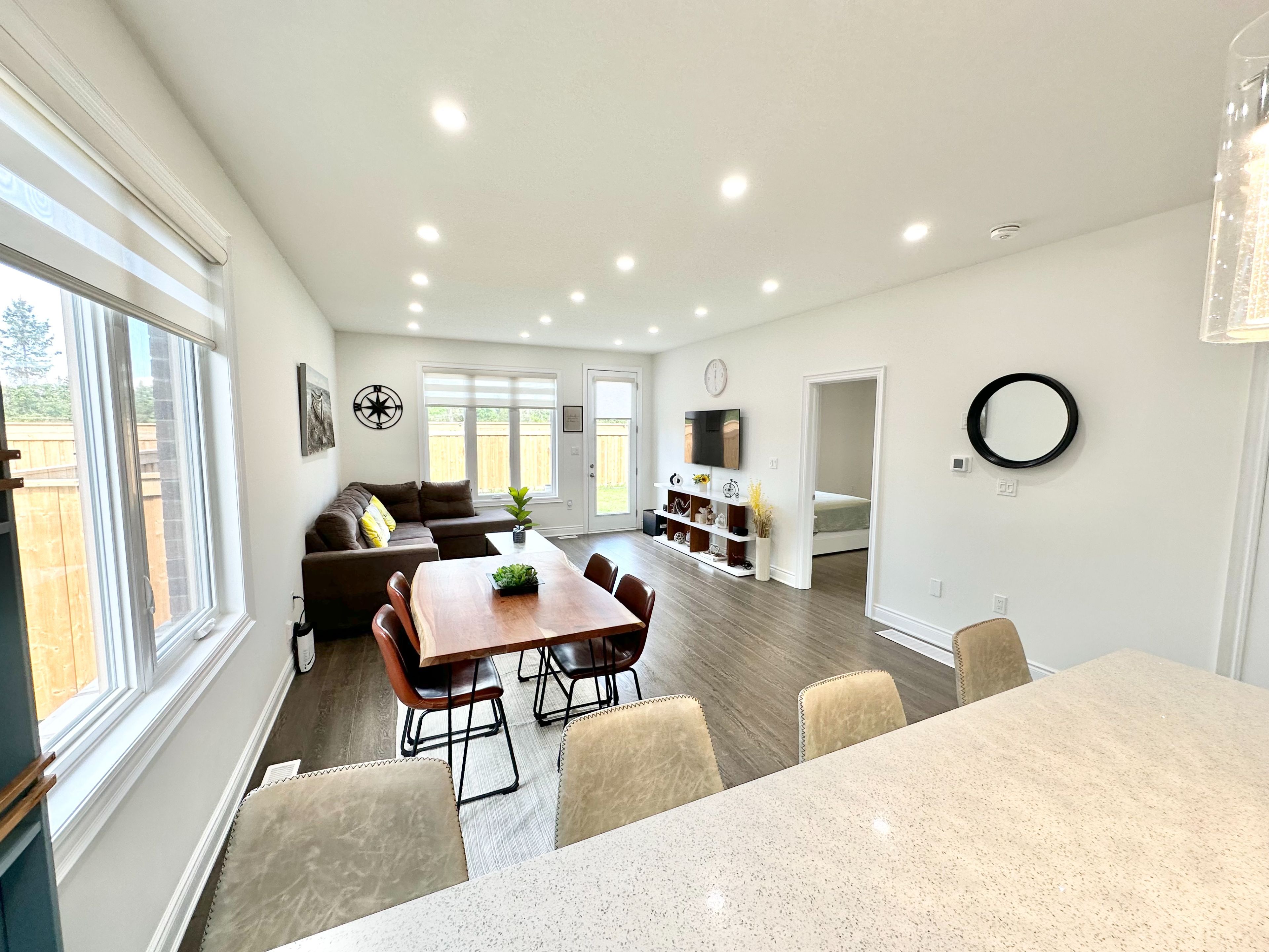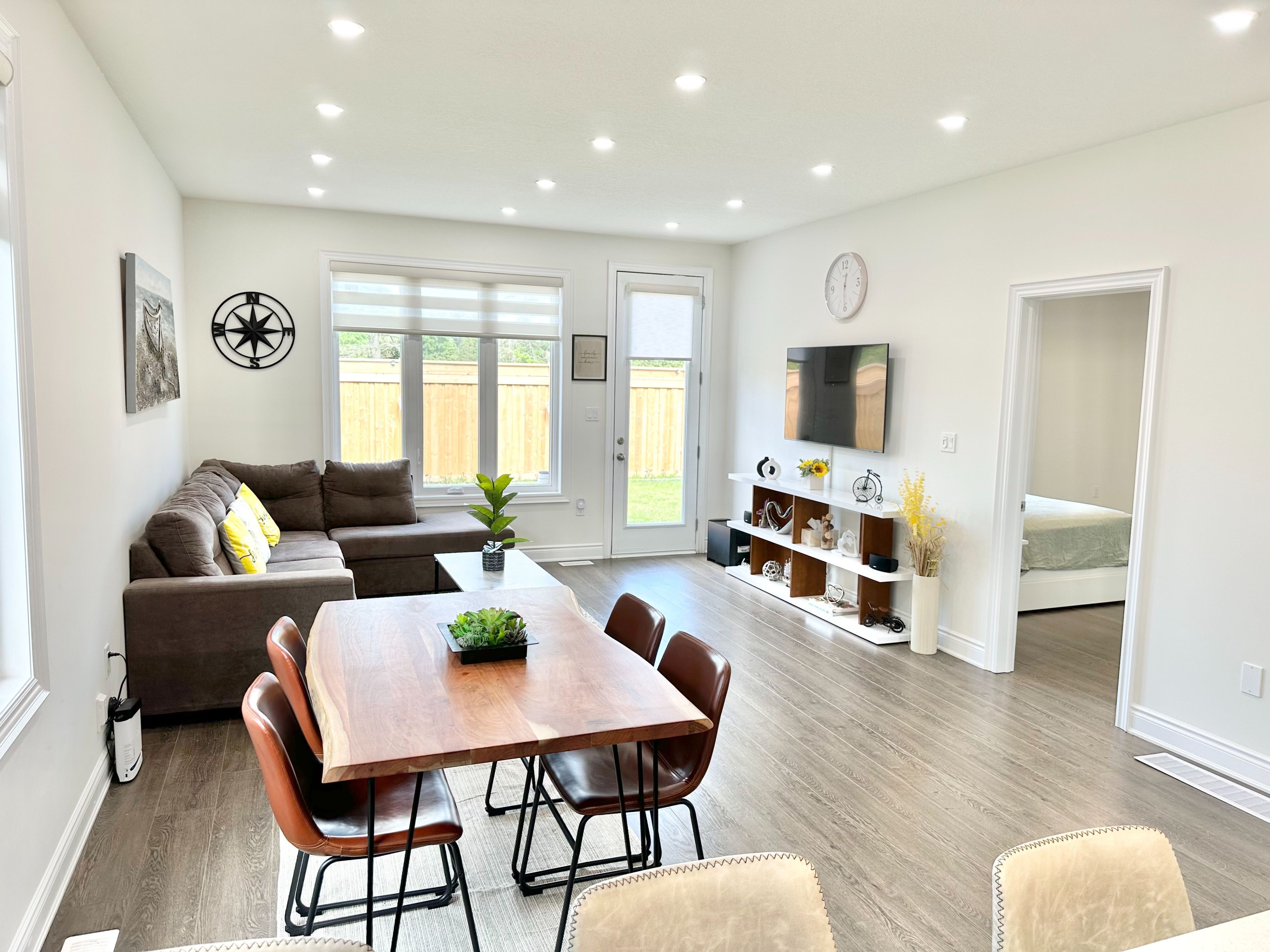 • Large living area filled with natural light and access to the backyard.