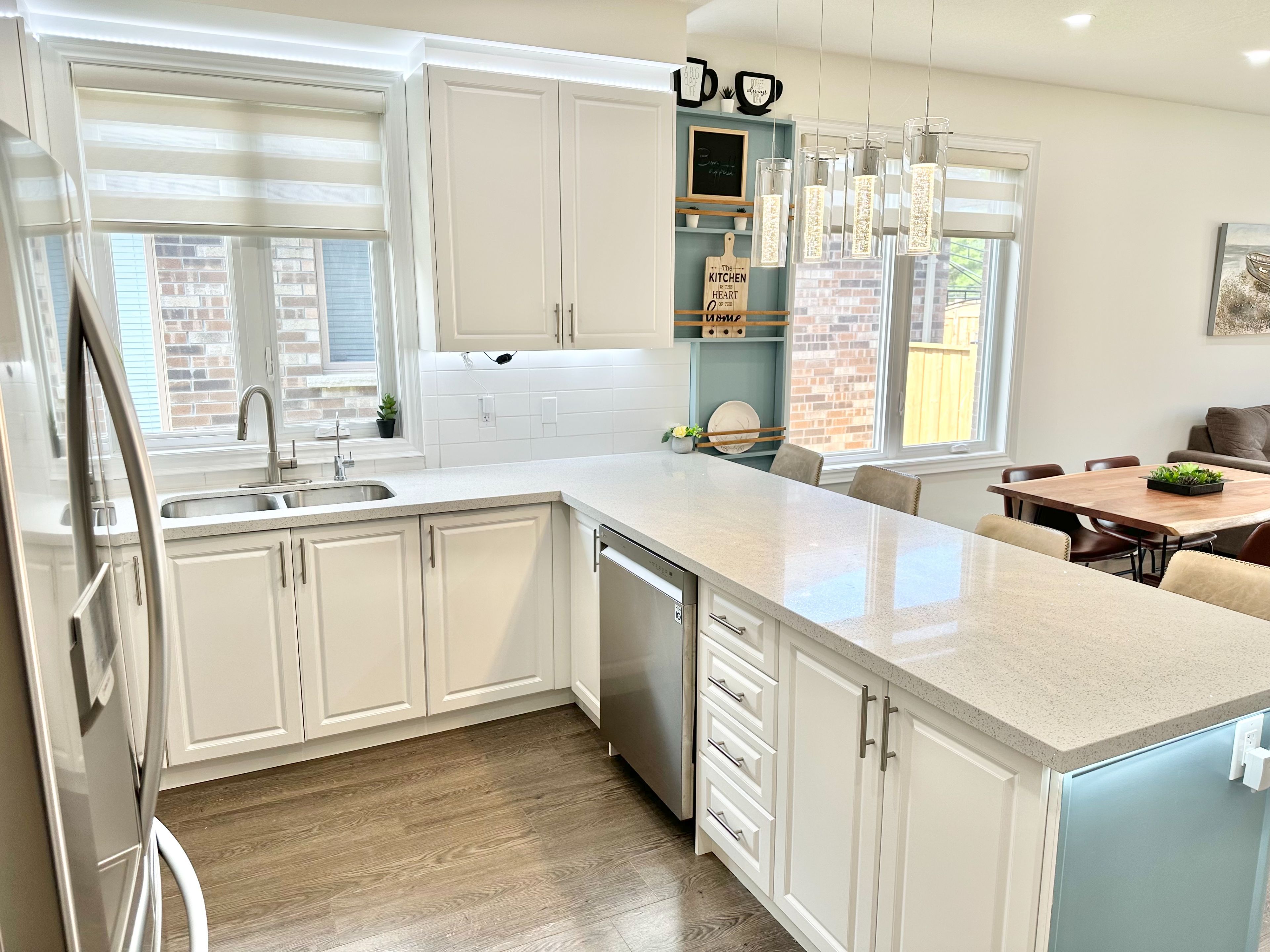 • Modern detached bungalow with 9-ft ceilings and open concept layout.