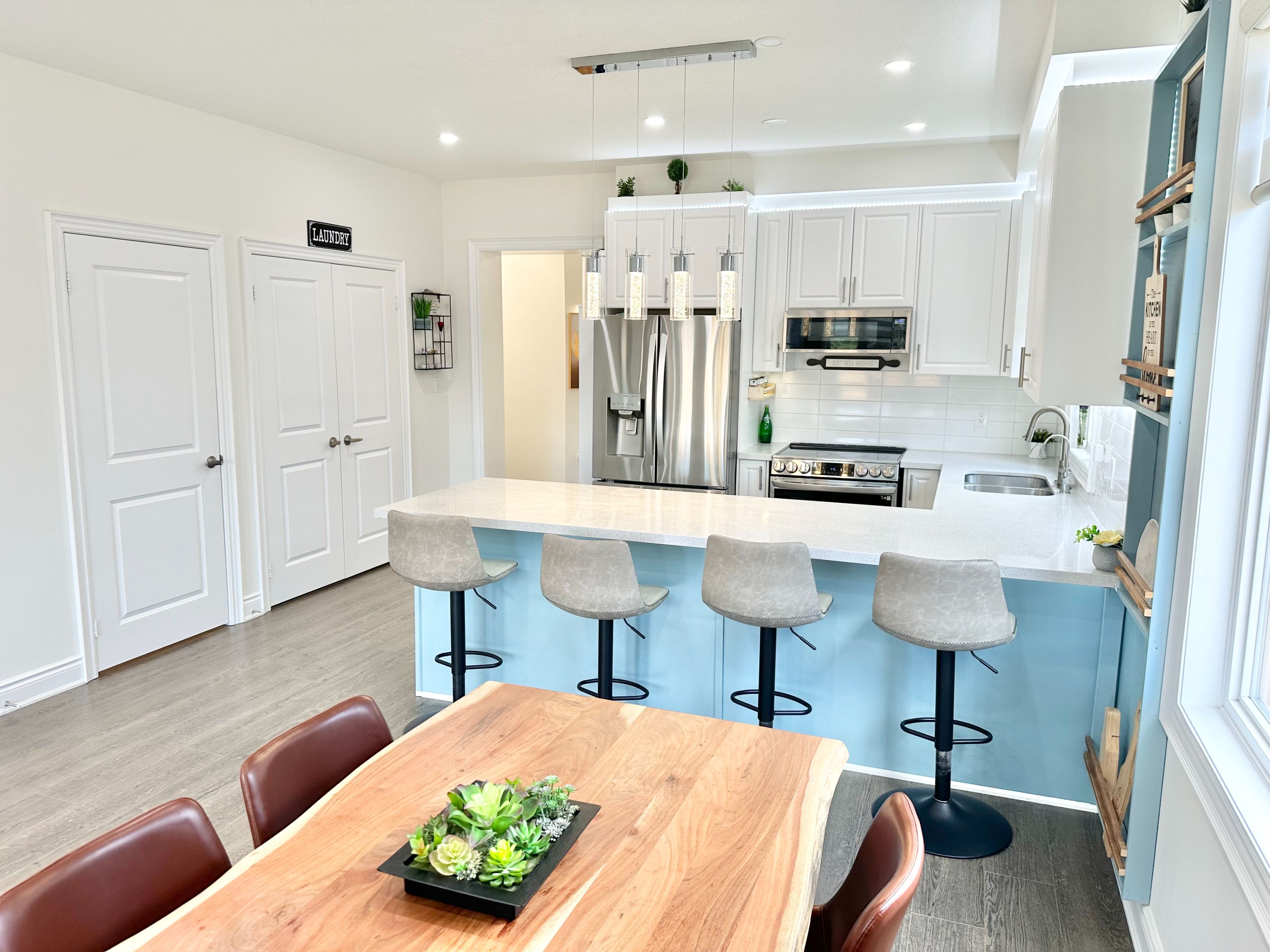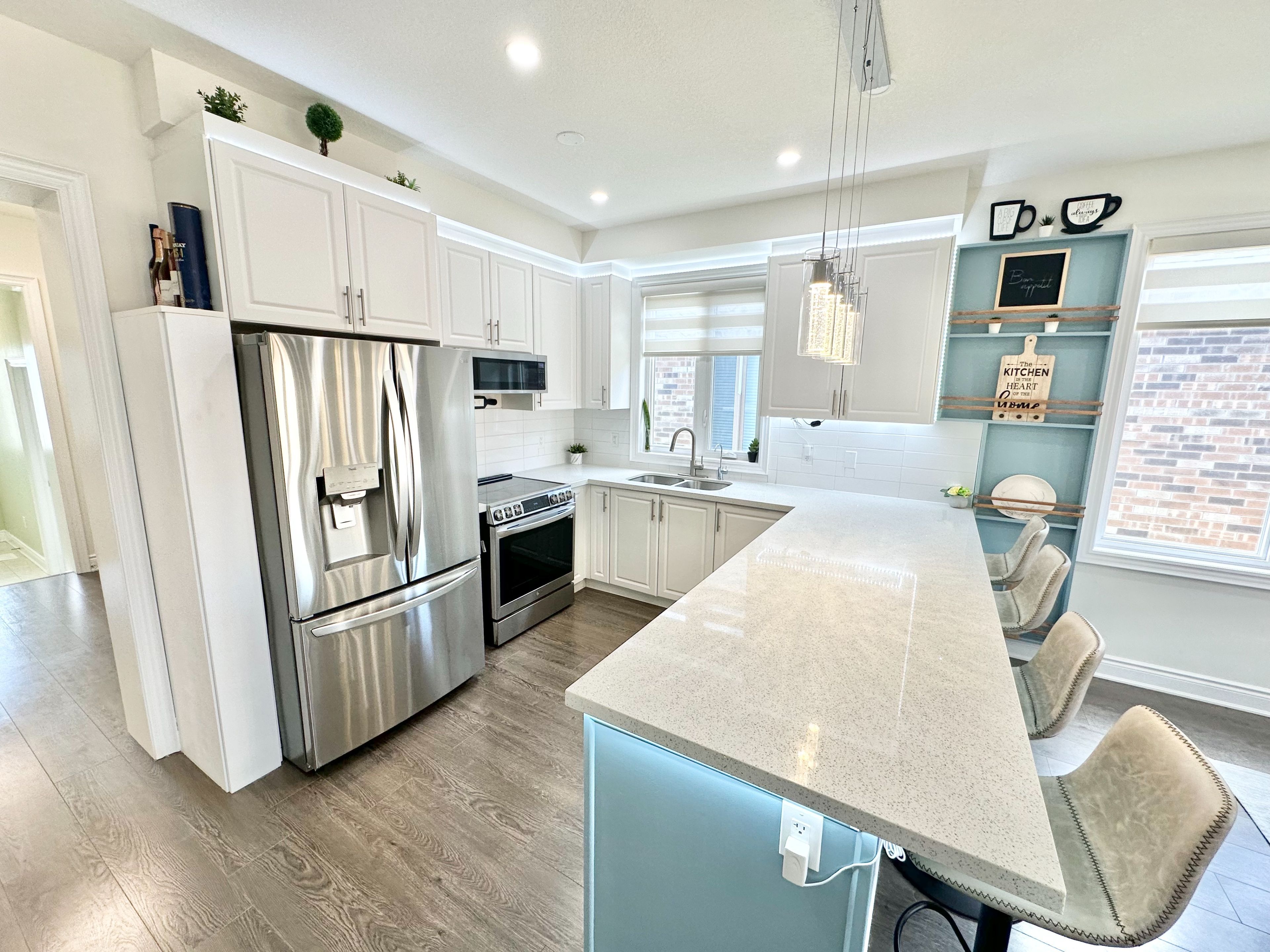 • Spacious kitchen featuring quartz counters and stainless steel appliances.