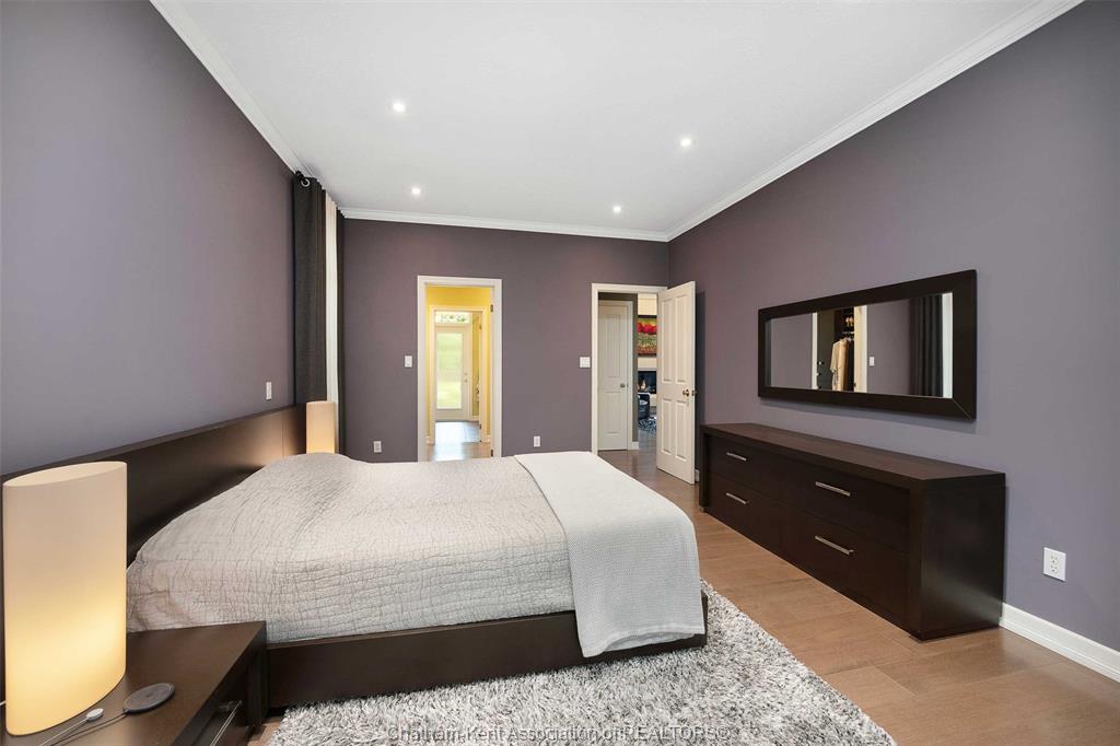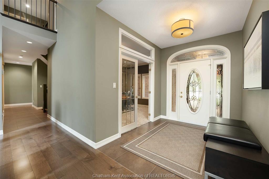 Welcome to a custom built dream home on the south side of chatham. Every square inch of this stunning home has been thoughtfully and expertly curated for both aesthetic form and livable function from a 24' clerestory with transom windows upon entry to imported italian porcelain tiling and ornamentally decorated fireplaces. With 4 plus 2 bedrooms, 3 full baths and a lower level fully renovated- not only is there space for the whole family but the added potential of multigenerational living. A spacious primary bedroom with a large accompanying walk-in and 4 piece ensuite leading out to a finely manicured backyard will have you feeling like you've stepped into a luxury hotel. A landscaped yard of intentionally positioned trees from the carolinian forest carry through to the interiors with grand oak multilevel staircases and maple cabinets that boast blum operating systems – light touch at the bottom. A home gym, hobby room and surround sound will keep you well entertained indoors, and the privacy of the lush, foliage filled backyard will provide the perfect escape when you crave peace and tranquility. This home has all you've been searching for... And more!!!!! Set up a showing today!!