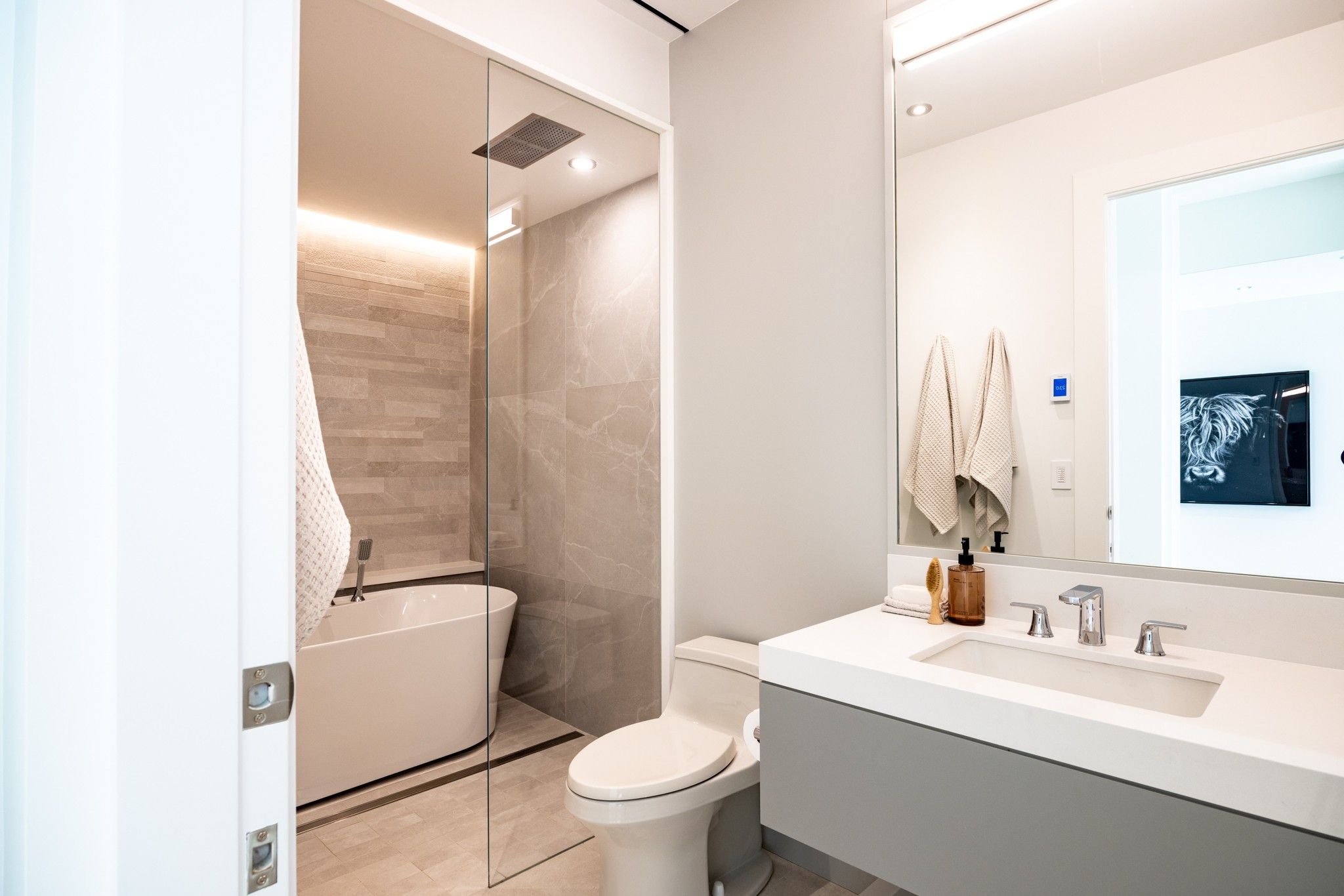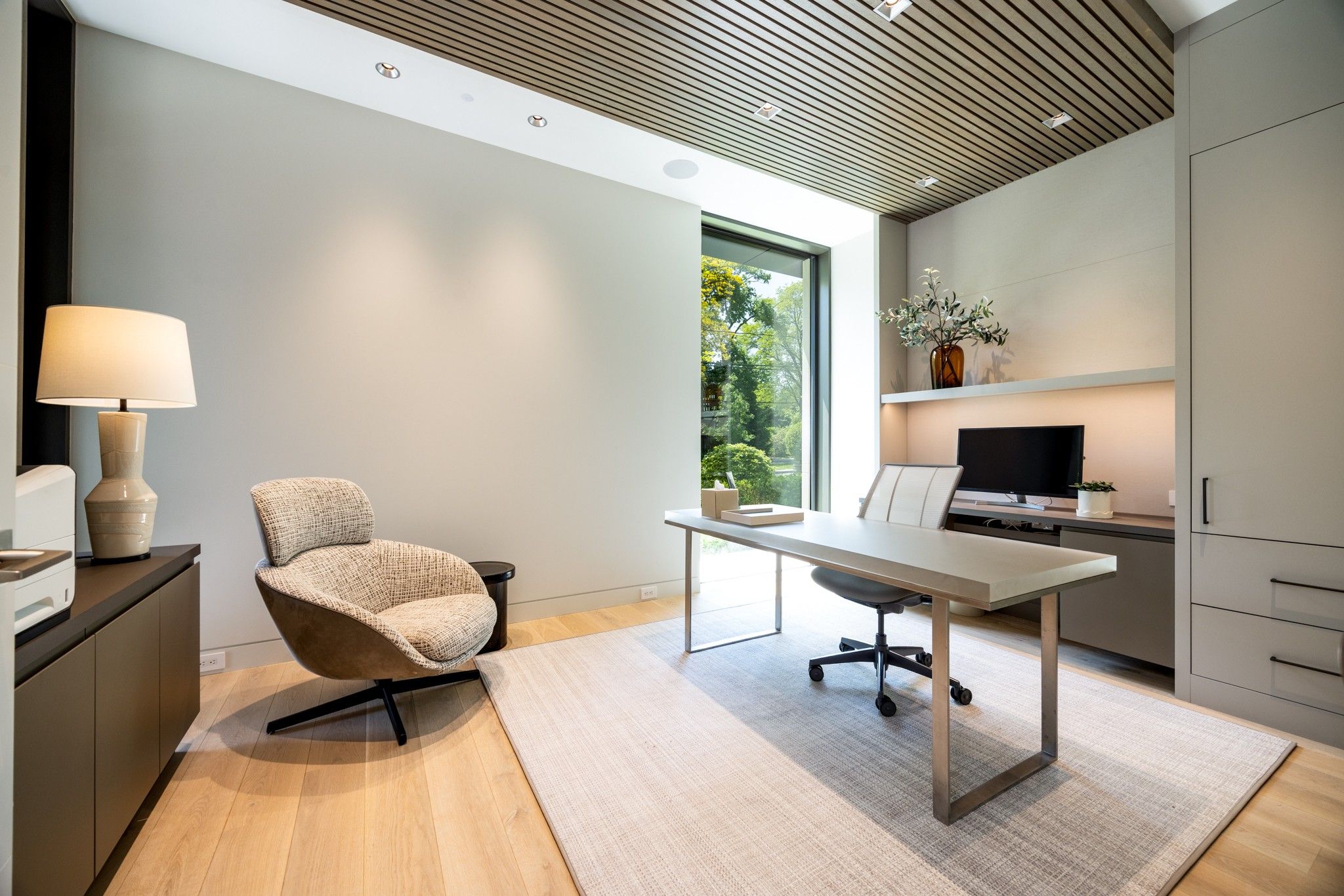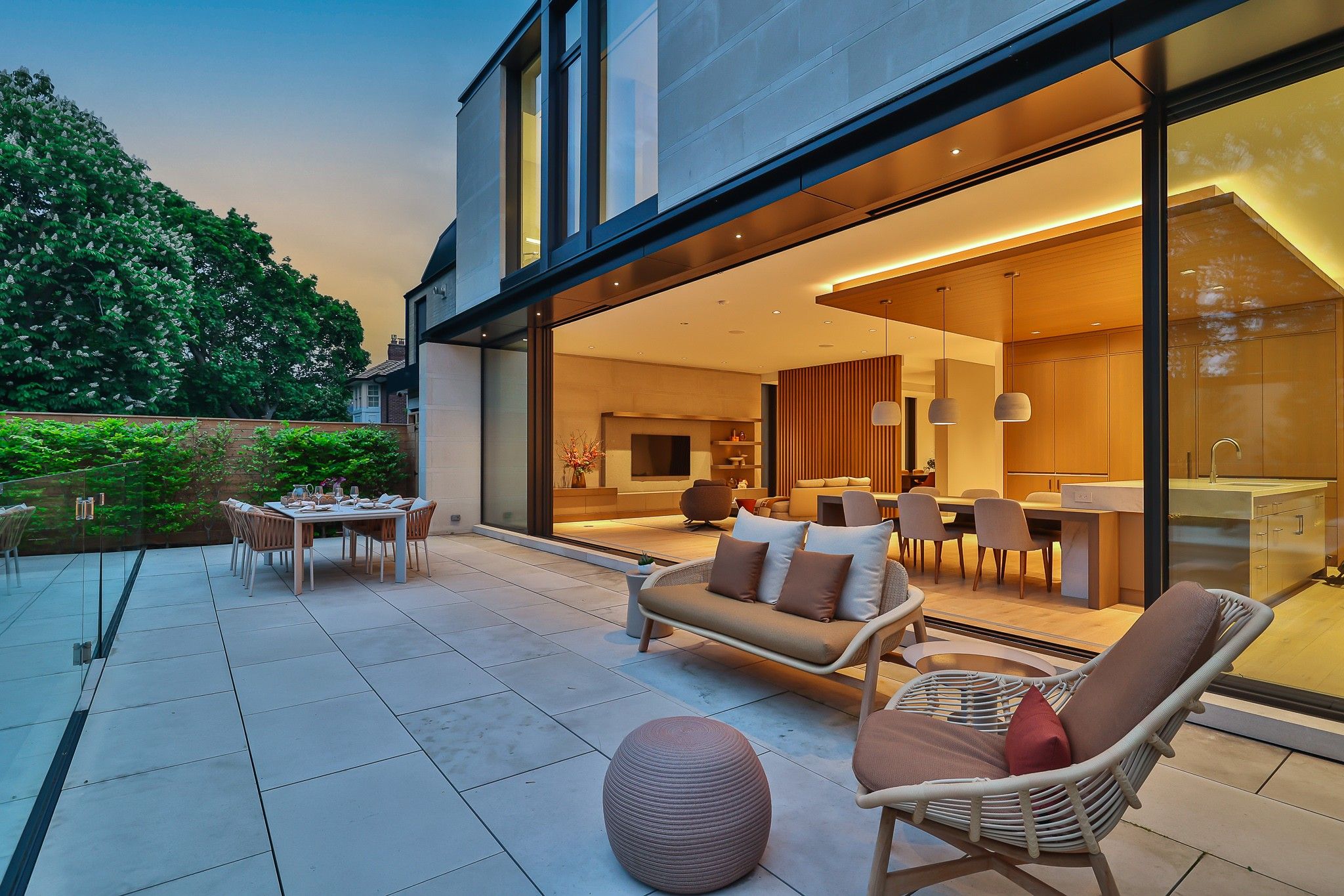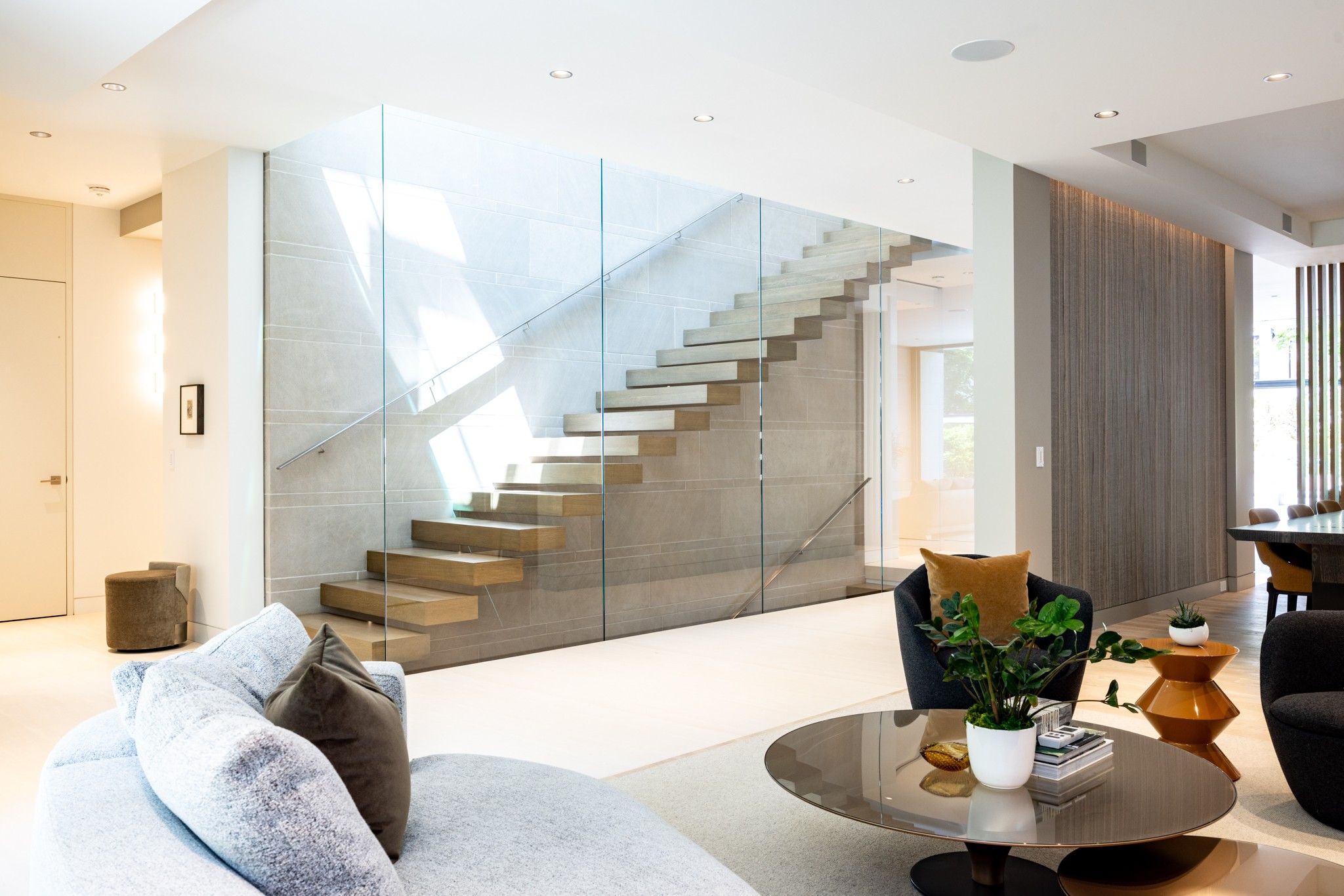 Infinity house is a masterclass in contemporary architecture - custom-built with state-of-the-art construction techniques and details to deliver a true high-performance house. This luxury home, with 4+1 bedrooms & 8 bathrooms (7,655 sf in total), offers the discerning buyer meticulously conceived interiors that harmonize natural materials with modern elements for the utmost in refined living. This coveted north toronto location, with its unique blvd & mature tree canopy, is within walking distance to yonge lawrence village & the greens of rosedale golf club. Handcrafted bronze panels fronting the house signal a sublime presence on the street. The entry gallery captures the eye with a stunning living room fireplace with marble slab surround & stairs floating between soaring glass panels & a limestone wall - a true feat of engineering. Reminiscent of the exterior cladding & projecting toward the sky, this imposing feature wall intentionally serves as a central visual anchor. The optimal interior layout flows effortlessly to the professionally designed exteriors through a one-of-a-kind nanawall of sleek glass panels, welcoming an abundance of natural light. The open concept makes clever use of a floating slat wall to create a sense of division for the dining and living rooms without compromising the bright, airy feel. The family room & adjoining chef's kitchen with pantry & servery is the hub of the home overlooking the backyard oasis with heated pool, terraces & gardens. A study, two powder rooms & a mudroom complete the main level. An elevator opens onto a light-filled 2nd floor, illuminated by custom architectural glazing & leads to 4 bedrooms, including a luxurious primary suite, 4 bathrooms & a well-appointed laundry room. An expansive lower level includes a media/recreation room, custom bar, wine cellar, exercise room with spa steam bath, nanny suite with 3-pc & a 2nd laundry room. Extras: radiant floors, elevator, snowmelt, 2 car heated garage w/lower storage.