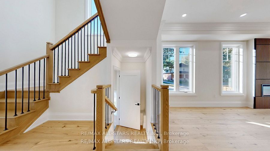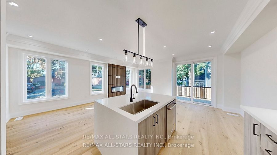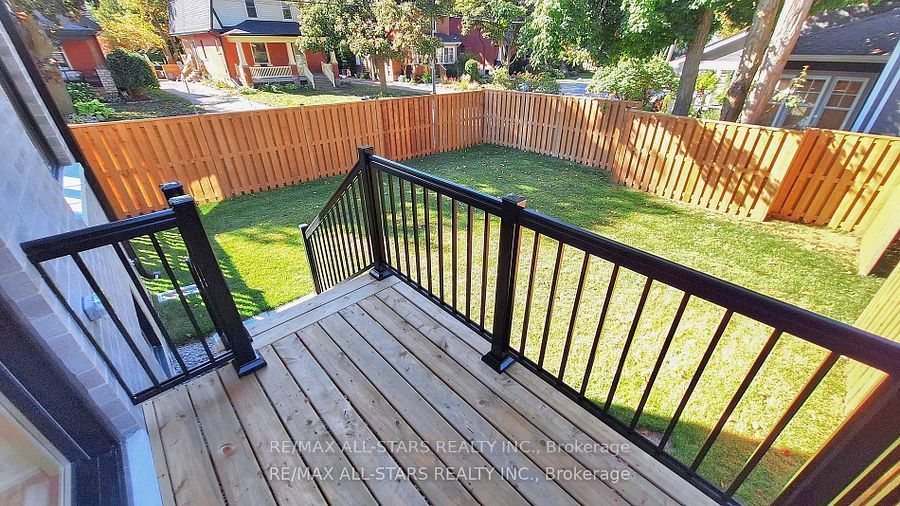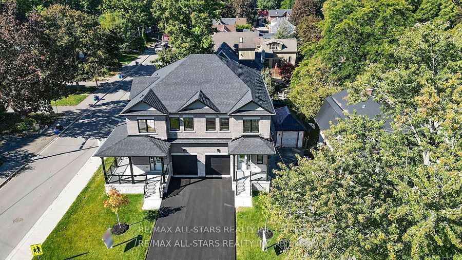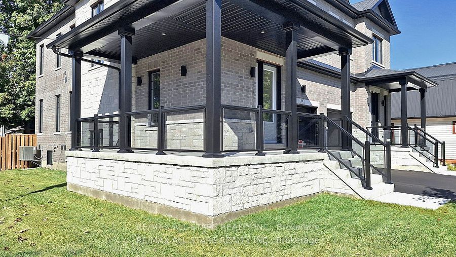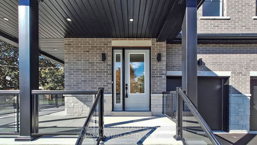 Brand new and beautifully finished, this custom-built freehold semi-detached home by highly ranked tarion builder coral creek homes offers approximately 2,400 sq ft of thoughtfully designed living space, including a fully finished basement with above-grade windows, quality carpet and underpad, spacious recreation area, 3-piece bath and ample storage. The maintenance-free brick and stone exterior is complemented by a paved driveway, sodded yard and 6' pressure-treated rear privacy fence. Enjoy the wraparound front porch with tinted glass railing or entertain from the kitchen walkout to the rear deck with direct bbq gas line. Inside, 9' smooth ceilings on the main and upper floors, 7 3/4" engineered hardwood and large-format porcelain tile create a refined feel throughout. The upgraded trim package features 7" baseboards, 3" casings, 7' doors and impressive 7" crown molding on the main floor, upper hall and primary bedroom. Oak stairs with black steel pickets and stained wood caps add architectural flair, while matte black hardware, upgraded black fixtures and led pot lights enhance the modern aesthetic. The family room showcases a dramatic feature wall with 42" electric fireplace and tv wiring. Upstairs offers three bedrooms including a stunning primary suite with hardwood, large corner windows, walk-in closet with professional organizer and luxurious 5-piece ensuite. The second-floor laundry includes lg side-by-side washer and dryer, quartz folding counter, upper cabinetry, stainless sink and porcelain tile. The designer kitchen overlooks the family and dining areas and features a quartz waterfall island with undermount sink, subway tile backsplash, valence lighting, soft-close cabinetry and quality kitchenaid appliances. Ideally located close to schools, parks, uxpool, the curling club and downtown shopping, and backed by a 7-year tarion new home warranty, this home delivers style, comfort and peace of mind.