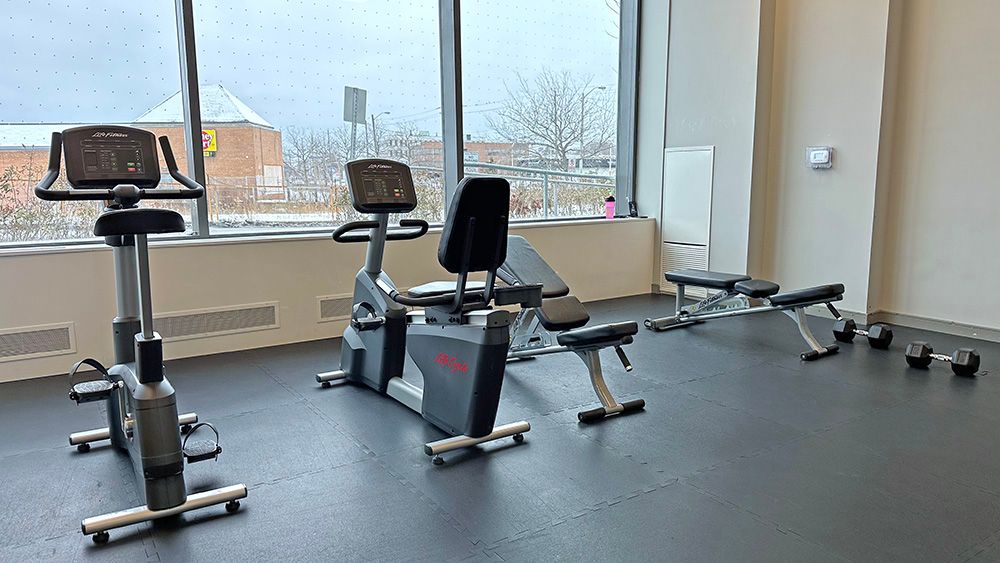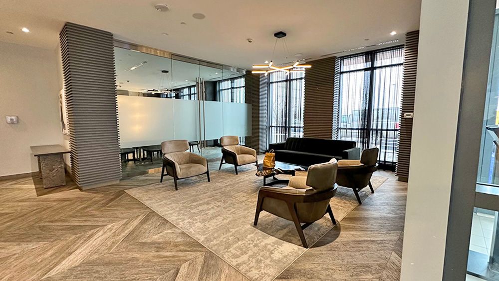 • Access to rooftop terrace, fitness center, and party room.