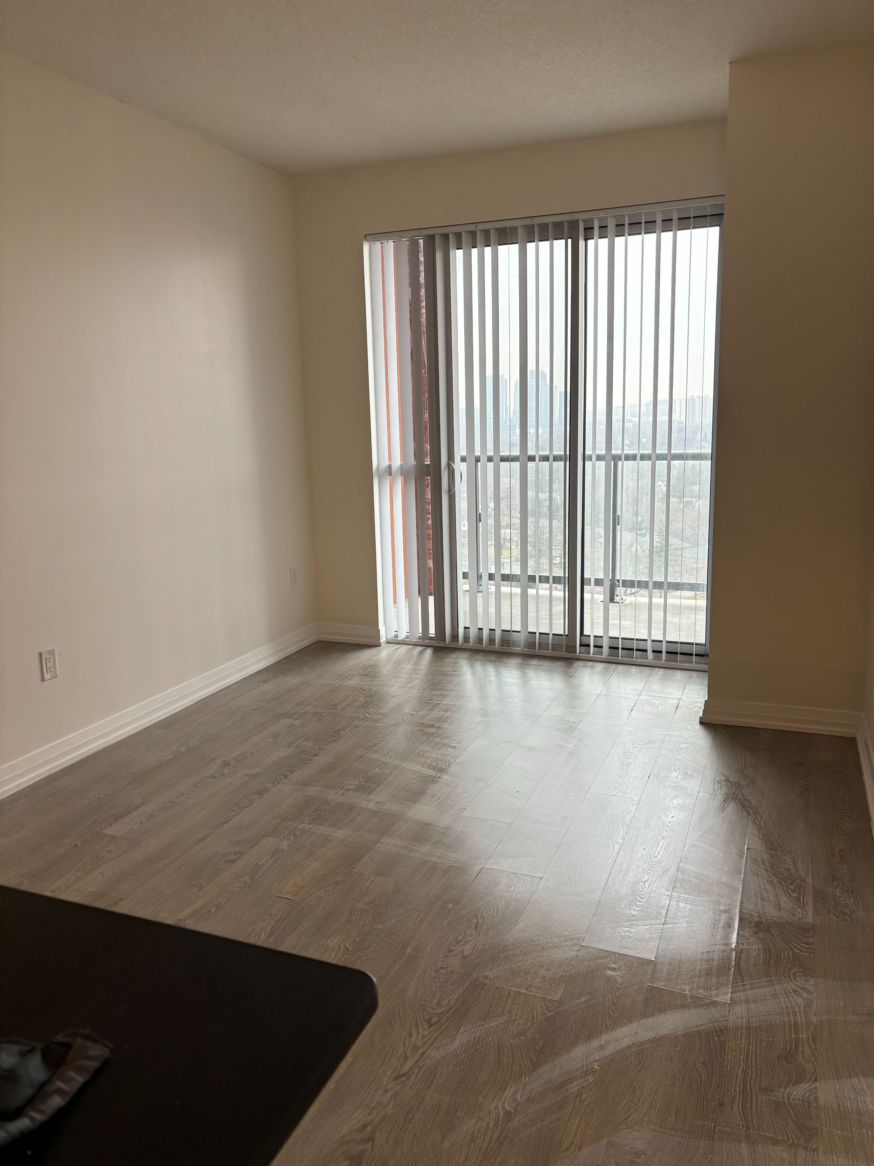 • 1 bedroom plus den condo with a balcony and laminate flooring.