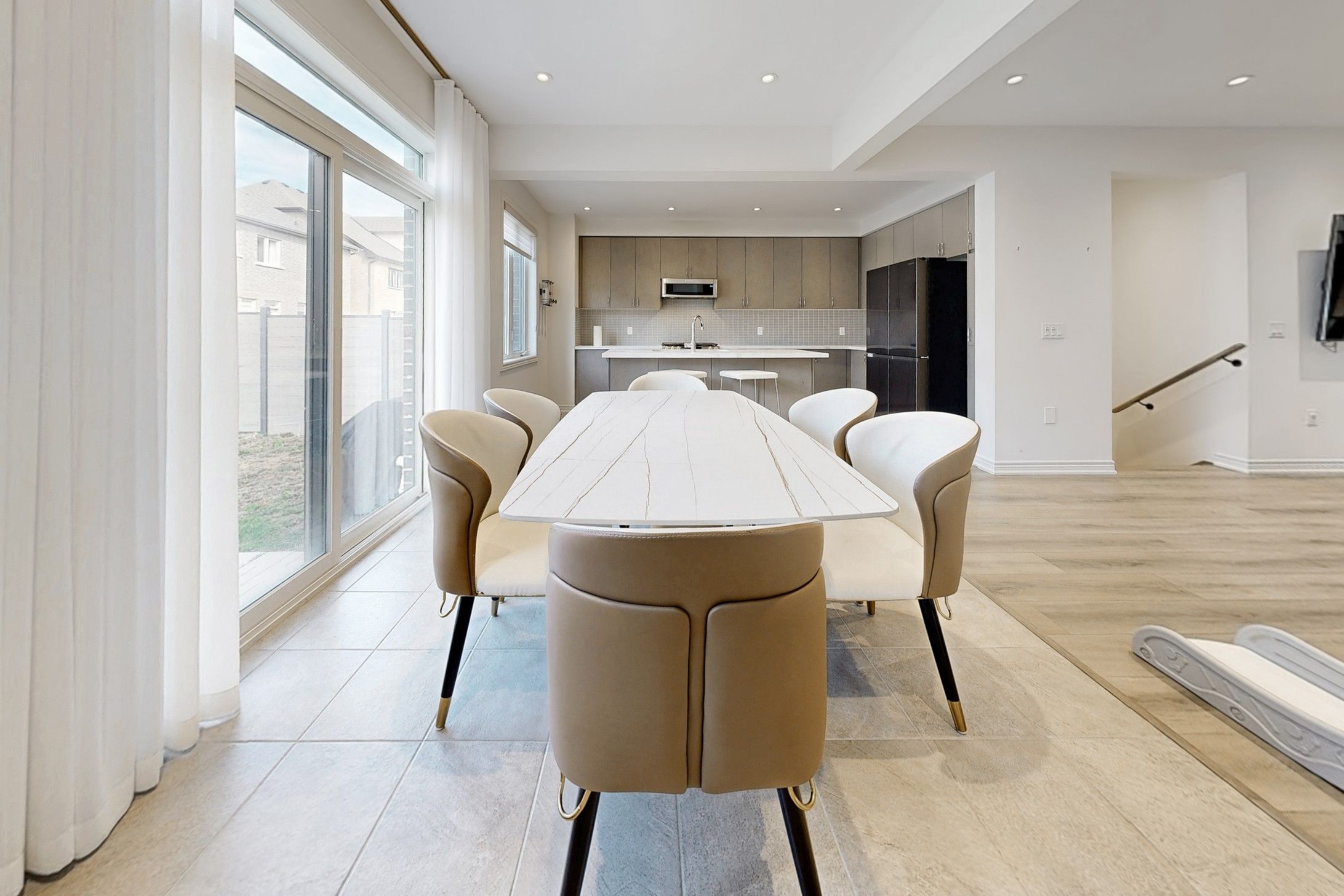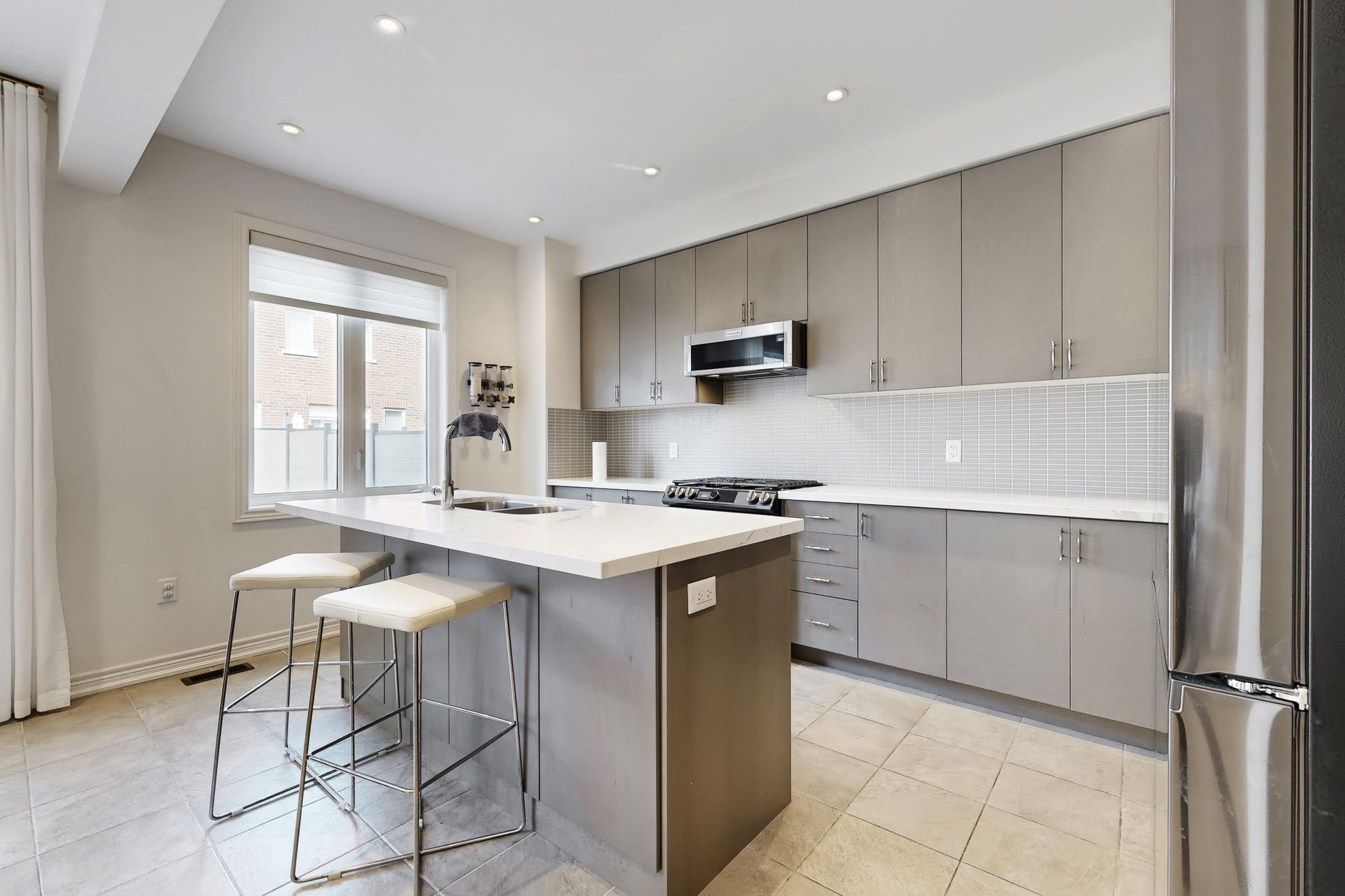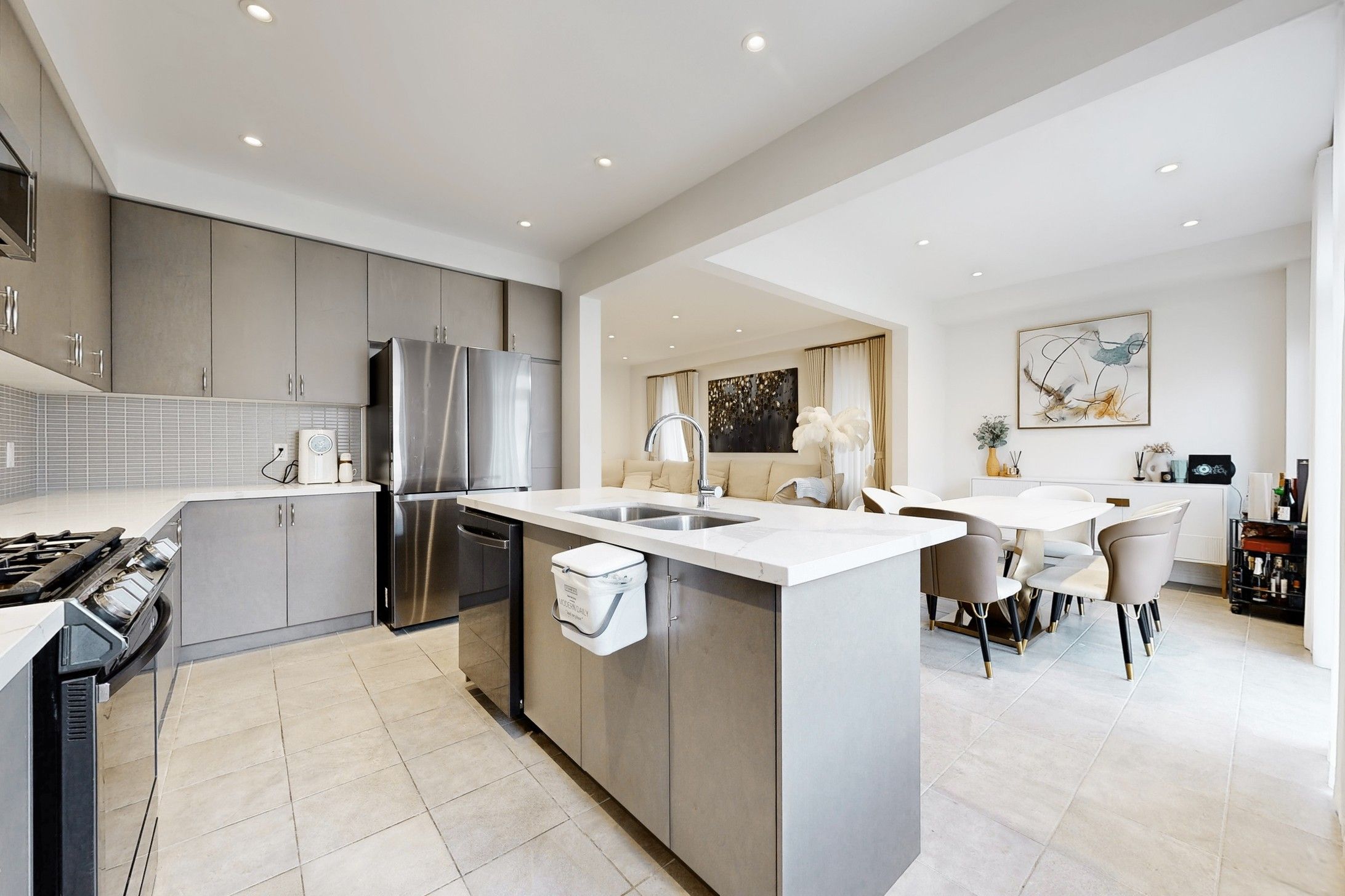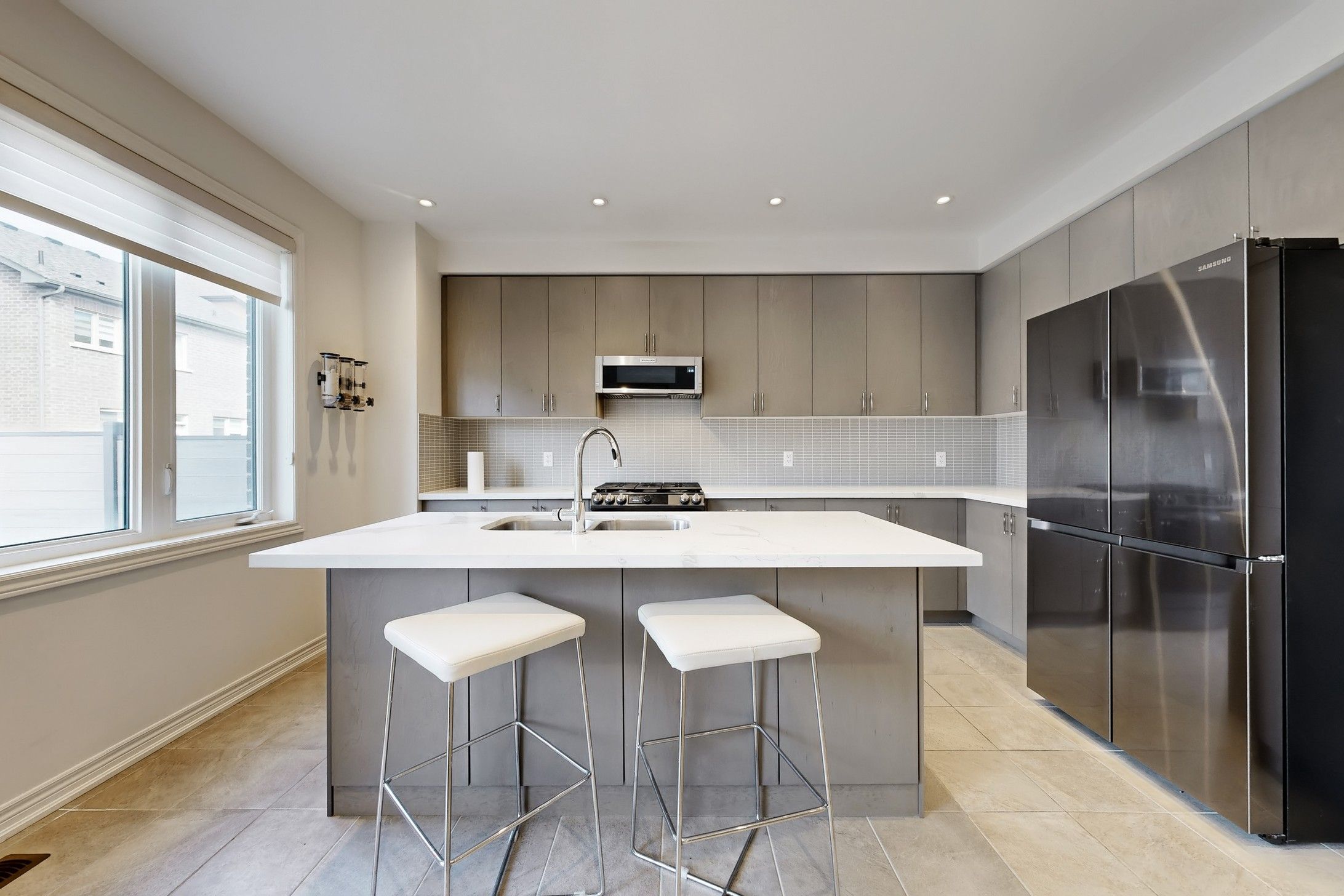 • Spacious kitchen with quartz countertops and upgraded appliances.
