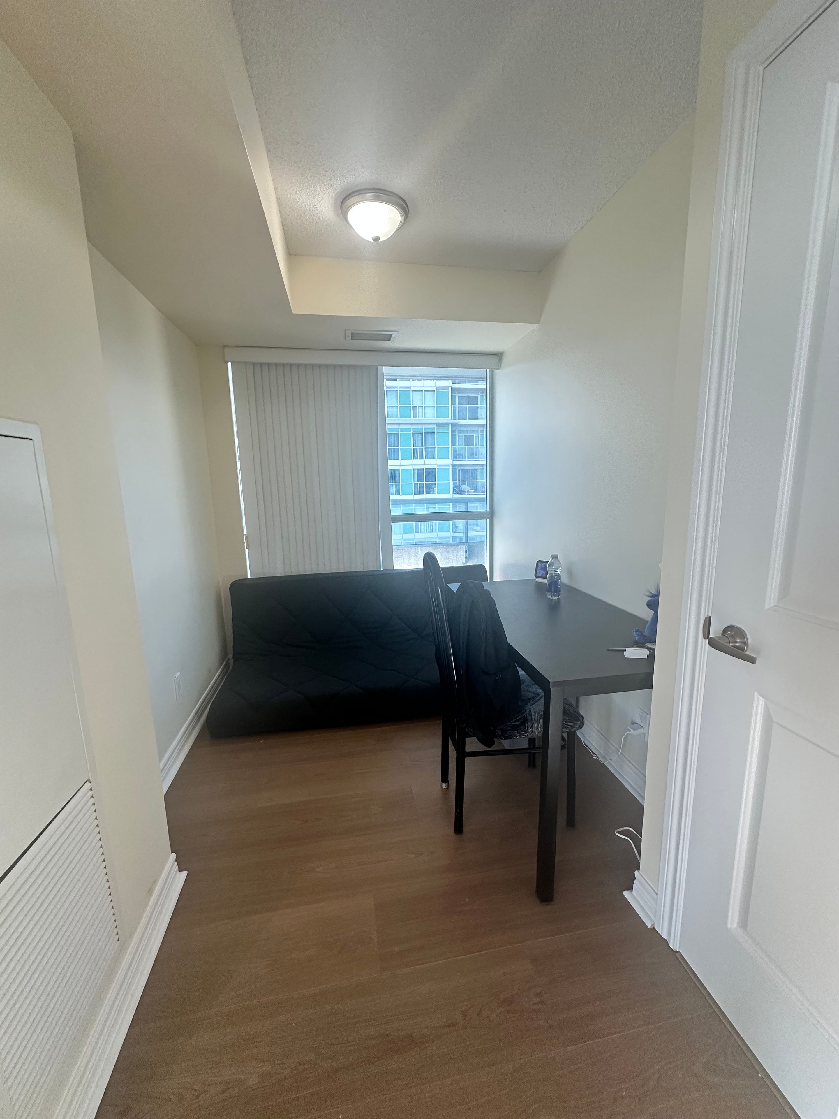 Bright and spacious 1 bedroom + den corner unit featuring 1 parking space and 1 locker. The large den with a window is versatile and spacious enough to accommodate a double bed, ideal as a second bedroom or home office. Enjoy a modern open-concept kitchen, generous living space, and abundant natural light throughout the unit. Conveniently located steps to scarborough town centre, ttc, go bus, ymca, highway 401, and more, offering easy access to shopping, dining, and transit.