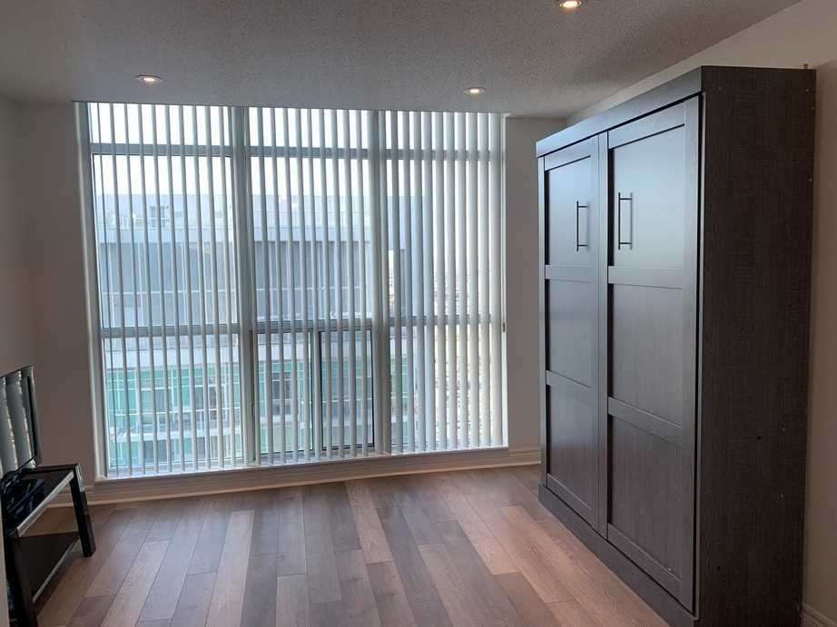Monarch luxury studio unit 3907 at prime location - suitable for a bachelor, a couple, or two students. Spectacular view of the city and skyline. Bright, sun-filled, functional open concept layout with controllable ceiling pot lights and space saver murphy bed (can be taken out if not wanted). Modern kitchen with stainless steel appliances. Steps to scarborough town centre, passport office, ymca, centennial college, public library and ttc station. Heating, cac, cold/hot water, and 1 garage parking included. Exercise room, guest suites, visitors' parking, visitors lounge, party room, recreation room, meeting room, media room, 24-hour concierge security, and enter phone system available in the building. Very cheap ($25) internet (super fibre) also available in the building.