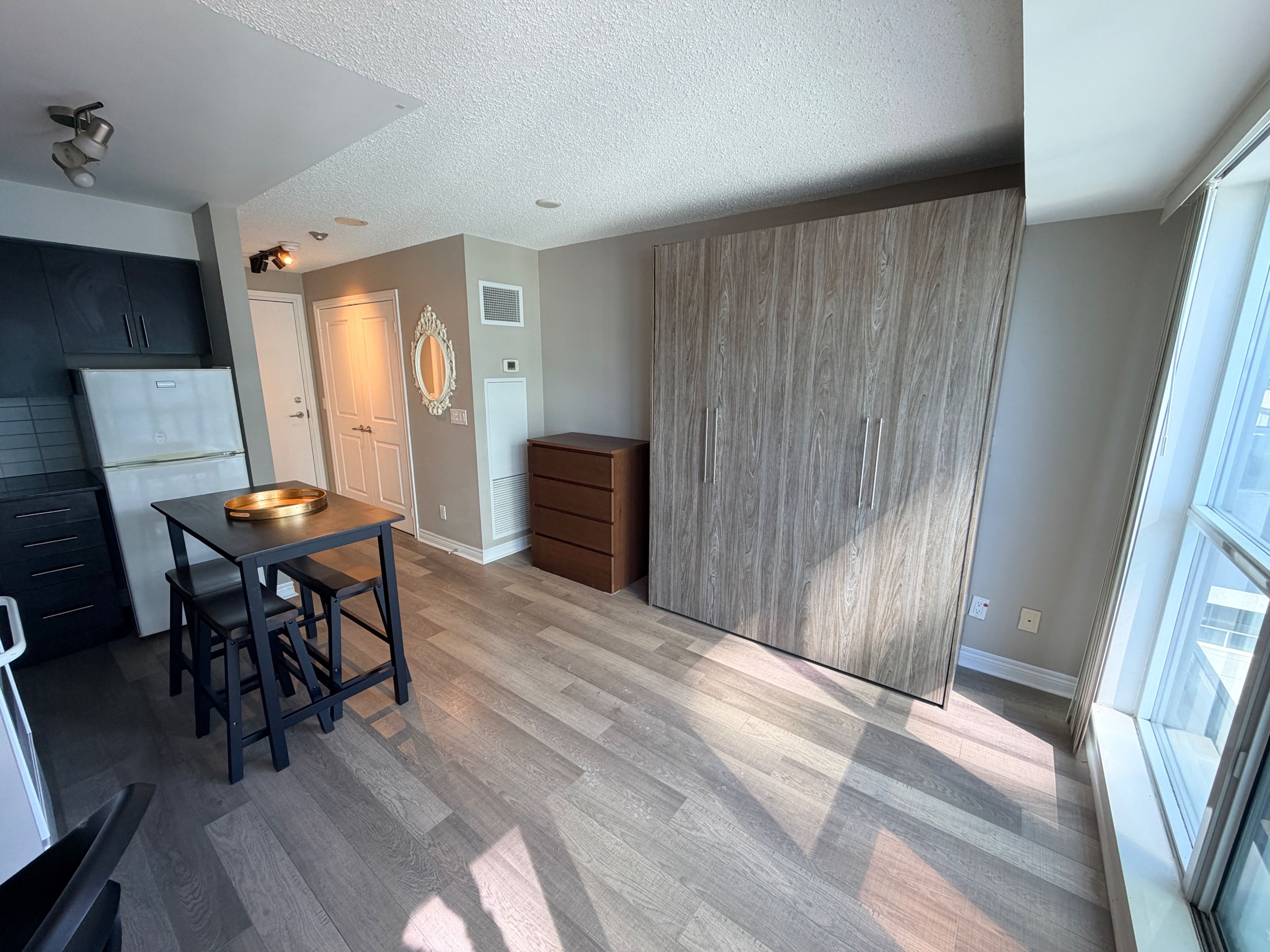 One of the larger studio layouts in the building, featuring a functional open-concept designand a murphy bed to maximize space inside the unit. Quiet unit with north exposure, ideal forcomfortable everyday living. Steps to scarborough town centre, ymca, civic offices, library,and transit, with quick access to hwy 401. Well-managed building offering 24-hour concierge,fitness centre, party room, theatre room, and visitor parking. Perfect for young professionalsor students seeking convenience and value. Pets considered. Furniture negotiable. Immediateoccupancy available.