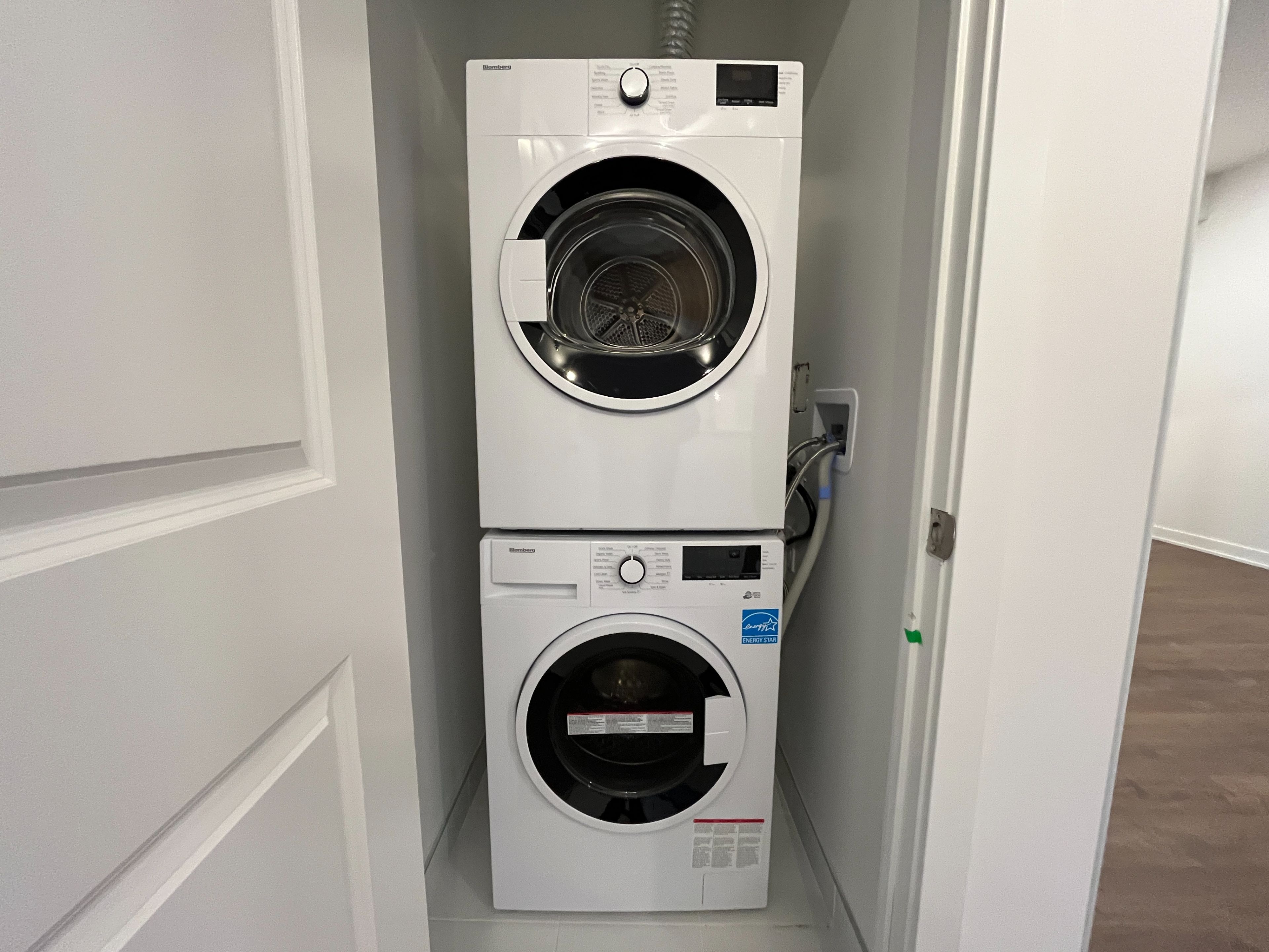 • Premium building amenities include fitness center, party room, and rooftop terrace.