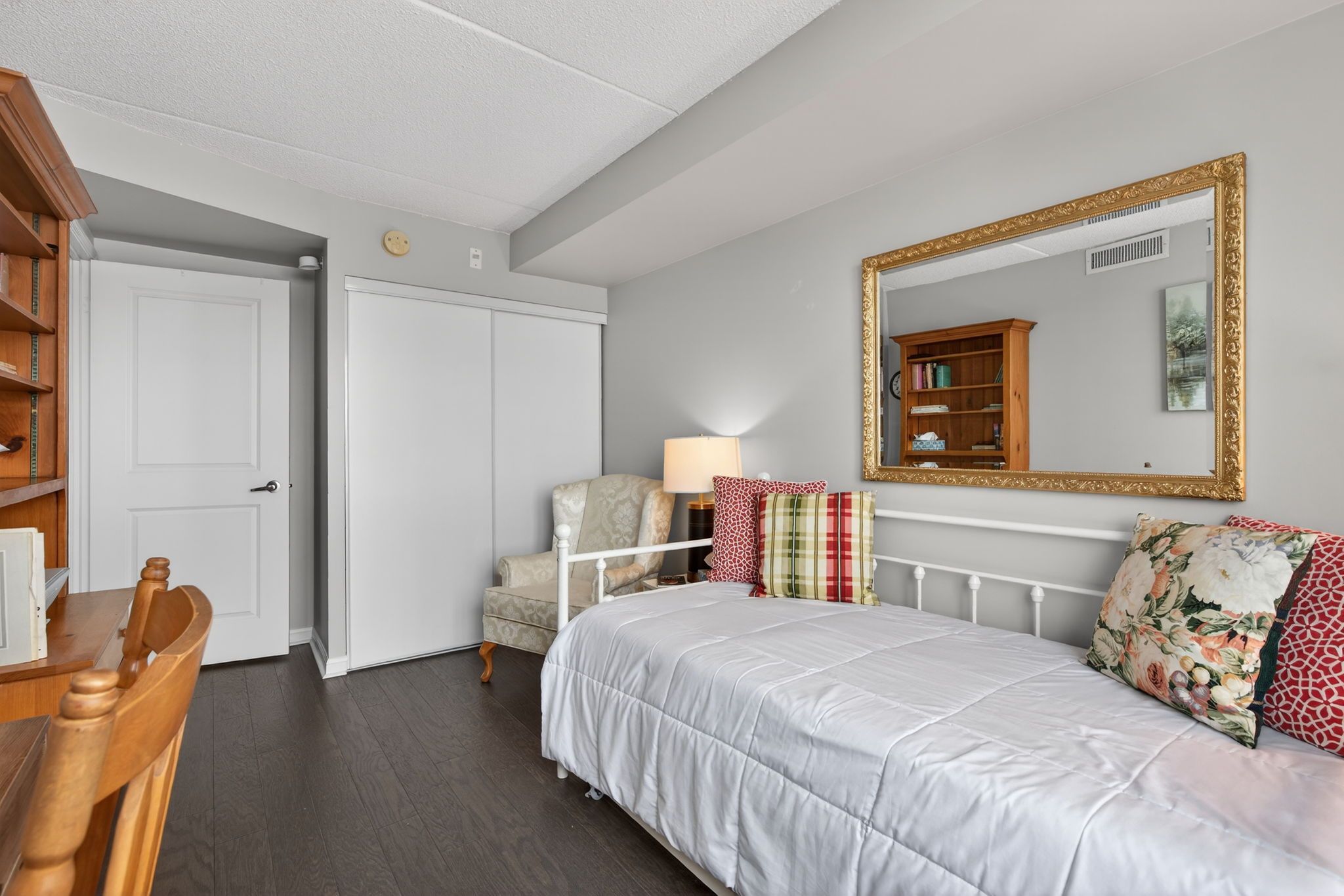 Welcome to rosedale village, brampton's prestigious, gated, adult lifestyle community designed for comfort, convenience and vibrant social living. This beautifully maintained third-floor apartment in the freemont building offers the perfect blend of elegance and low-maintenance living, ideal for those looking to simplify their life without compromise. The bright and spacious 790 sq. Ft. Suite features desirable western exposure, for stunning sunset views from your large private balcony, accessible from both the living room and primary bedroom. The thoughtfully designed layout offers two bedrooms, a shared four-piece bathroom, along with a welcoming combined living and dining area, perfect for entertaining or quiet evenings at home. The apartment showcases elegant, engineered hardwood flooring throughout, while the modern kitchen is equipped with granite countertops, quality wood cabinetry, stainless steel appliances and a convenient pantry for additional storage. Enjoy true worry-free living with maintenance fees that include snow removal, along with added convenience of underground parking, so you never have to clear snow from your vehicle, plus a private underground storage locker for seasonal items and extra belongings. Residents enjoy exclusive access to a private 9-hole golf course and clubhouse, featuring regular social events and community gatherings. Exceptional amenities include tennis and pickleball courts, lawn bowling, shuffleboard, scenic walking paths, a fitness centre and the peace of mind provided by gated entry with security guard. Experience the perfect balance of active adult living, community connection and carefree comfort in this sought-after adult lifestyle community.