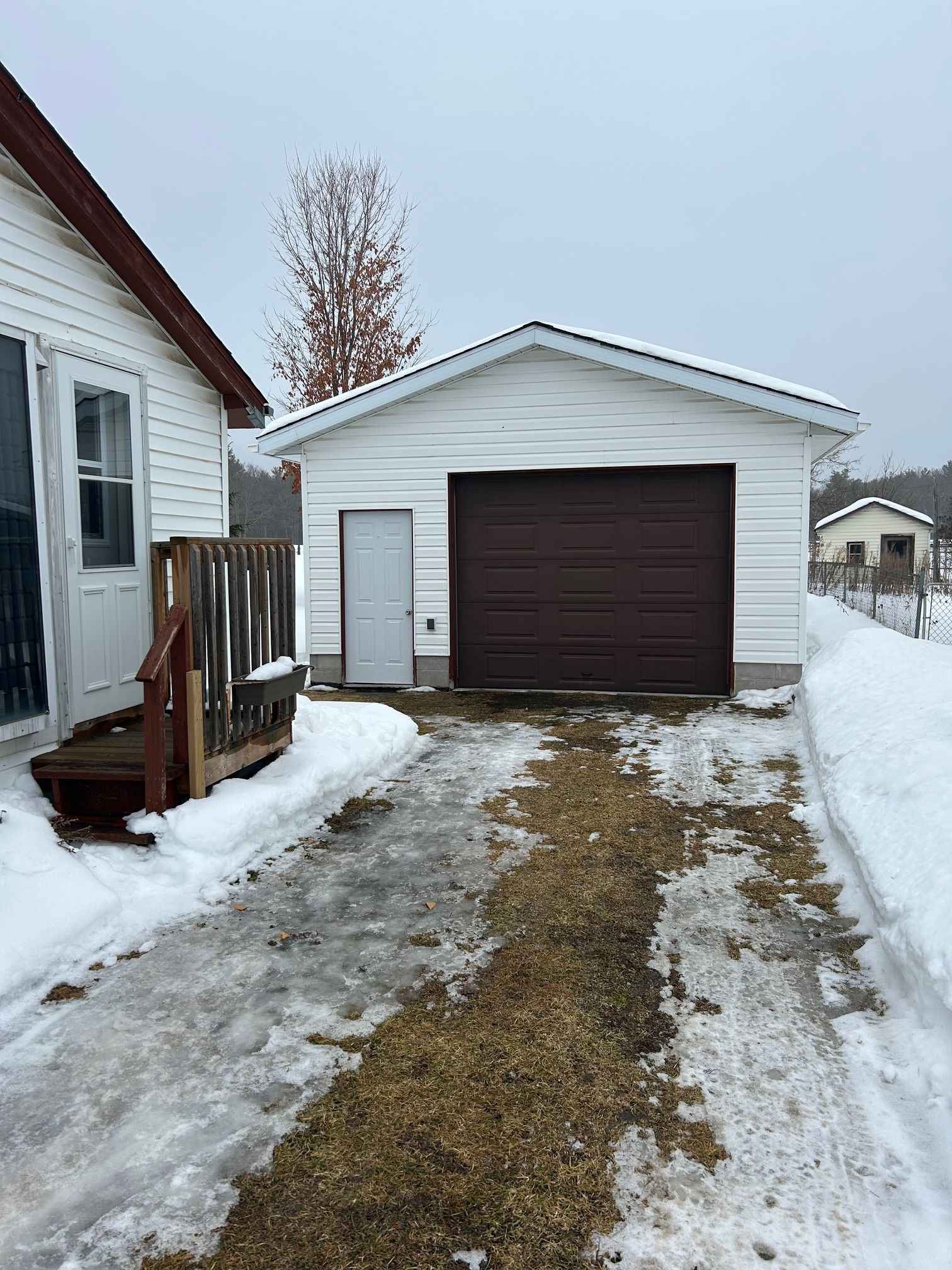 • Includes a single car garage and large shed.