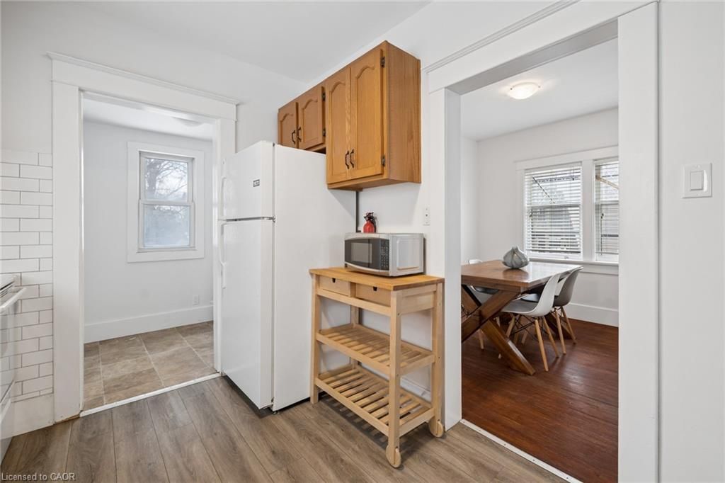 Welcome to this charming brick two-storey home located in one of downtown kitchener's most desirable neighbourhoods. This inviting single family home offers three bedrooms and two bathrooms, blending timeless character with comfortable living spaces. Inside, you'll find charming original details throughout, including classic hardware, wood flooring in select areas, and a beautiful clawfoot bathtub in the upper-level bathroom. The kitchen is complemented by a large pantry area just off the side, providing excellent additional storage and functionality. Step out onto the back balcony for a quiet retreat or enjoy your morning coffee in the private backyard surrounded by mature trees. The basement also features a versatile bonus room that could easily serve as a bedroom, home office, rec room, or play area depending on your needs. Additional highlights include a concrete driveway, metal roof, front porch and lovely curb appeal, all just steps from the vibrant shops, restaurants, and amenities that make downtown kitchener so special. A rare opportunity to own a character-filled home in a truly walkable and highly sought after location.
