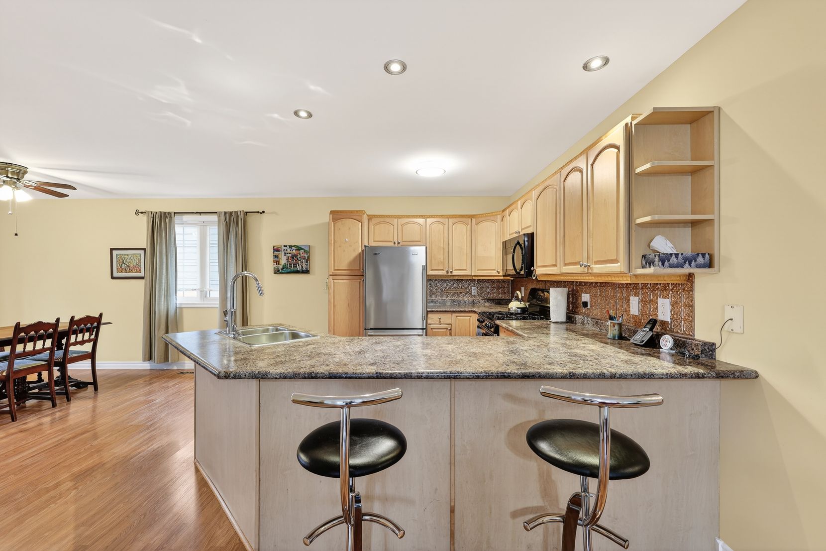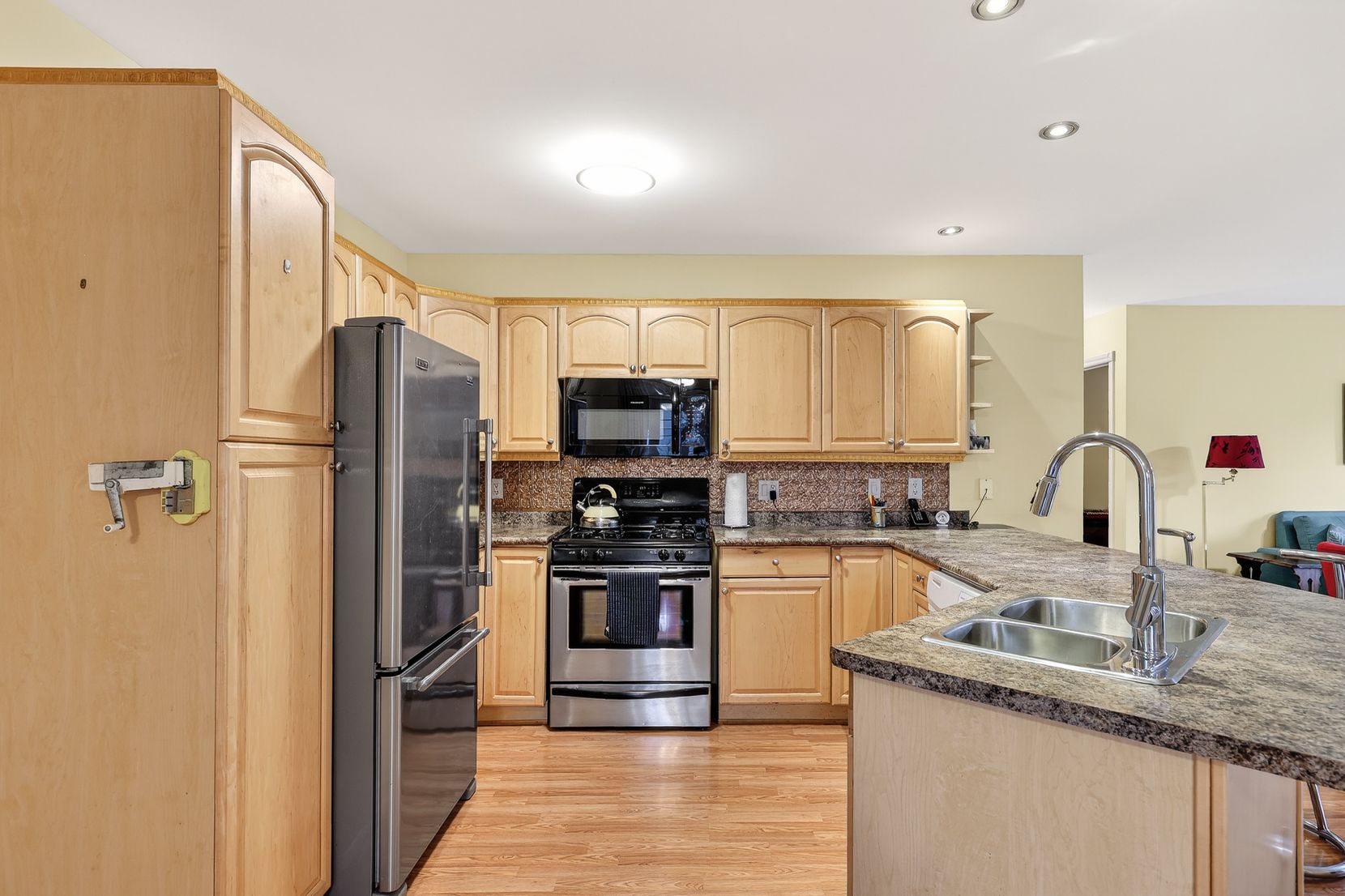 • Spacious kitchen with stainless steel appliances and large island for gatherings.