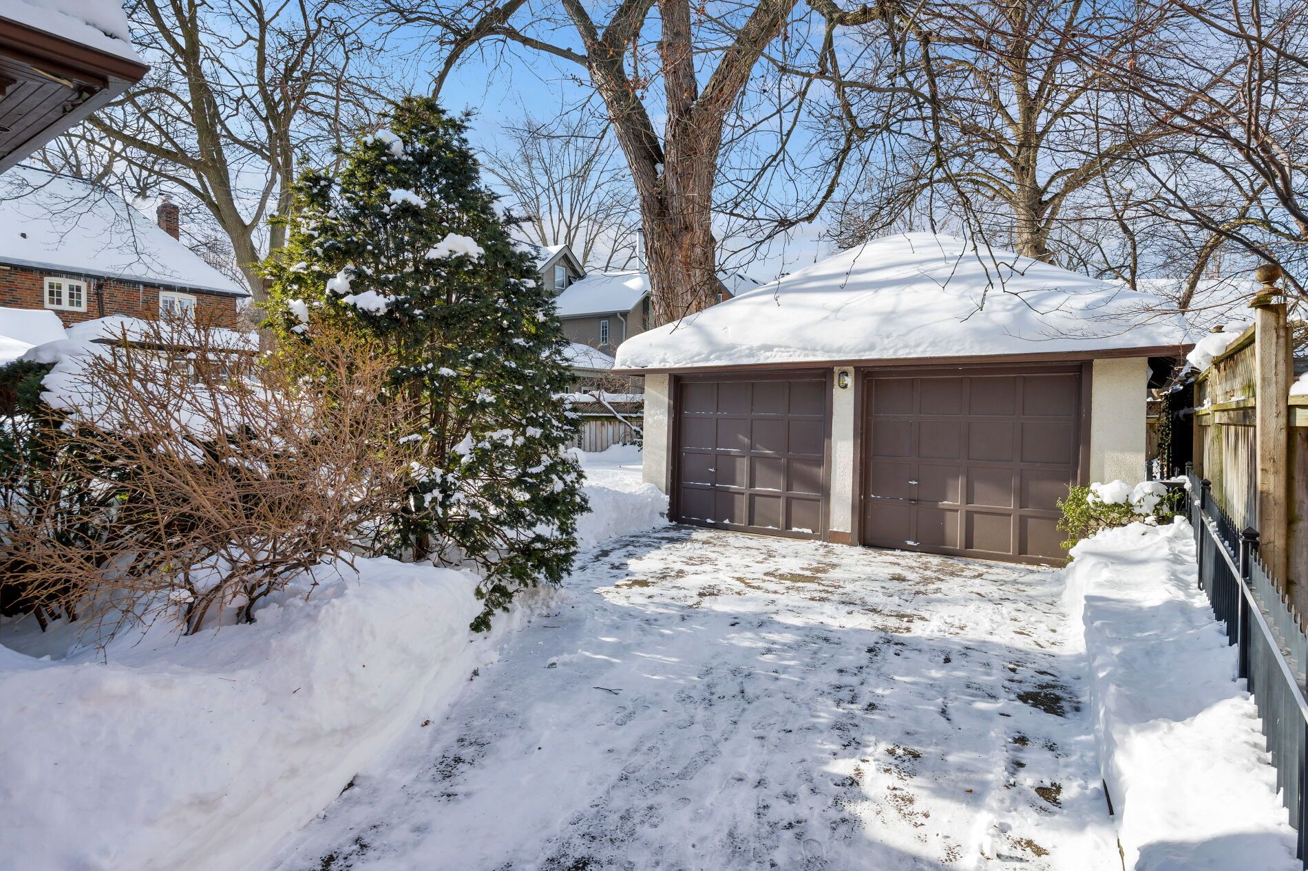• Private backyard and rare full-sized double detached garage for convenience.