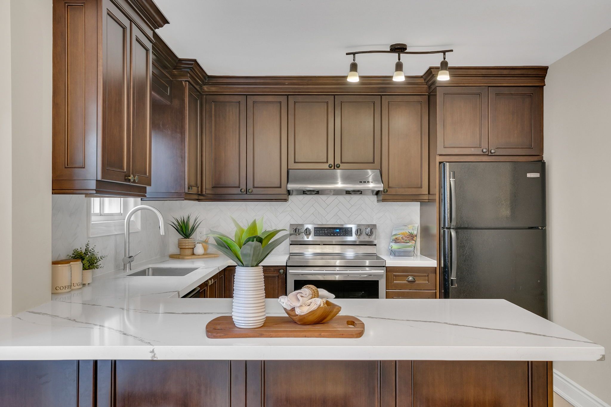• Updated eat-in kitchen seamlessly connects to a spacious west-facing deck.