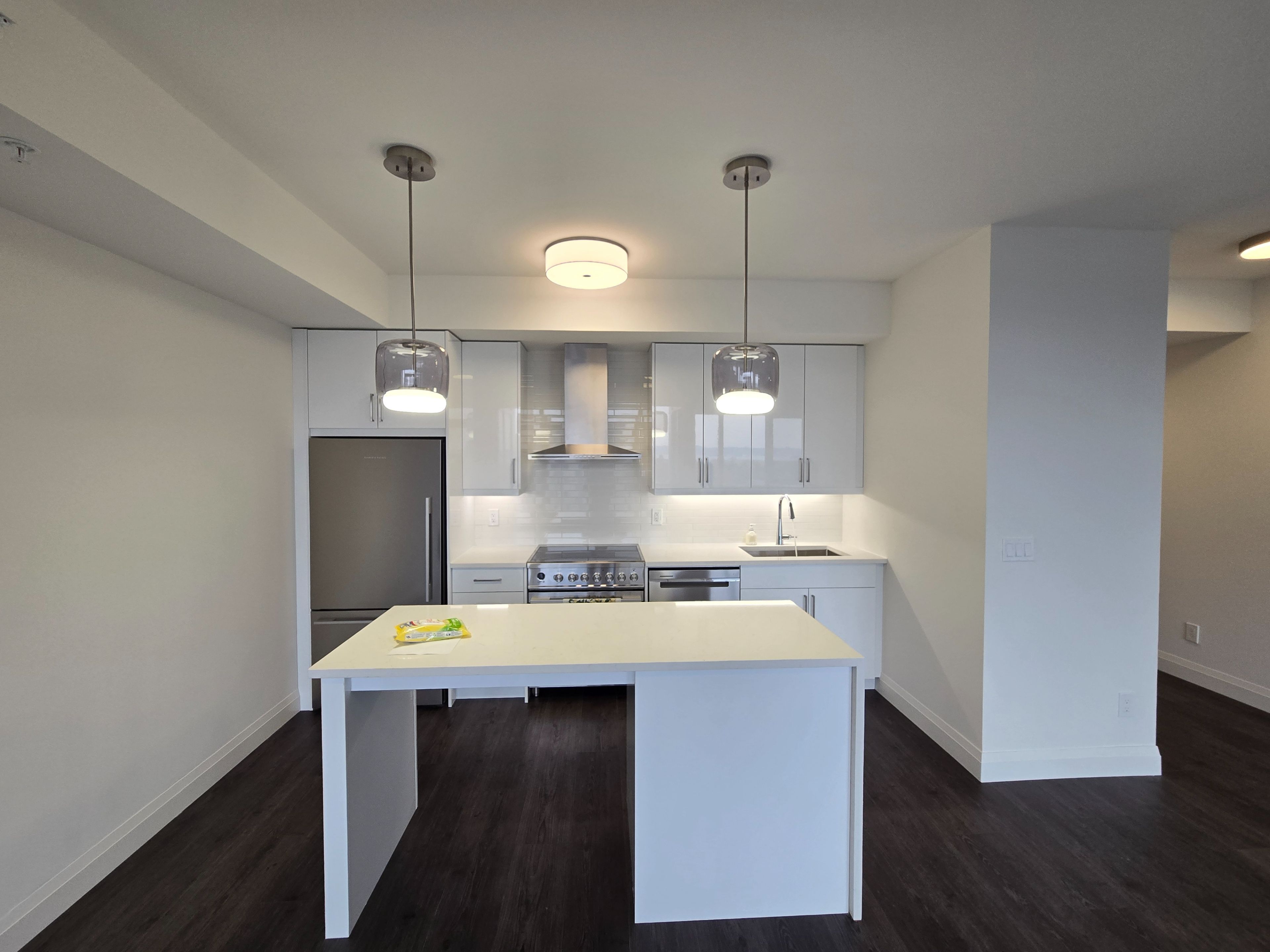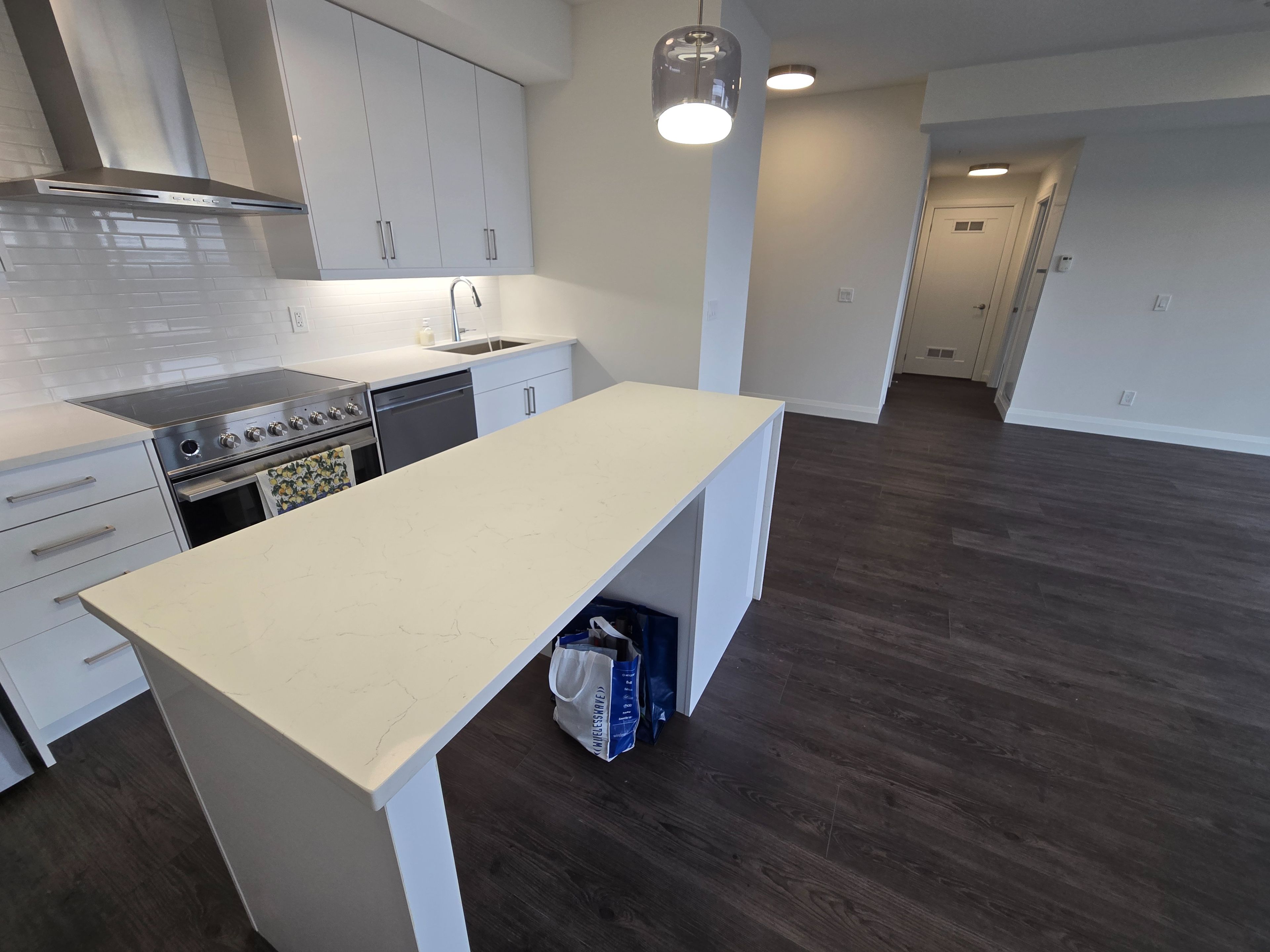 Welcome to illumina condos! This spacious 1-bedroom, 1-bathroom suite on the 10th floor offers approximately 770 sq. Ft. Of thoughtfully designed living space, complemented by breathtaking views of lake ontario. Featuring a bright open-concept layout with floor-to-ceiling energy efficient double-glazed windows, this unit is filled with natural light and seamlessly extends to two private balconies-perfect for enjoying morning coffee or evening sunsets. 9ft finished ceiling. Walls and trim painted off white. The modern kitchen is beautifully finished with contemporary designed cabinetry, quartz countertops, stylish backsplash, stainless steel kitchen sink, drop pendant lighting, a center island, and brand-new appliances-ideal for both everyday living and entertaining. The primary bedroom includes built-in closets, while a double closet in the foyer provides additional storage. Bathroom offers contemporary designed cabinetry and coordinating hardware, modern faucet and pressure balanced shower control. Luxury plank flooring throughout. Secure and well-lit monitored underground parking area. Located in a highly desirable area, just minutes from downtown burlington, steps to the waterfront, shopping, and with easy access to major highways, this home offers exceptional convenience for both commuters and lifestyle seekers. Residents enjoy premium building amenities, including furnished guest suits, a fully equipped fitness studio with weight training and cardio, security services, bbq area, spacious party room with wrap around bar, big screen tv and various sitting arrangements, and an impressive sky deck/terrace with panoramic lake views-perfect for relaxing or hosting guests. An exceptional opportunity to own a stylish lakeside condo in a prime location. Don't miss it!