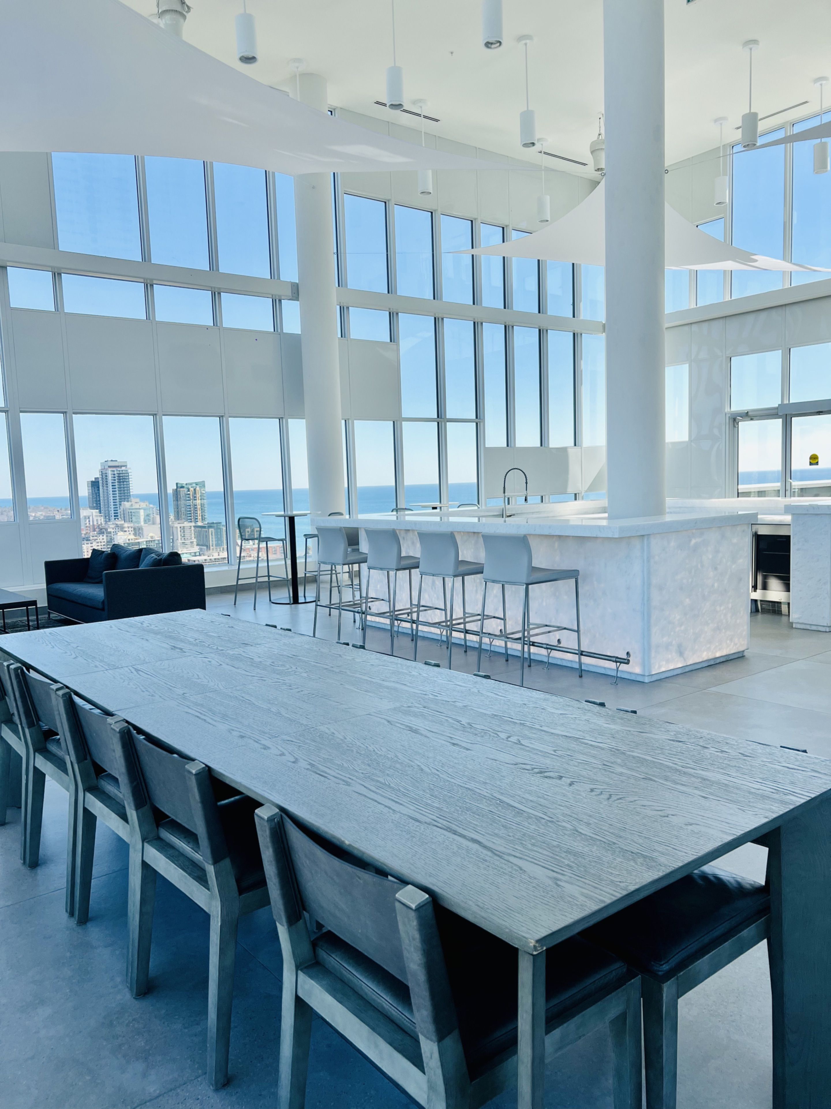 • Luxury building amenities include rooftop sky deck, fitness center, and party room.