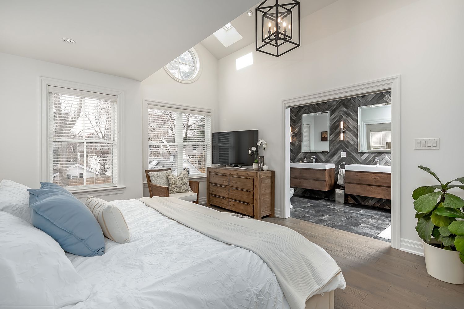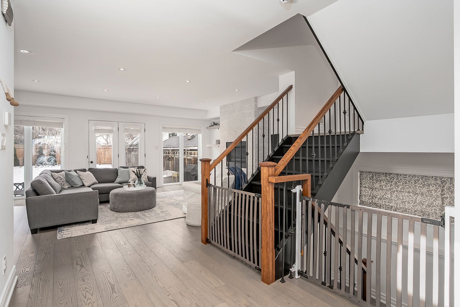 Beautifully renovated and ideally located in the heart of downtown burlington, this exceptional four bedroom, three and a half bathroom home offers over 3,000 square feet of thoughtfully designed living space on an impressive 48 x 131 foot lot, a rare opportunity in one of the city's most sought after neighbourhoods. The covered front porch welcomes you with warmth and charm, the perfect place to enjoy your morning coffee or unwind in the evening. A true bonus for downtown living, the home offers parking for four vehicles, including one in the garage and three on the private driveway. Inside, rich hardwood flooring flows throughout, creating an elegant and cohesive feel. The custom designed kitchen is the heart of the home, featuring premium finishes, abundant cabinetry, and a layout ideal for everyday living and entertaining. A dedicated coffee bar with its own sink adds convenience and character. Two gas fireplaces anchor the main level, one in the dining room for intimate gatherings and another in the family room, creating a warm and inviting space to relax. Upstairs, four spacious bedrooms provide comfort and flexibility. The primary suite is a rare find for the area, offering a walk in closet and a beautifully appointed ensuite. Additional bathrooms have been tastefully updated with style and function in mind. The finished lower level adds valuable living space with a bright family room and a well appointed three piece bathroom, ideal for guests, recreation, or a private retreat. The professionally landscaped backyard makes full use of the 131 foot depth, offering excellent space to entertain or enjoy quiet outdoor living. Just steps to downtown burlington, restaurants, boutiques, cafés, spencer smith park, and the waterfront are all within walking distance. With quality renovations, generous space, private parking, and exceptional walkability, this home delivers the best of downtown burlington living.